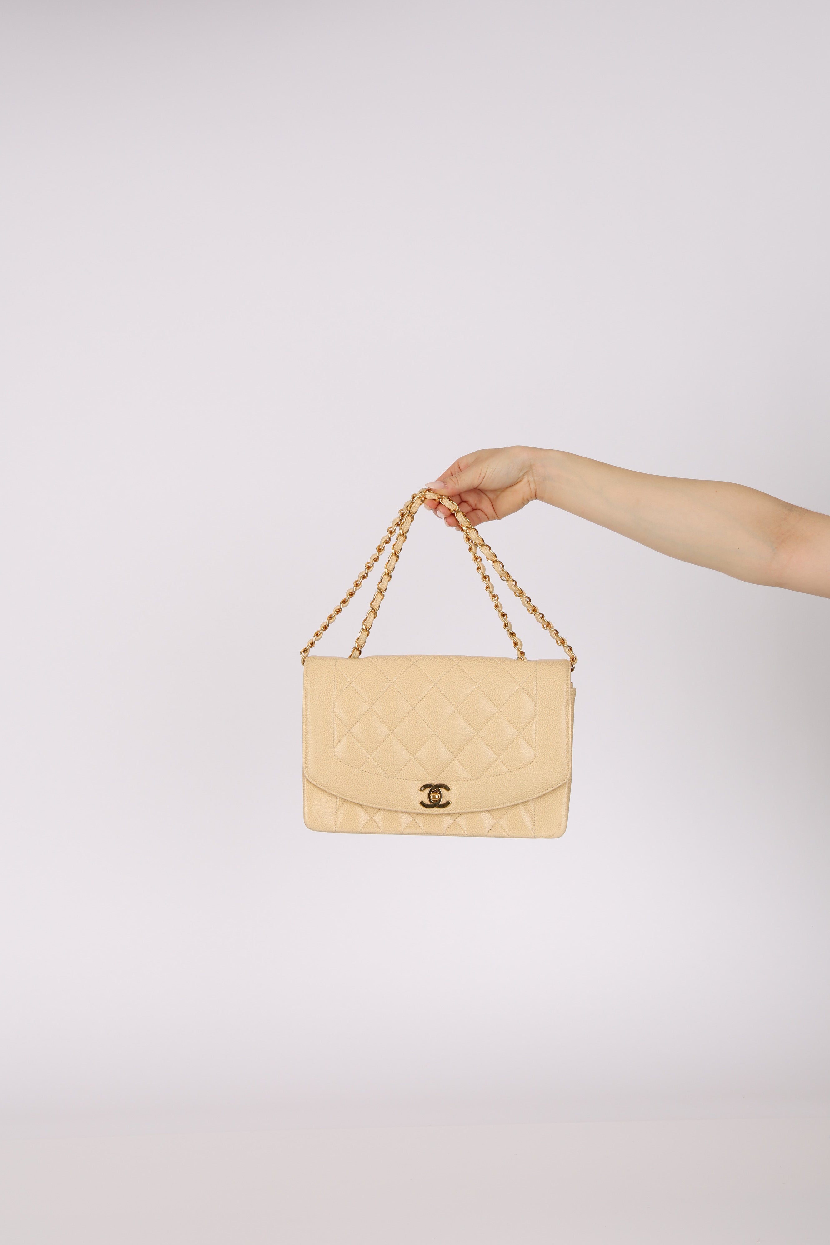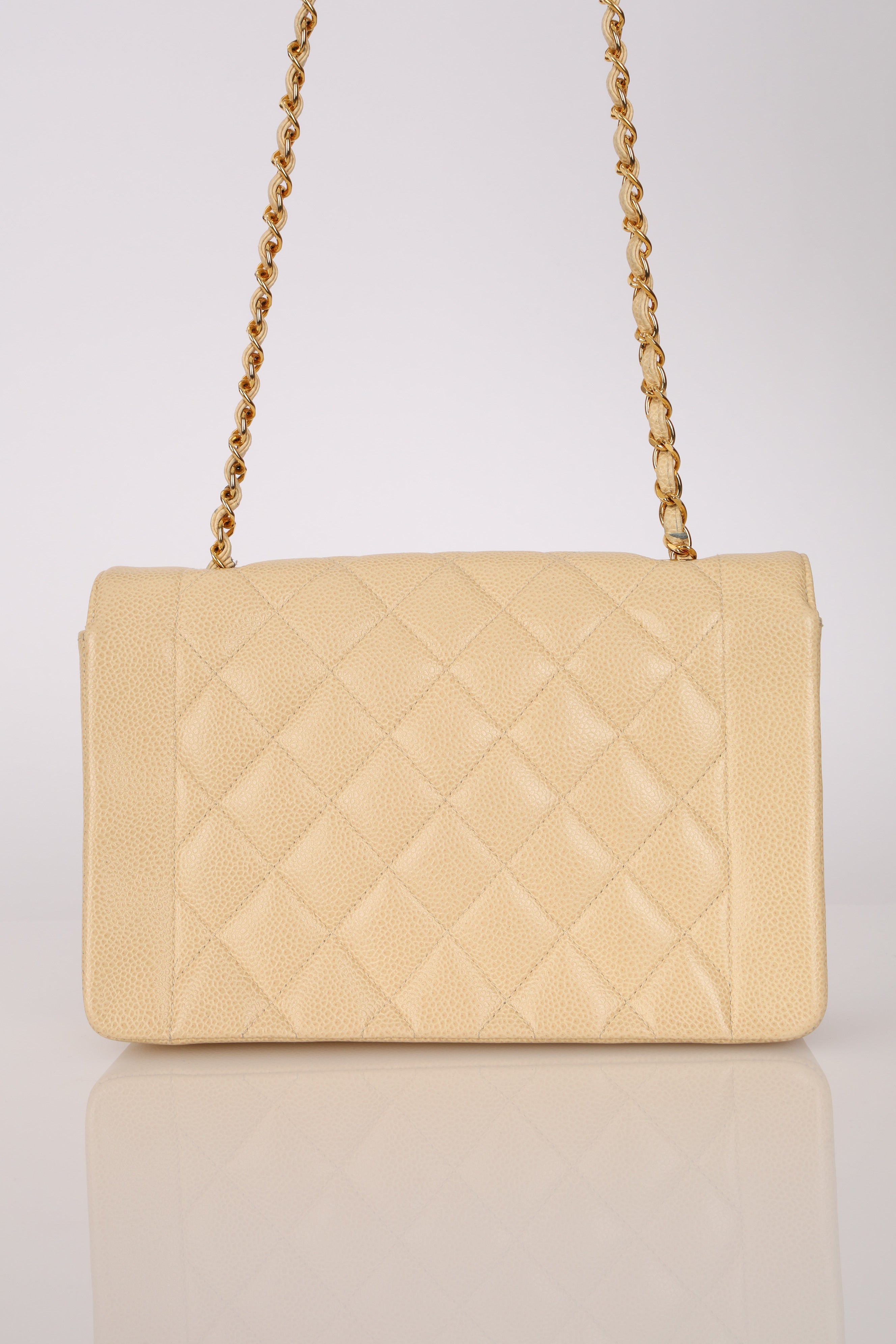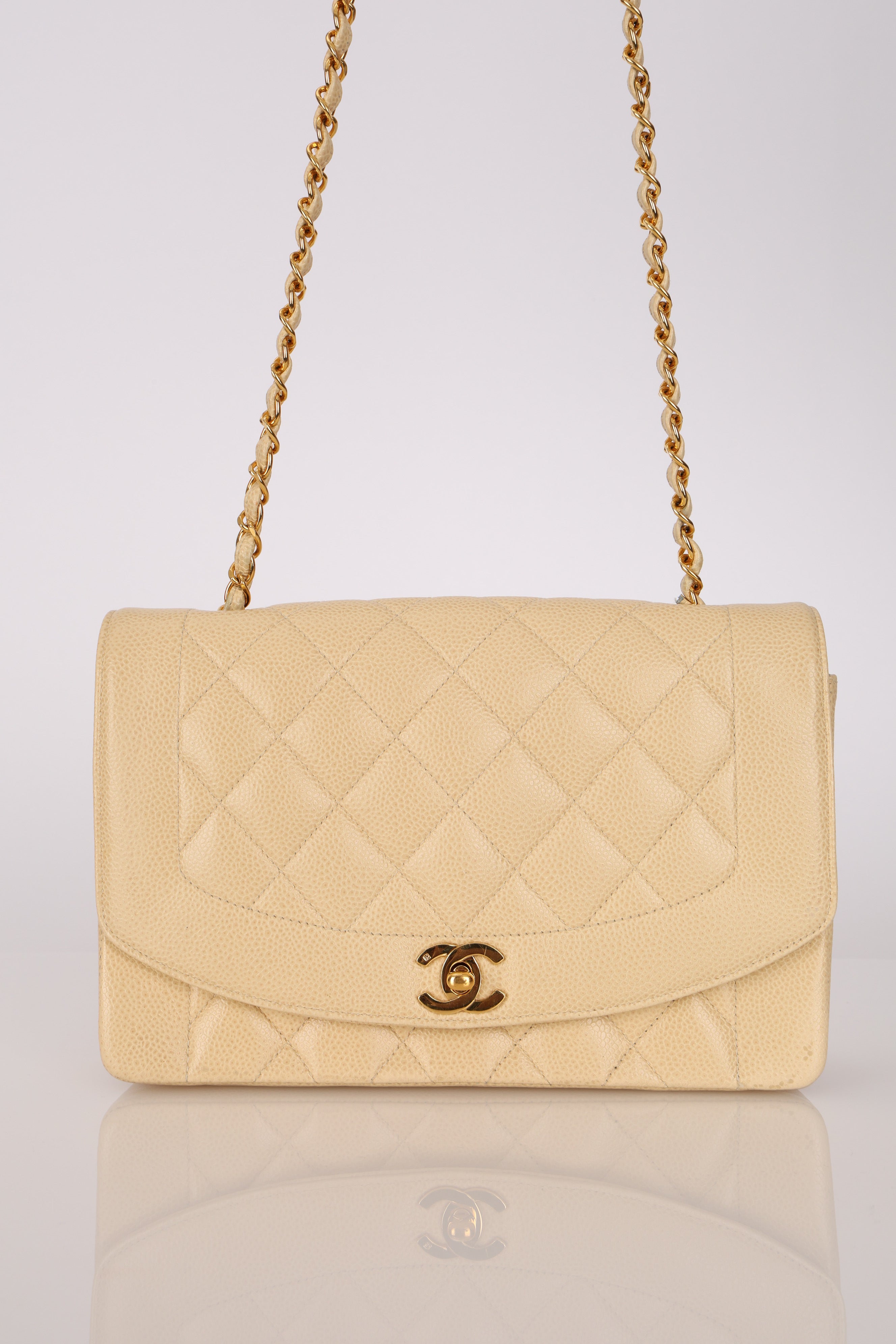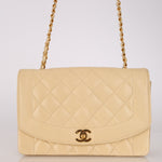 Rare Chanel 1993 Vanilla Caviar Medium Diana Flap 24K GP