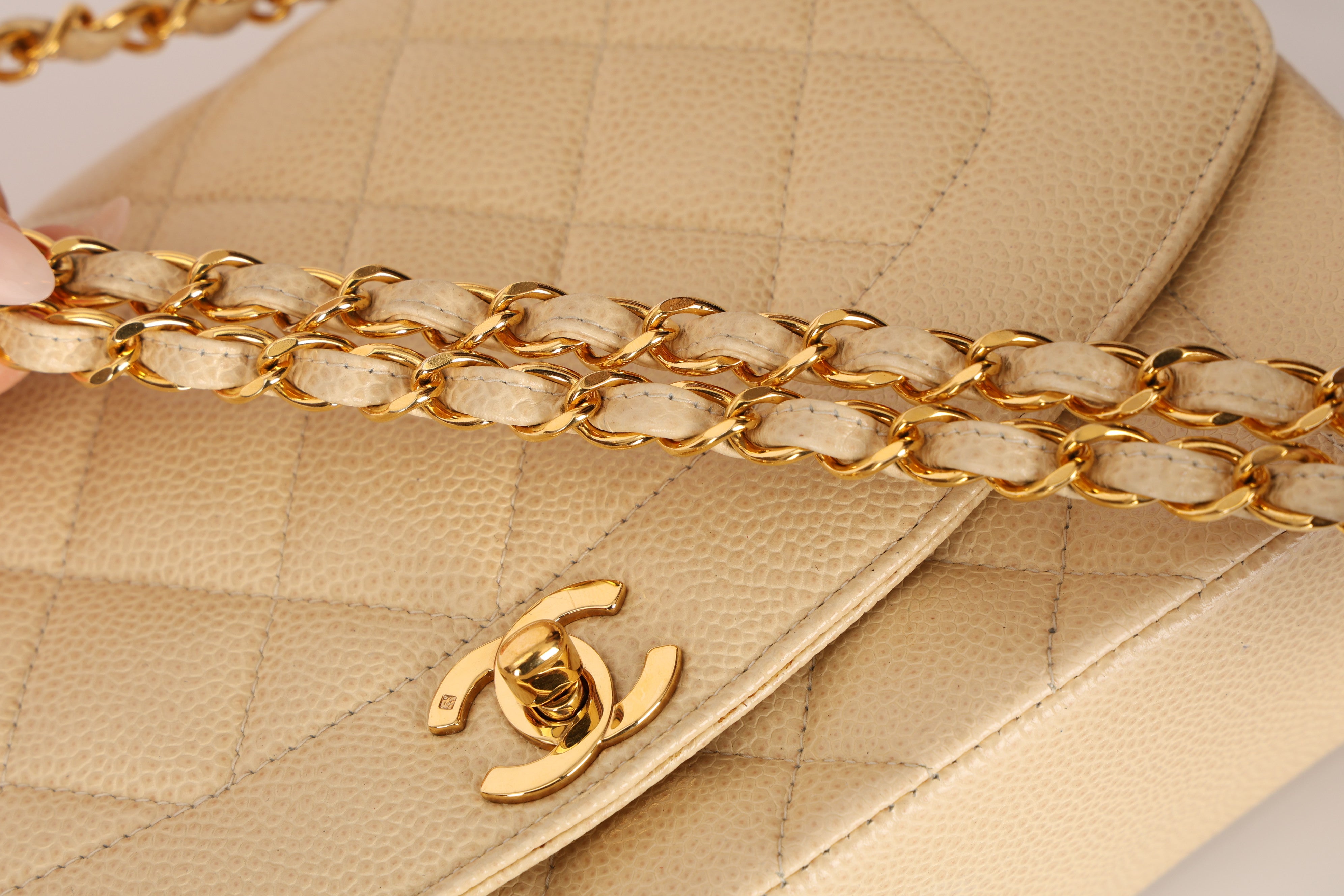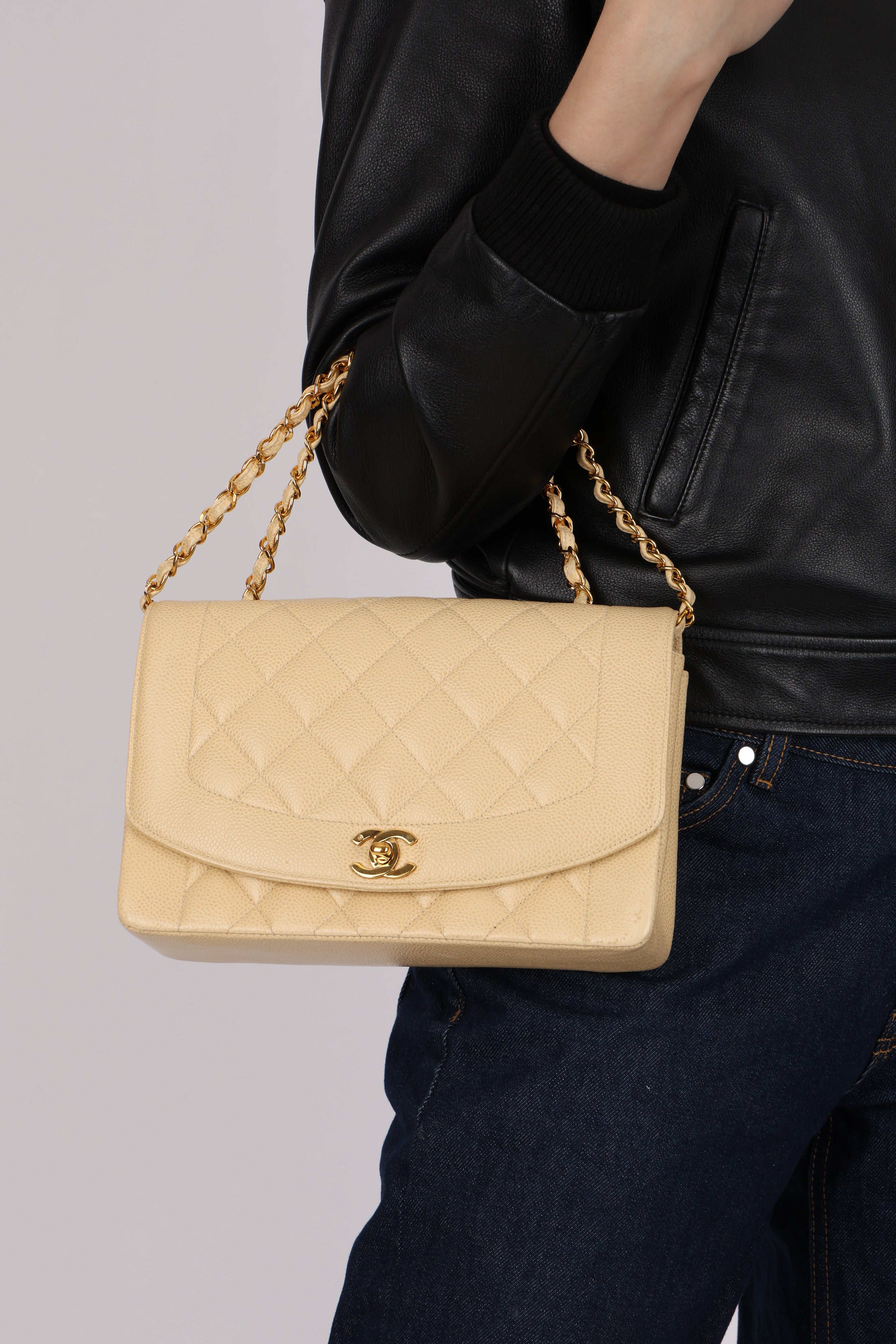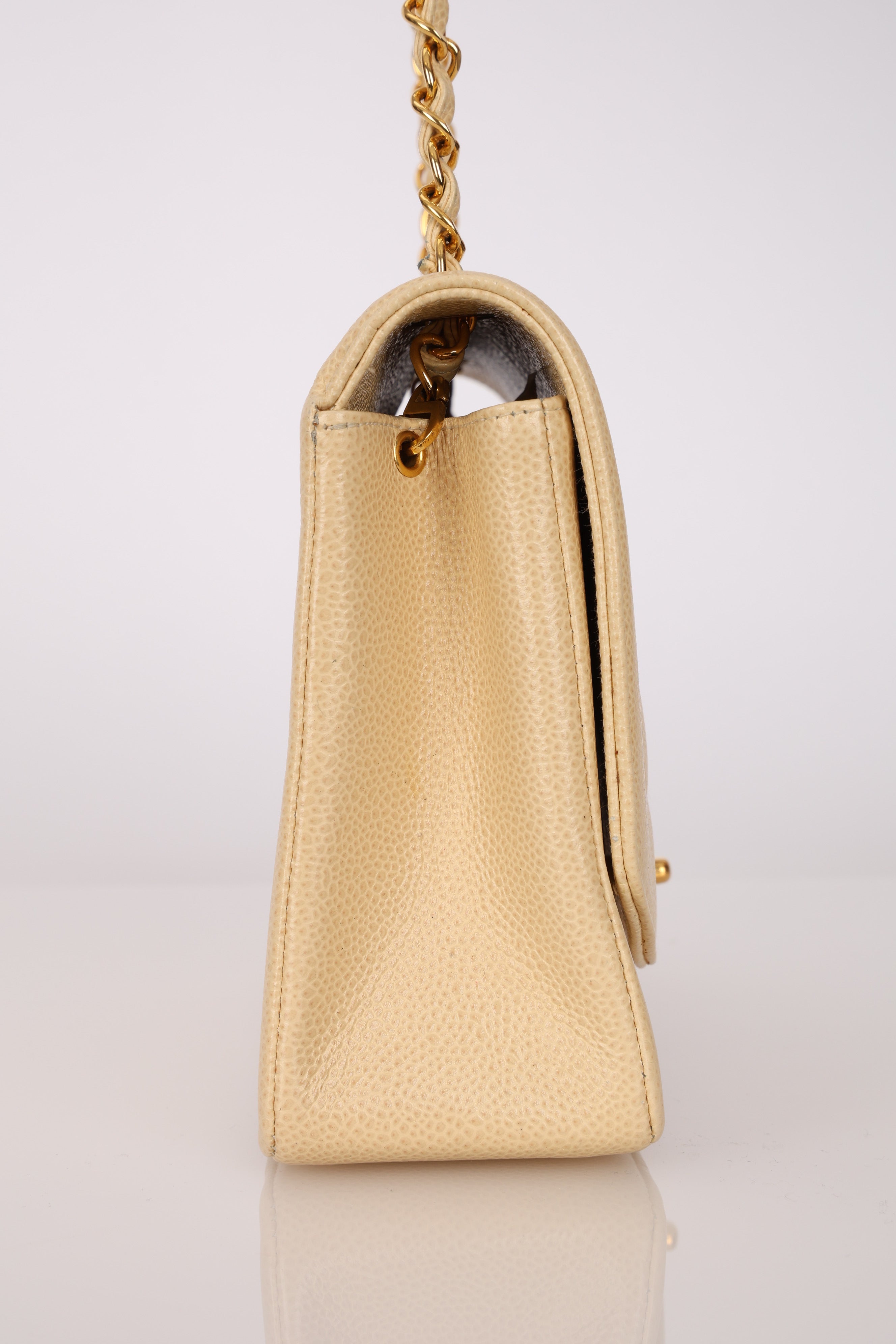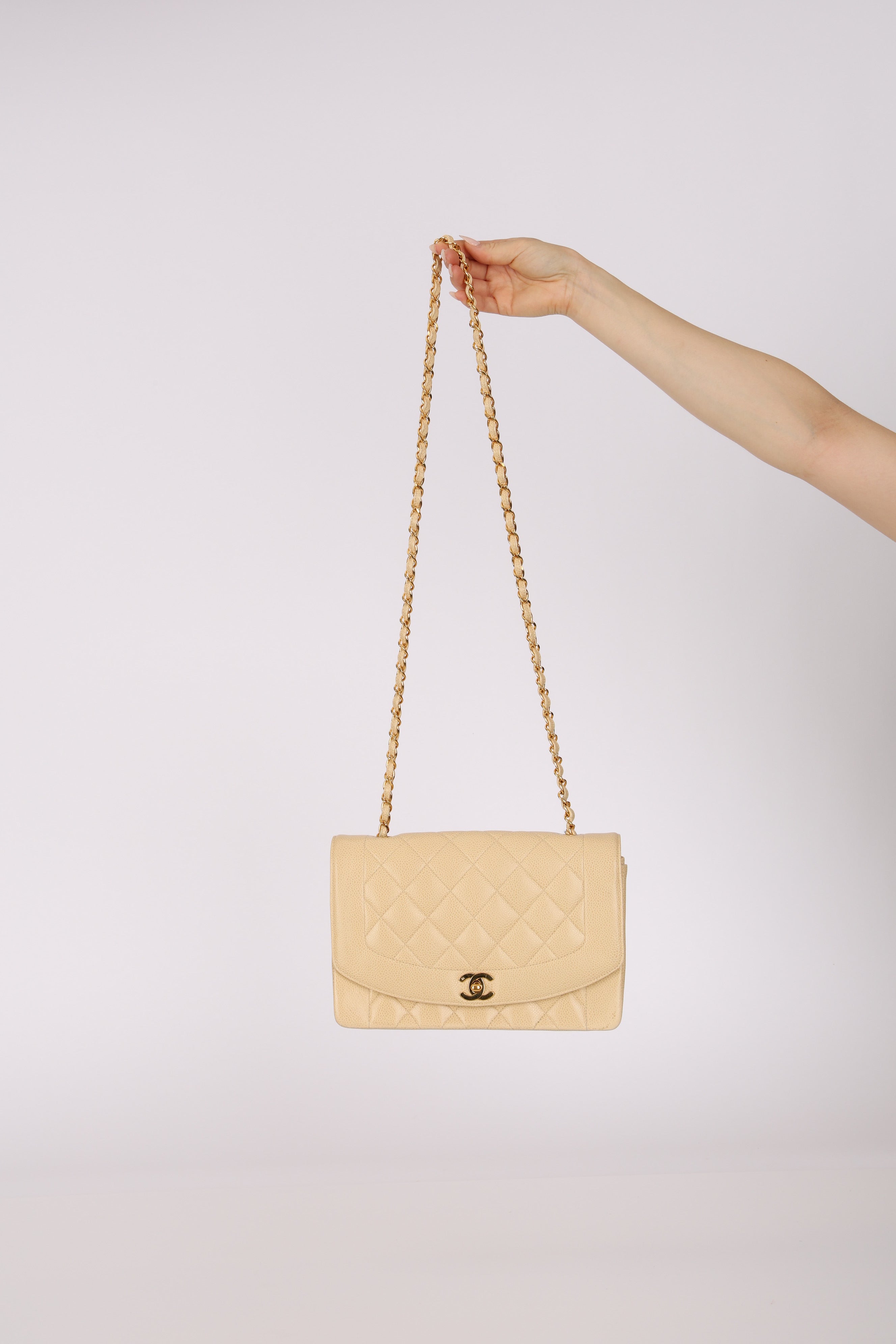 Rare Chanel 1993 Vanilla Caviar Medium Diana Flap 24K GP