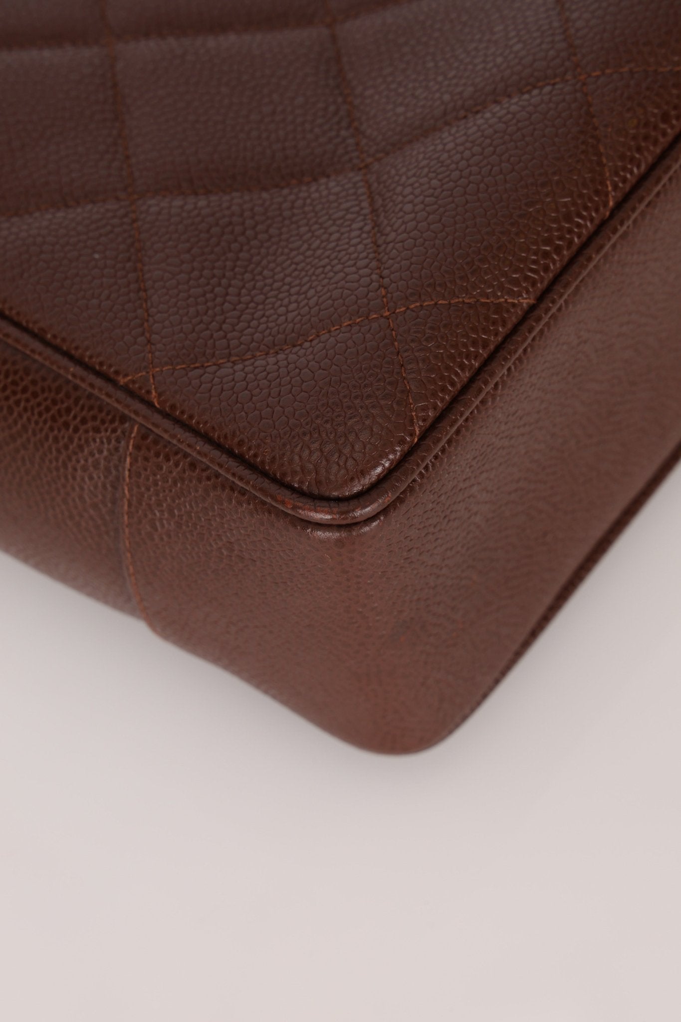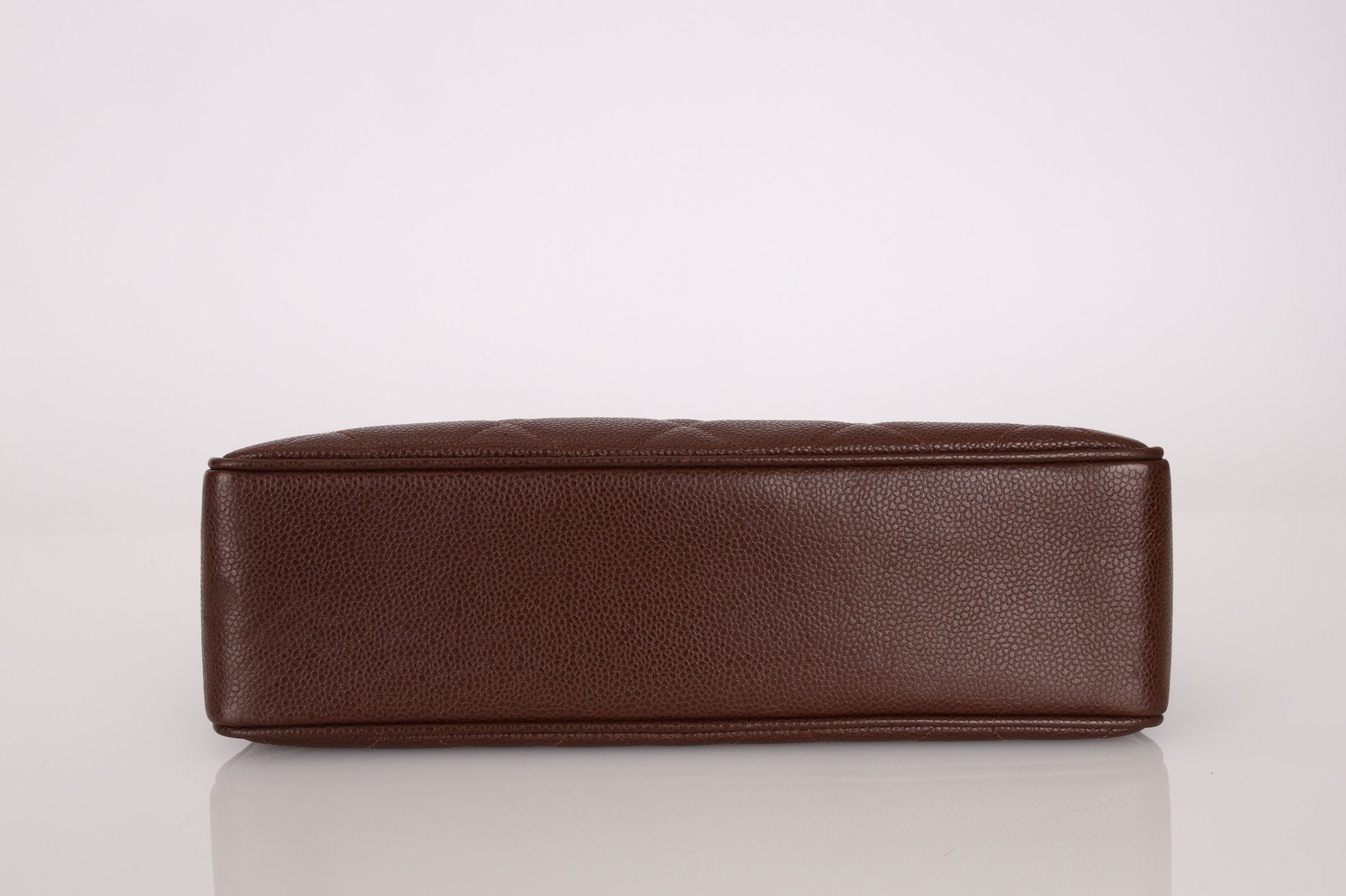 Chanel 1993 Caviar Chocolate Brown XL Turnlock Logo Tote Bag 24K GP