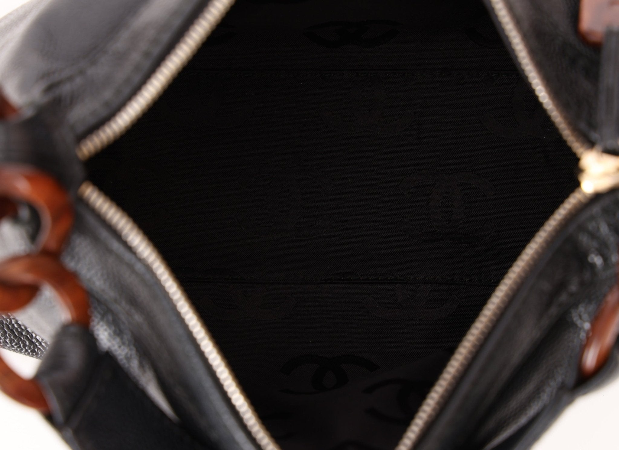 Chanel 2002 Caviar Acrylic Wood Shoulder Bag - FashioNica