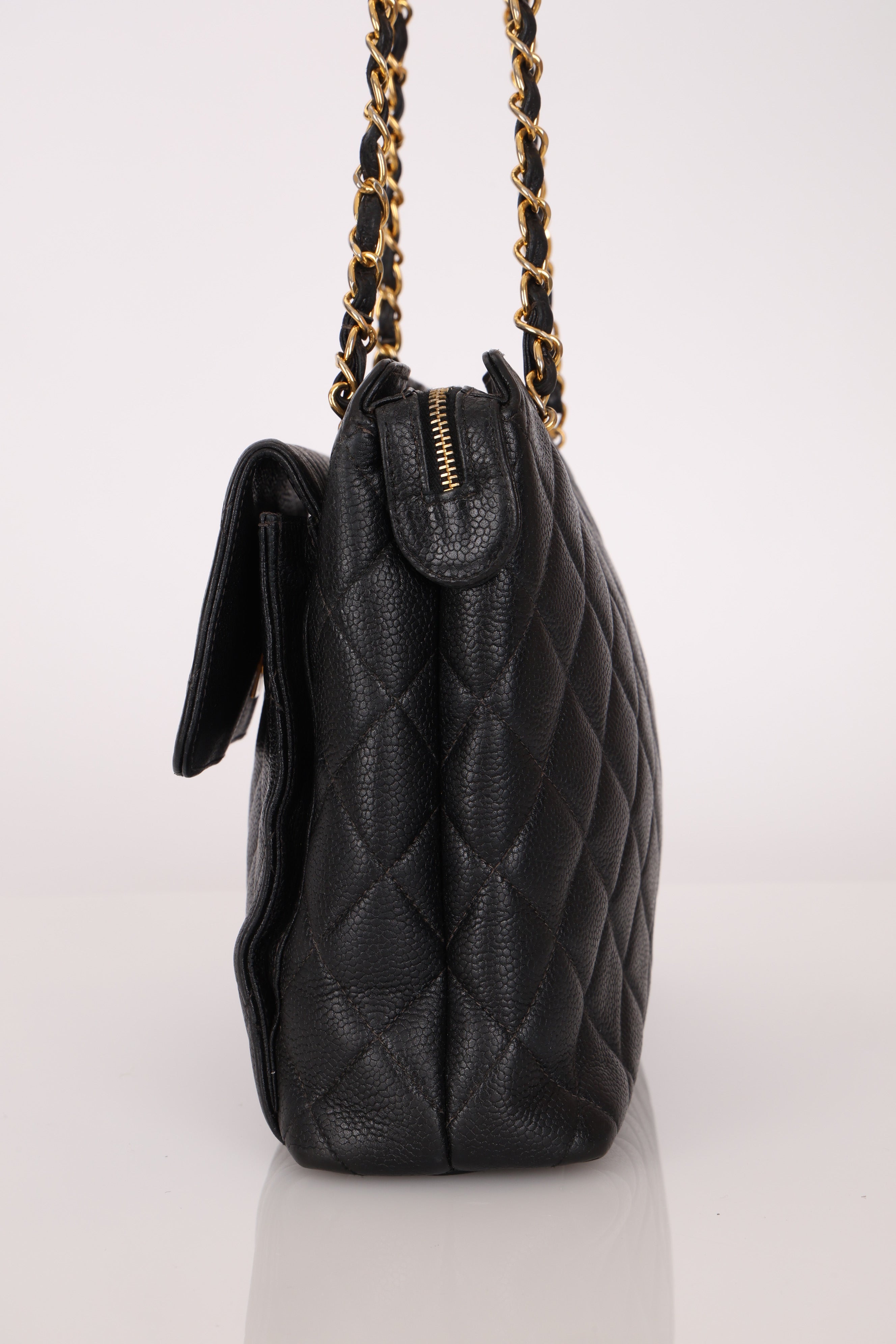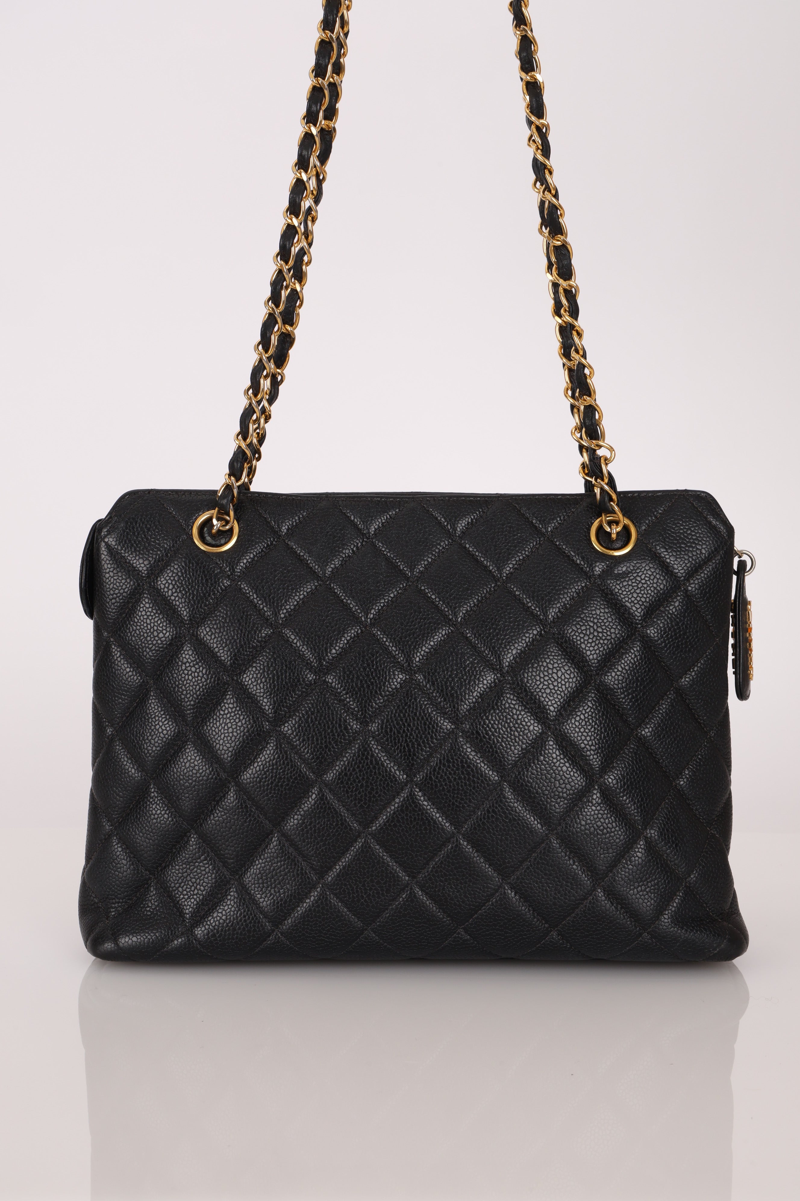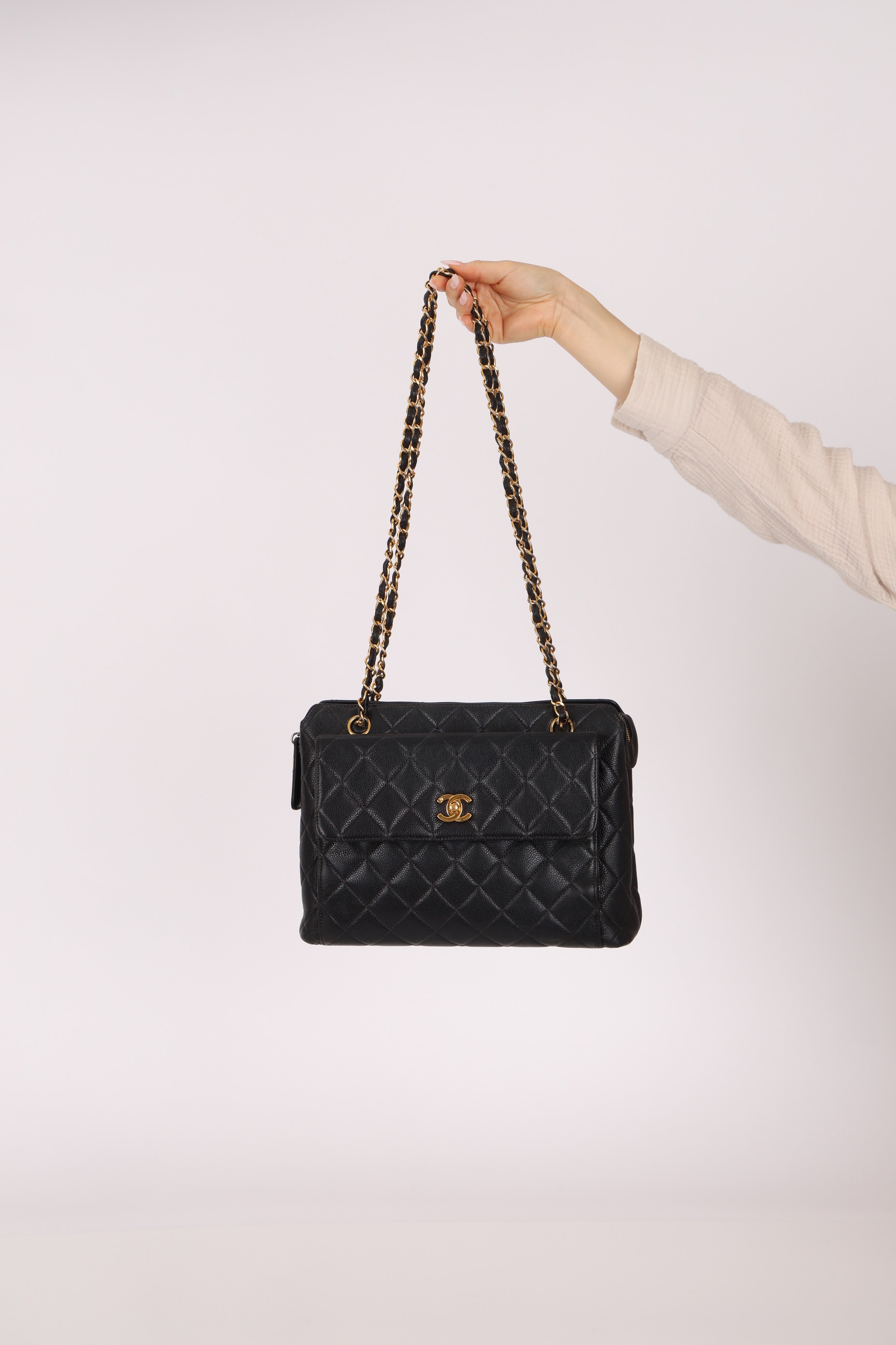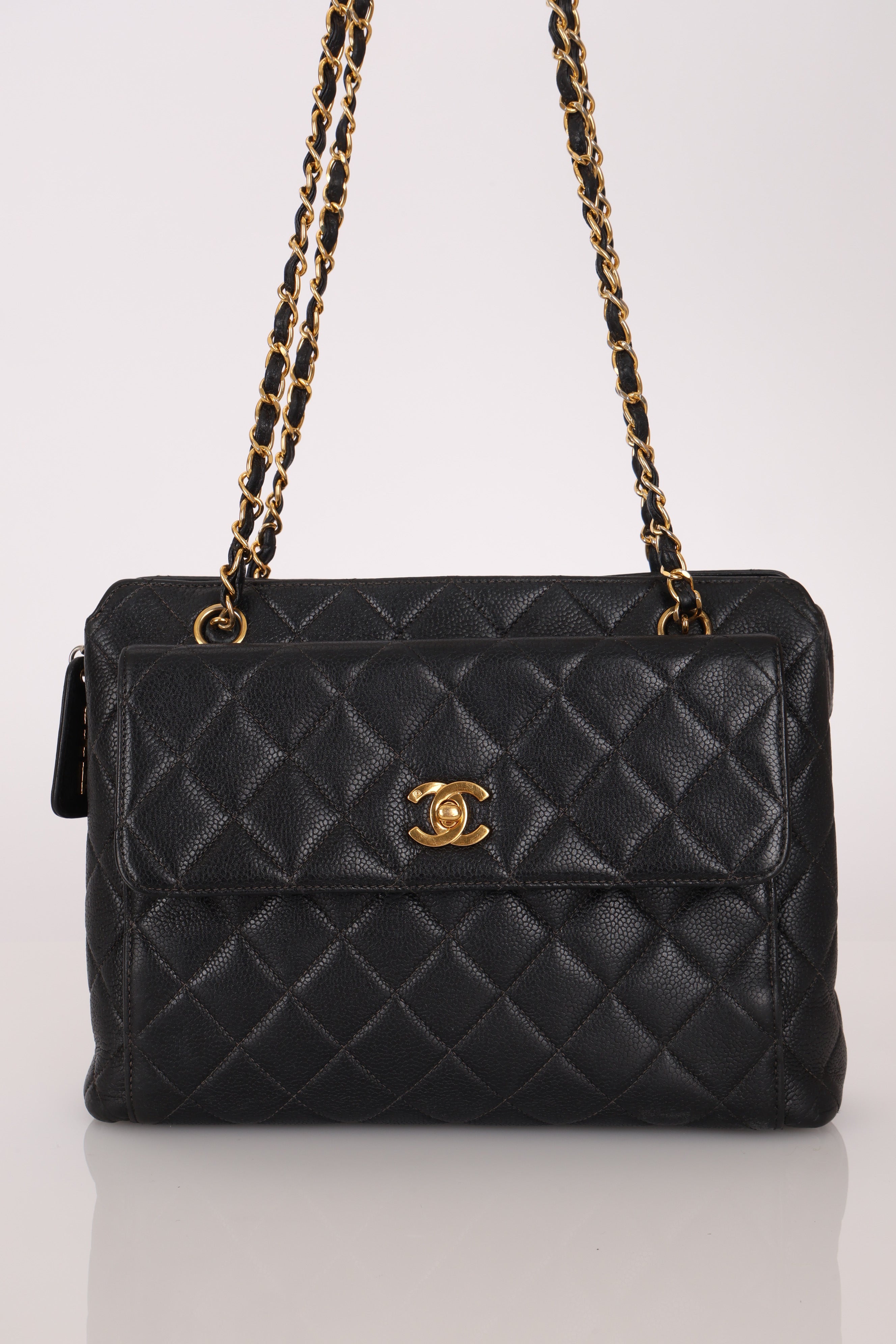 Chanel 1996 Caviar Turnlock Pocket Zip Chain Tote 24K GP