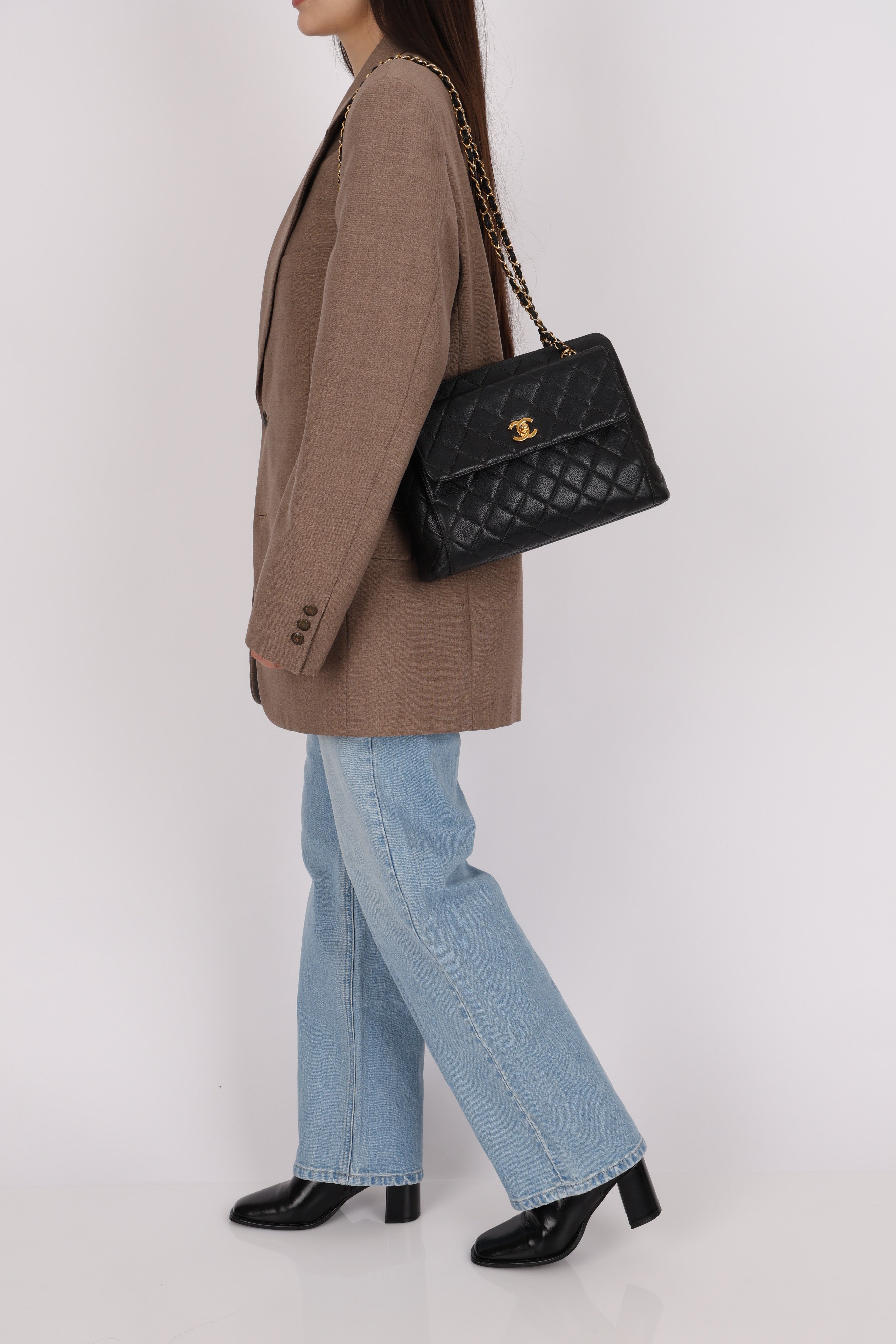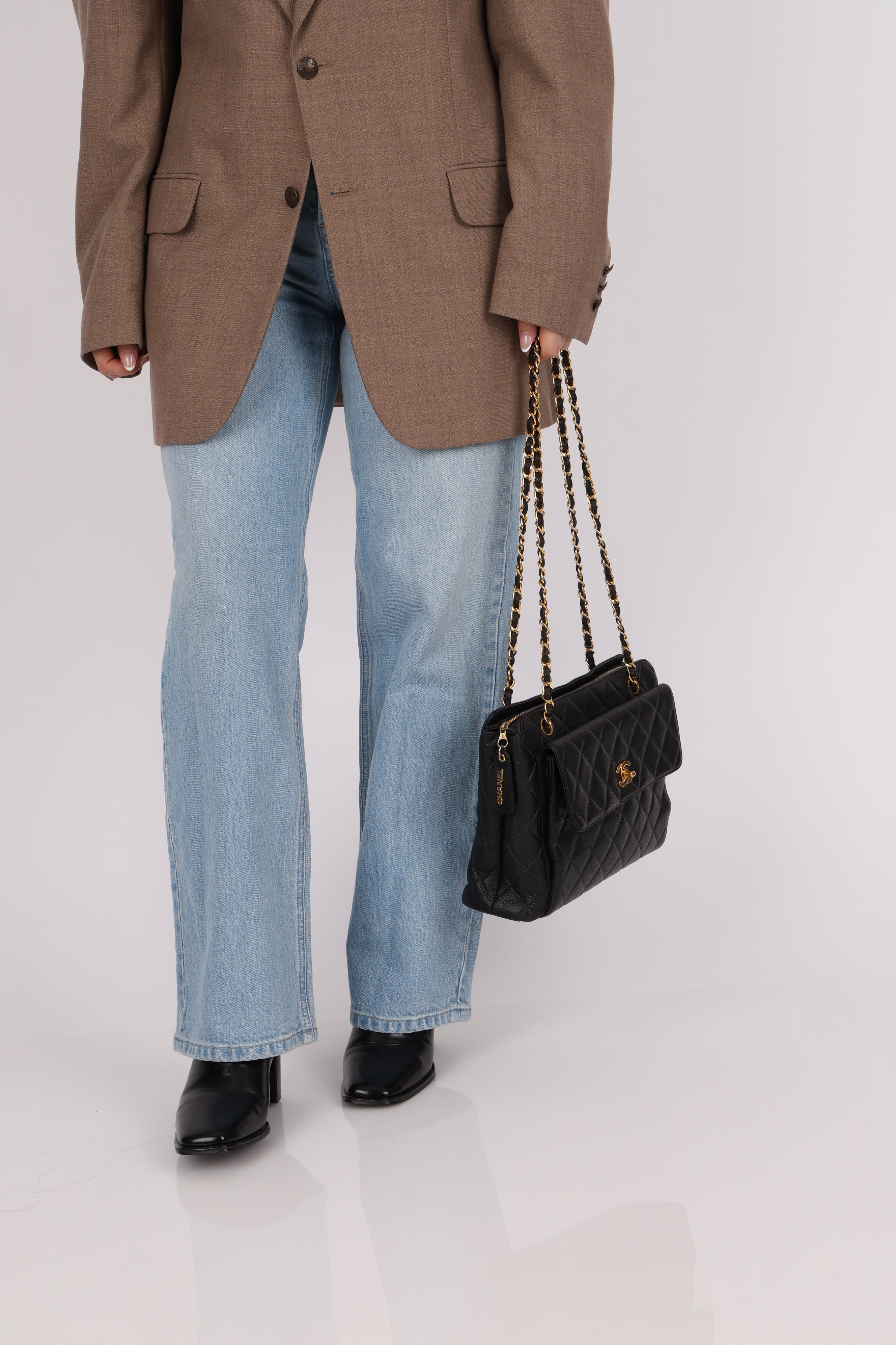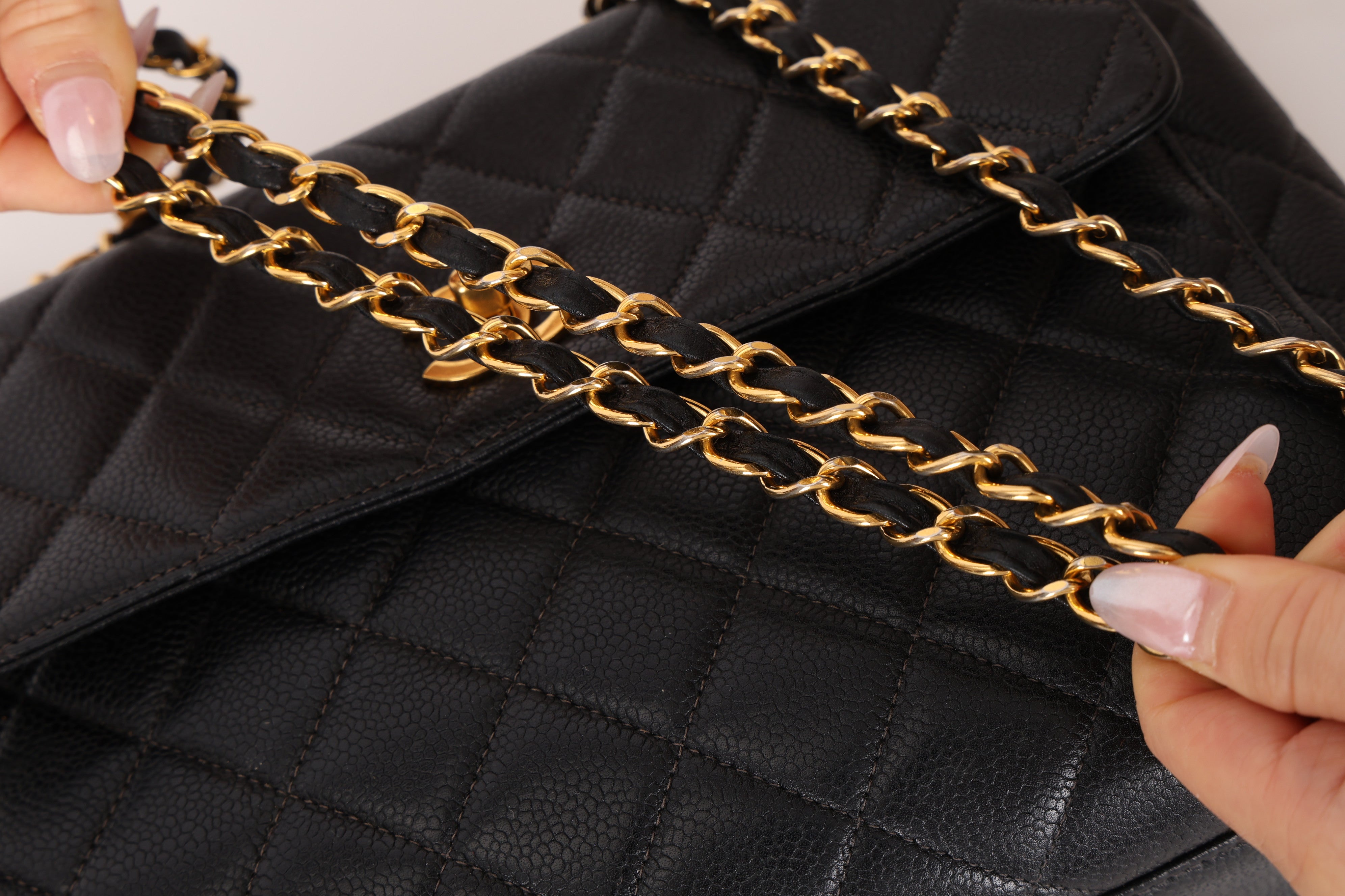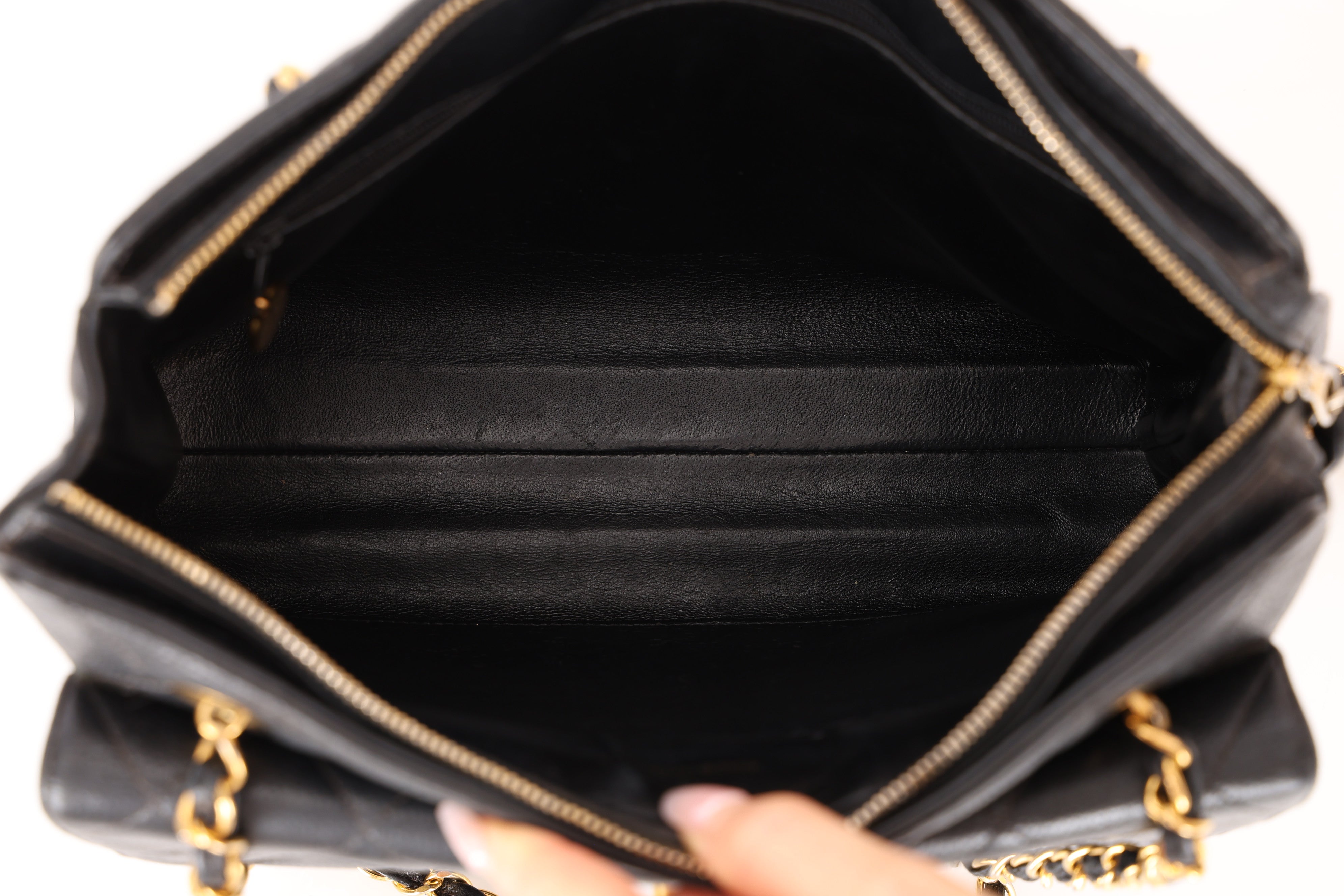 Chanel 1996 Caviar Turnlock Pocket Zip Chain Tote 24K GP