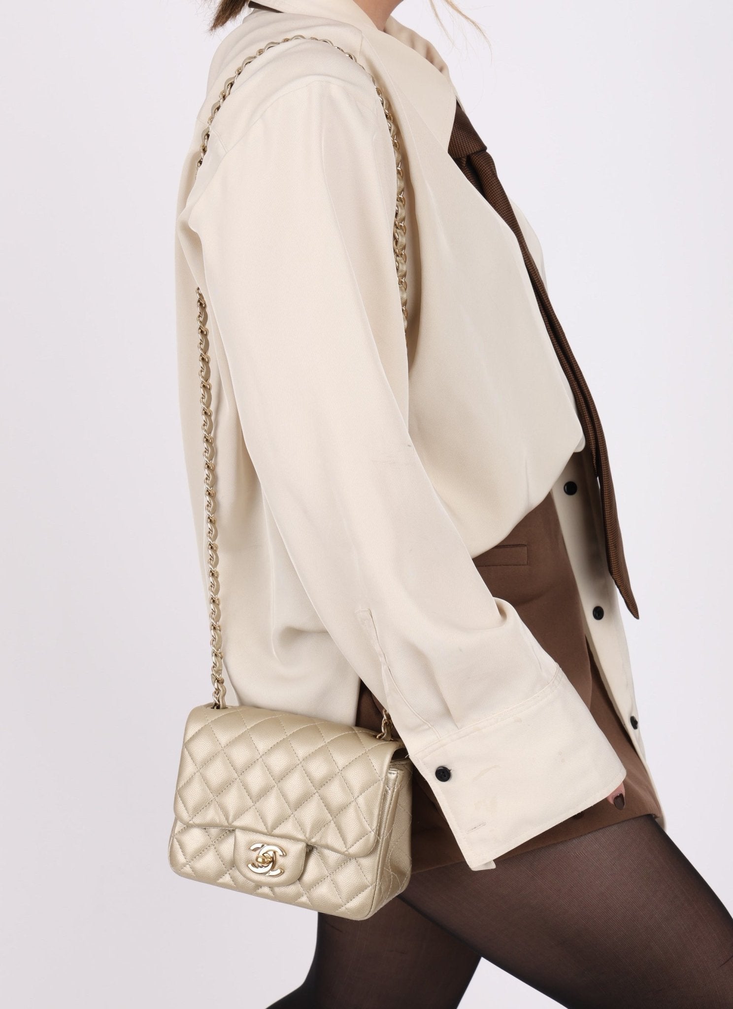 Chanel 2016 Iridescent Caviar Champagne Mini Square Flap - FashioNica