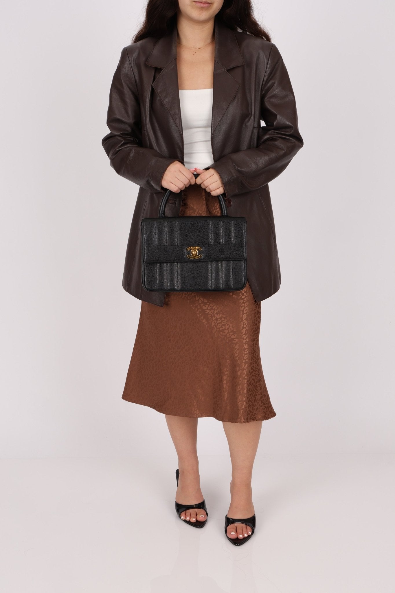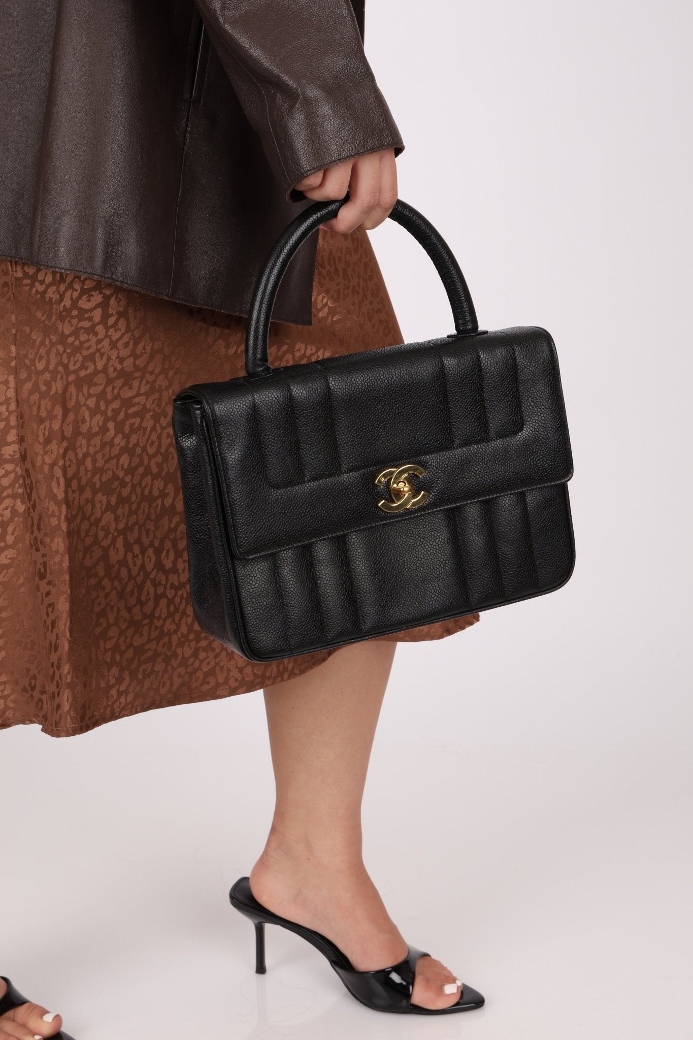 Chanel 1995 Caviar Mademoiselle Small Kelly Top Handle 24k GP - FashioNica