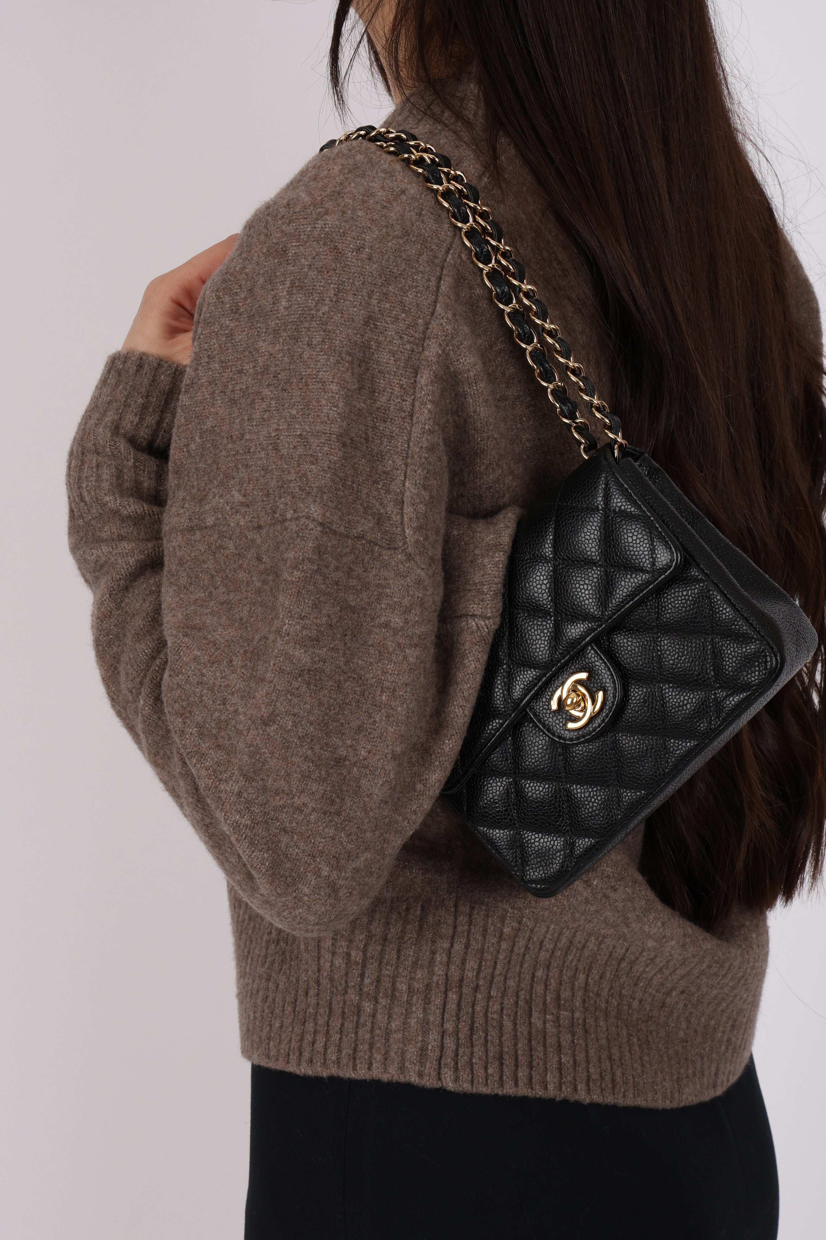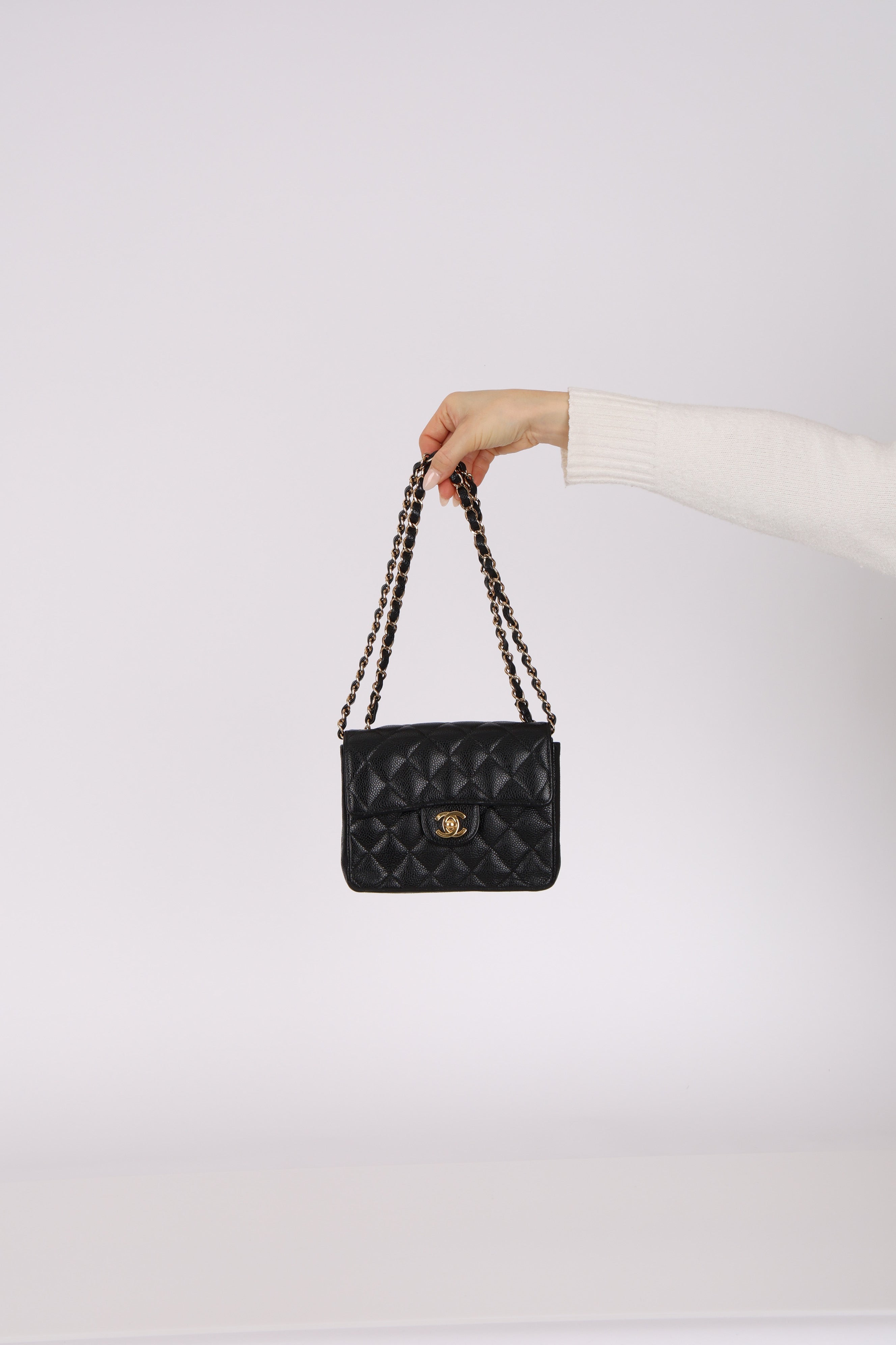 Dropping a coveted Chanel Caviar Mini Square Flap! Chanel discontinued the use of caviar leather for the square mini flap in 2018, additionally this piece is considered rare due to it being hallmarked and crafted in 24K gold plated hardware: a rare collectible gem! This exact bag with the 24K gold plating is going between $9k-$12k on resale!
