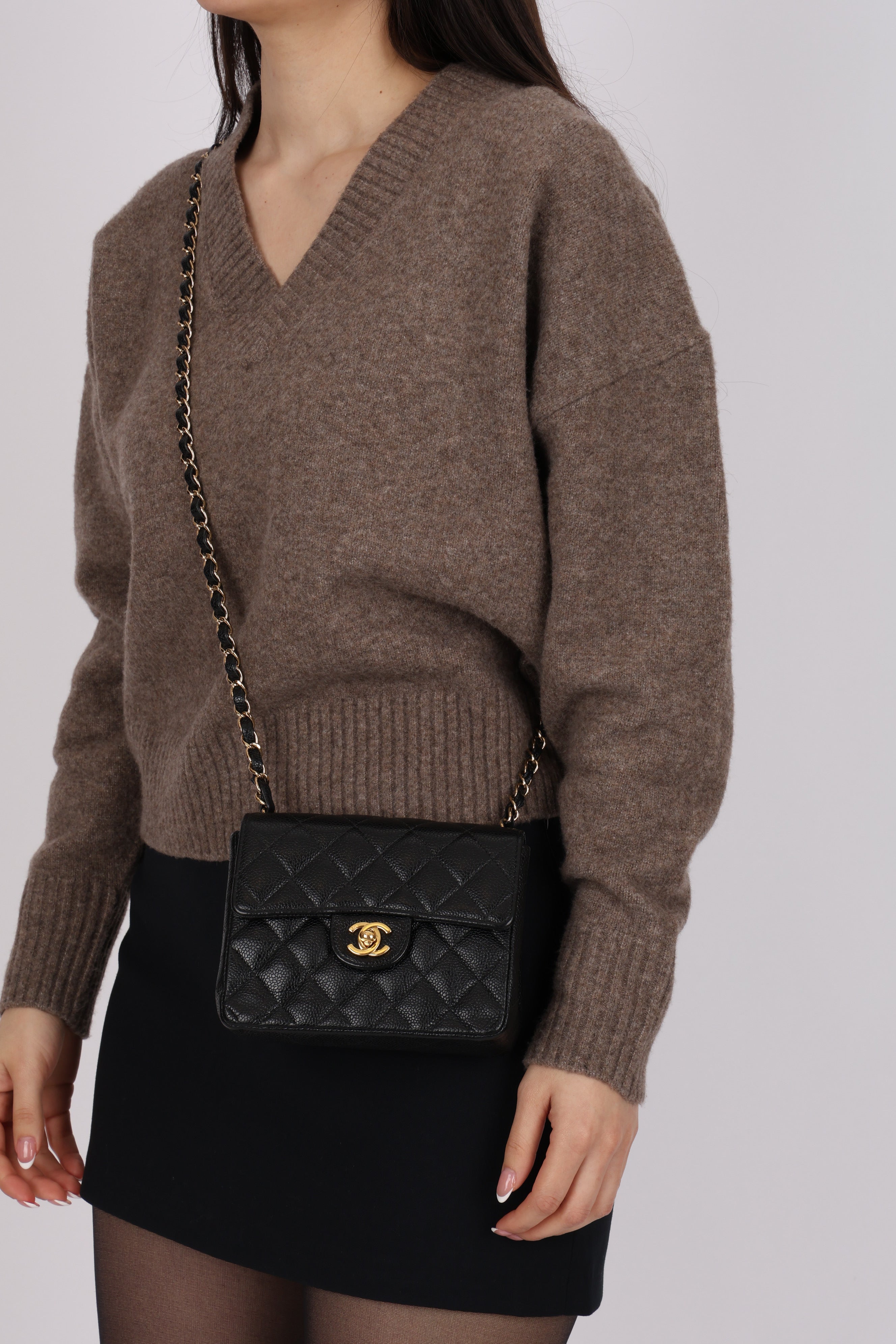 Rare Chanel 2005 Caviar Mini Square Flap Bag 24K GP
