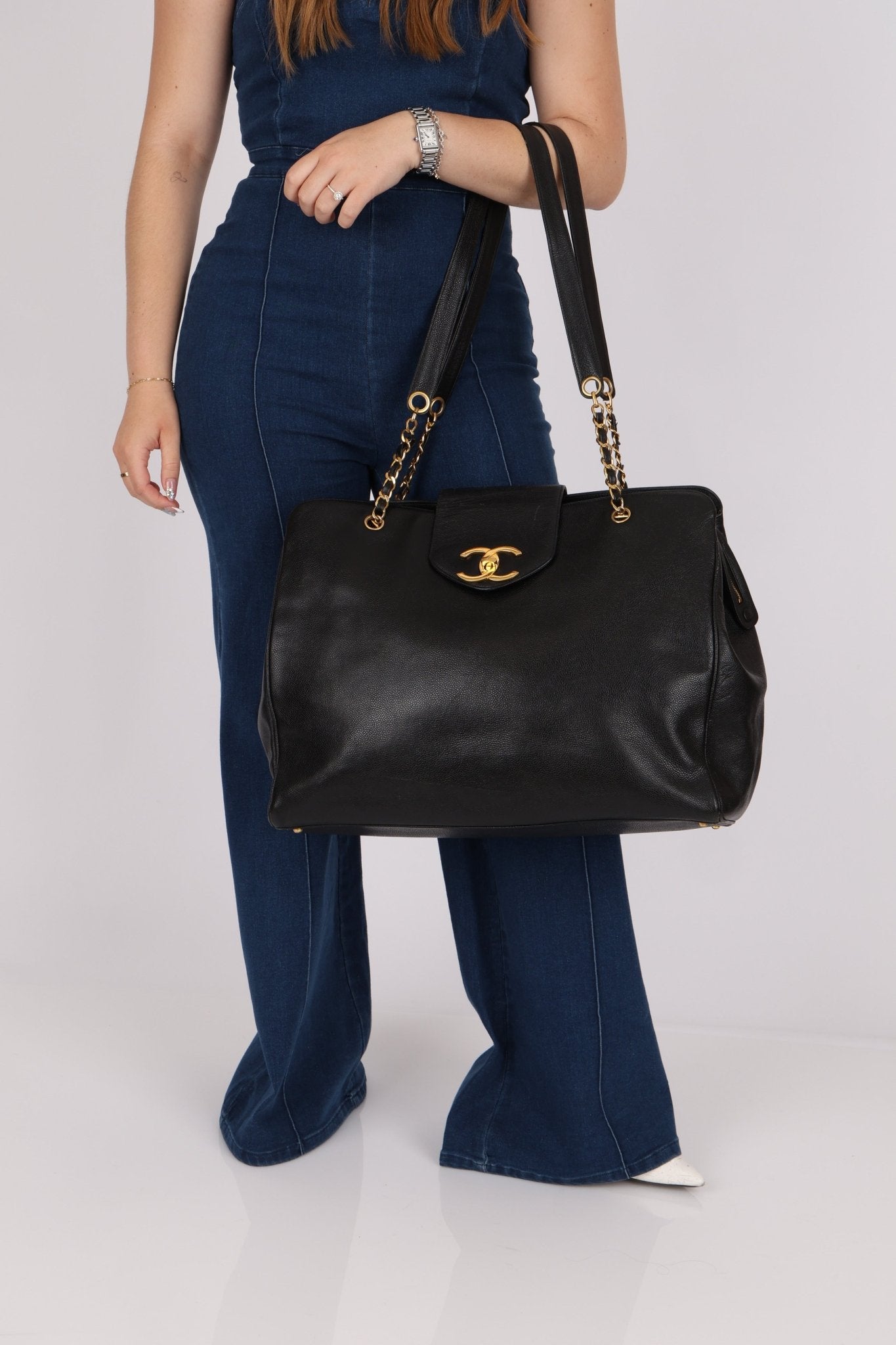 Rare Vintage Chanel Caviar Double - Sided Supermodel Tote - FashioNica