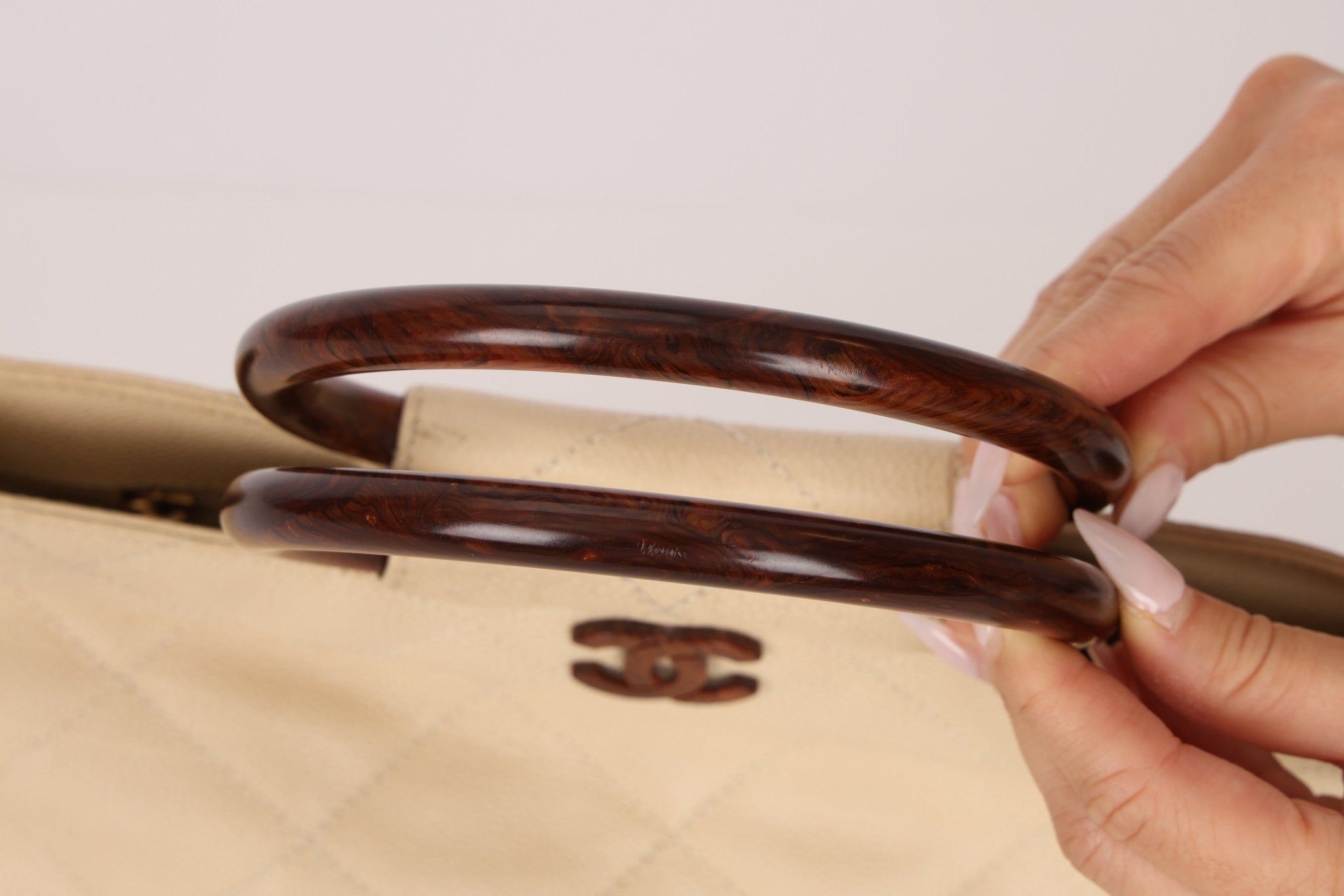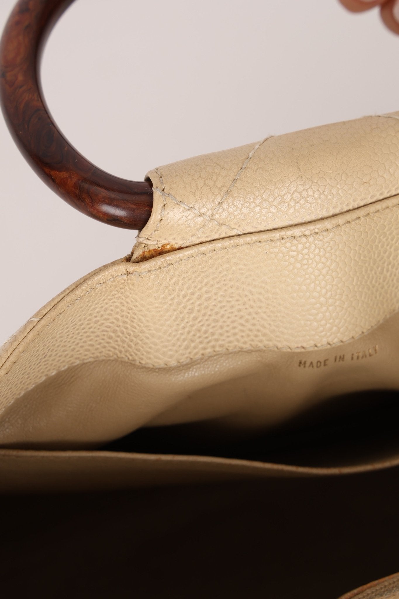 Chanel 2000 Cream Caviar Wood Acrylic Tote - FashioNica