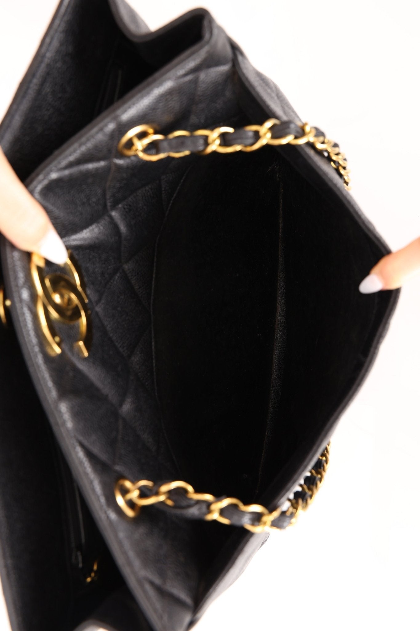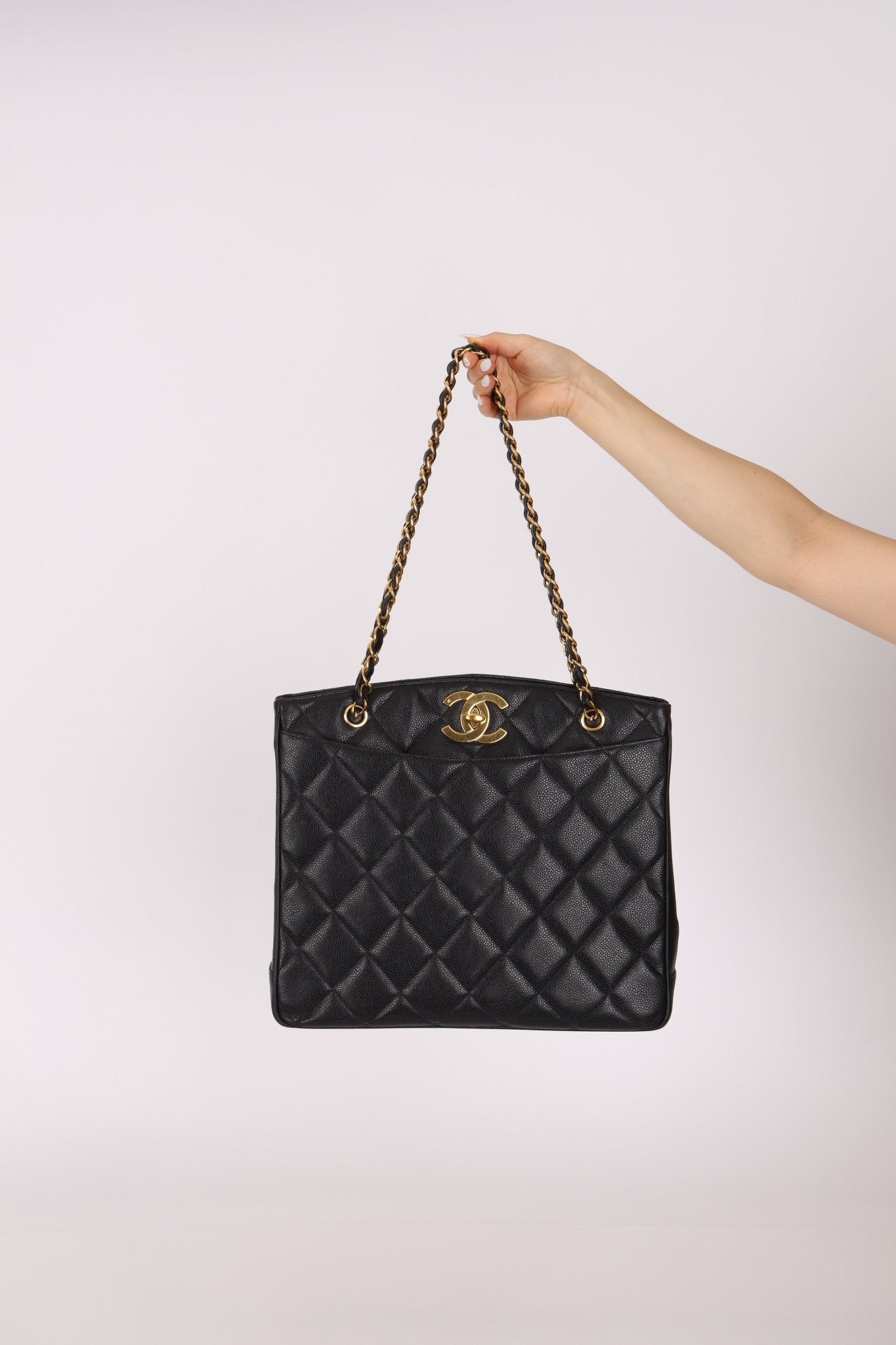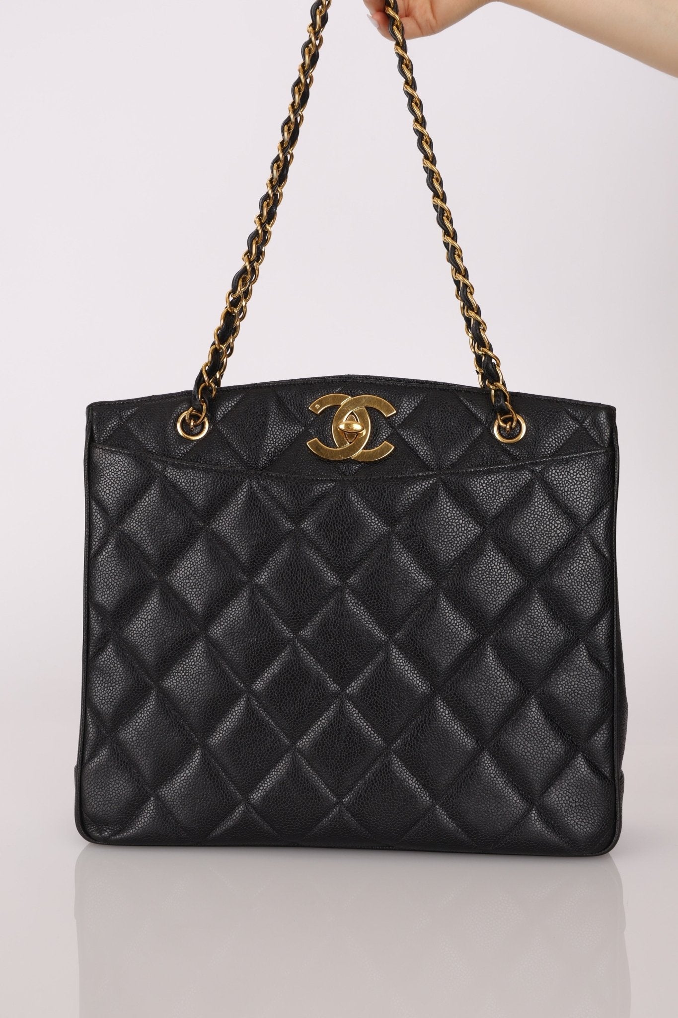 Chanel 1996 Caviar XL Logo Turnlock Tote 24k GP - FashioNica