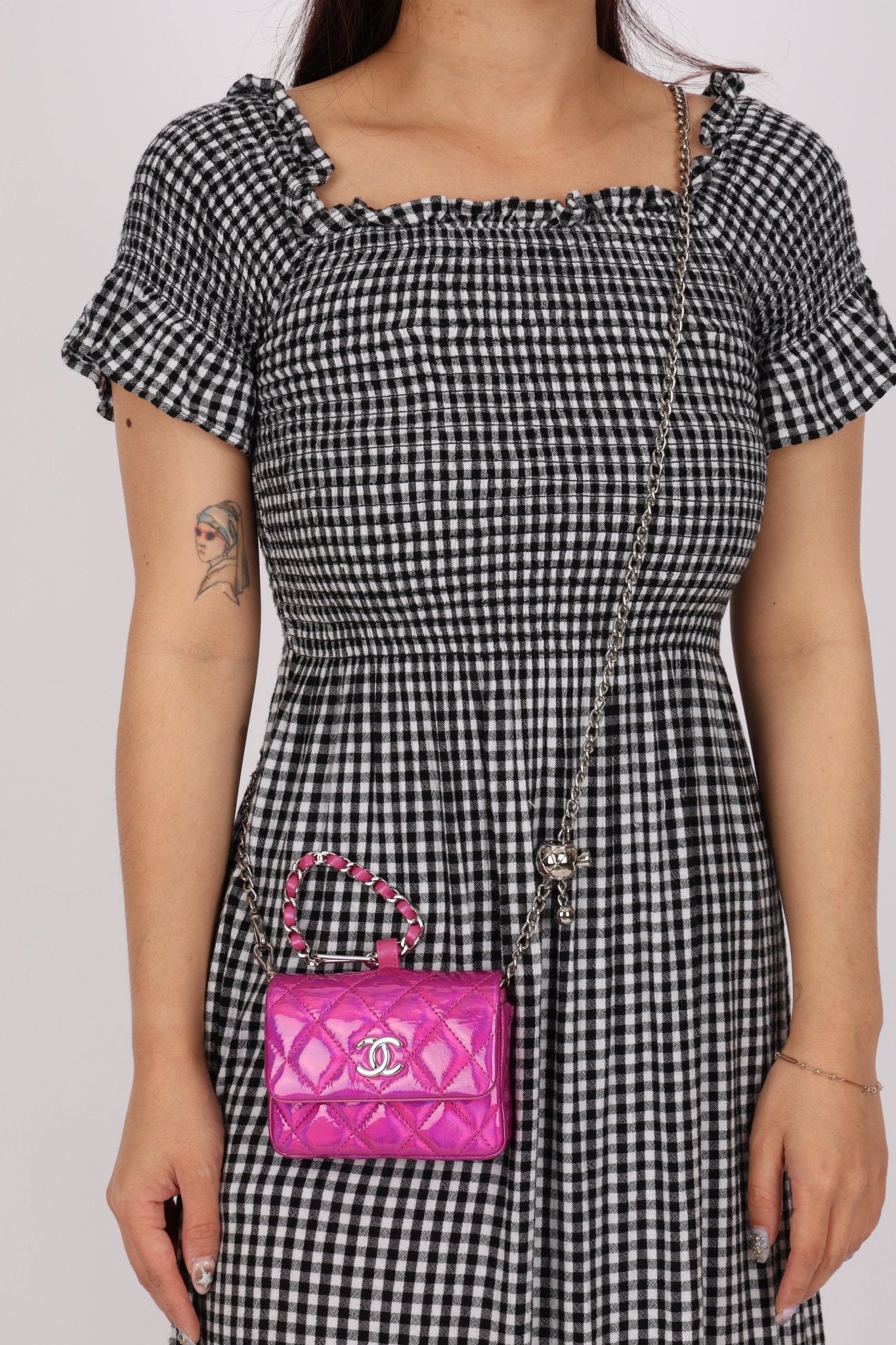 Chanel 24C Iridescent Patent Quilted Carabiner Card Holder - FashioNica