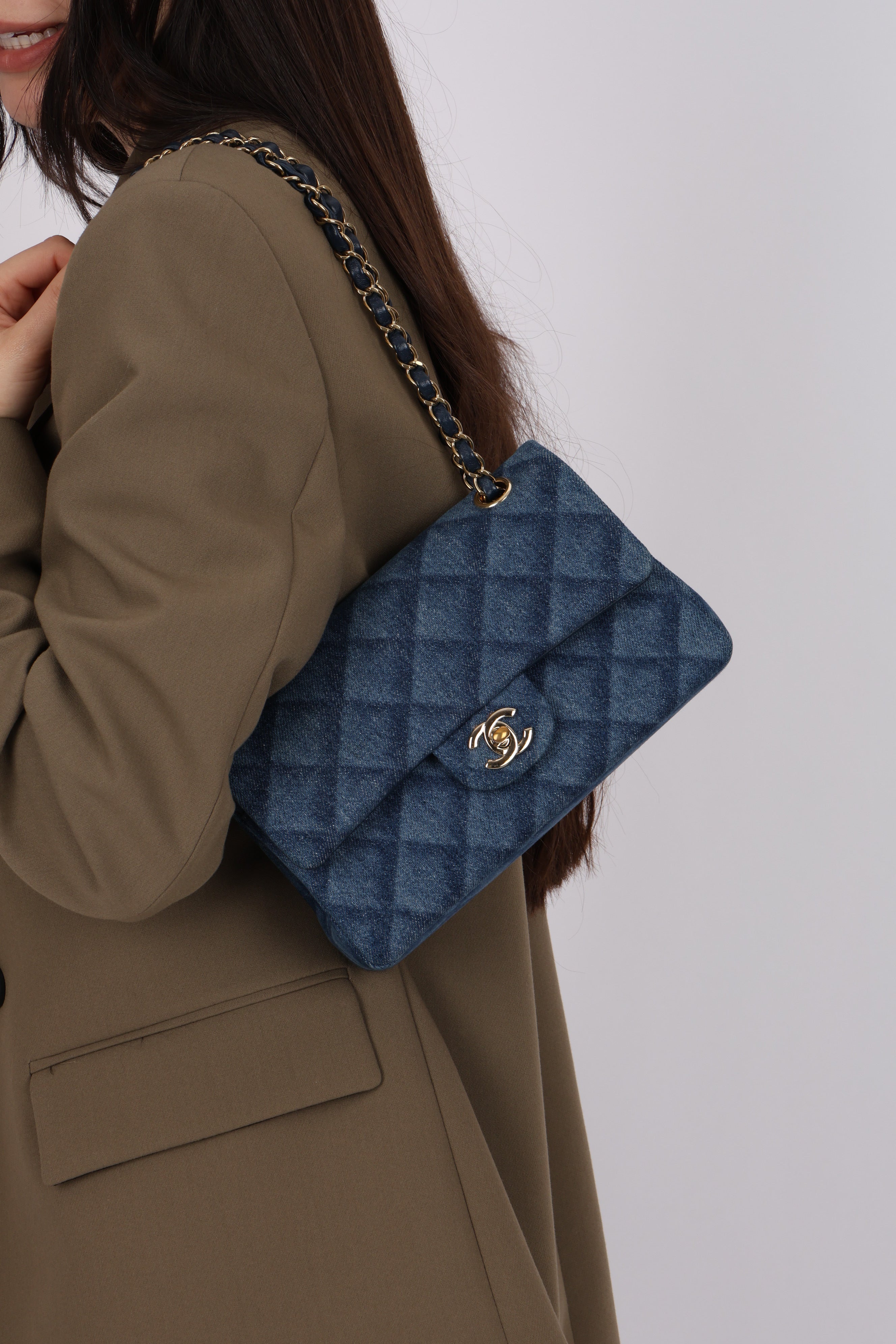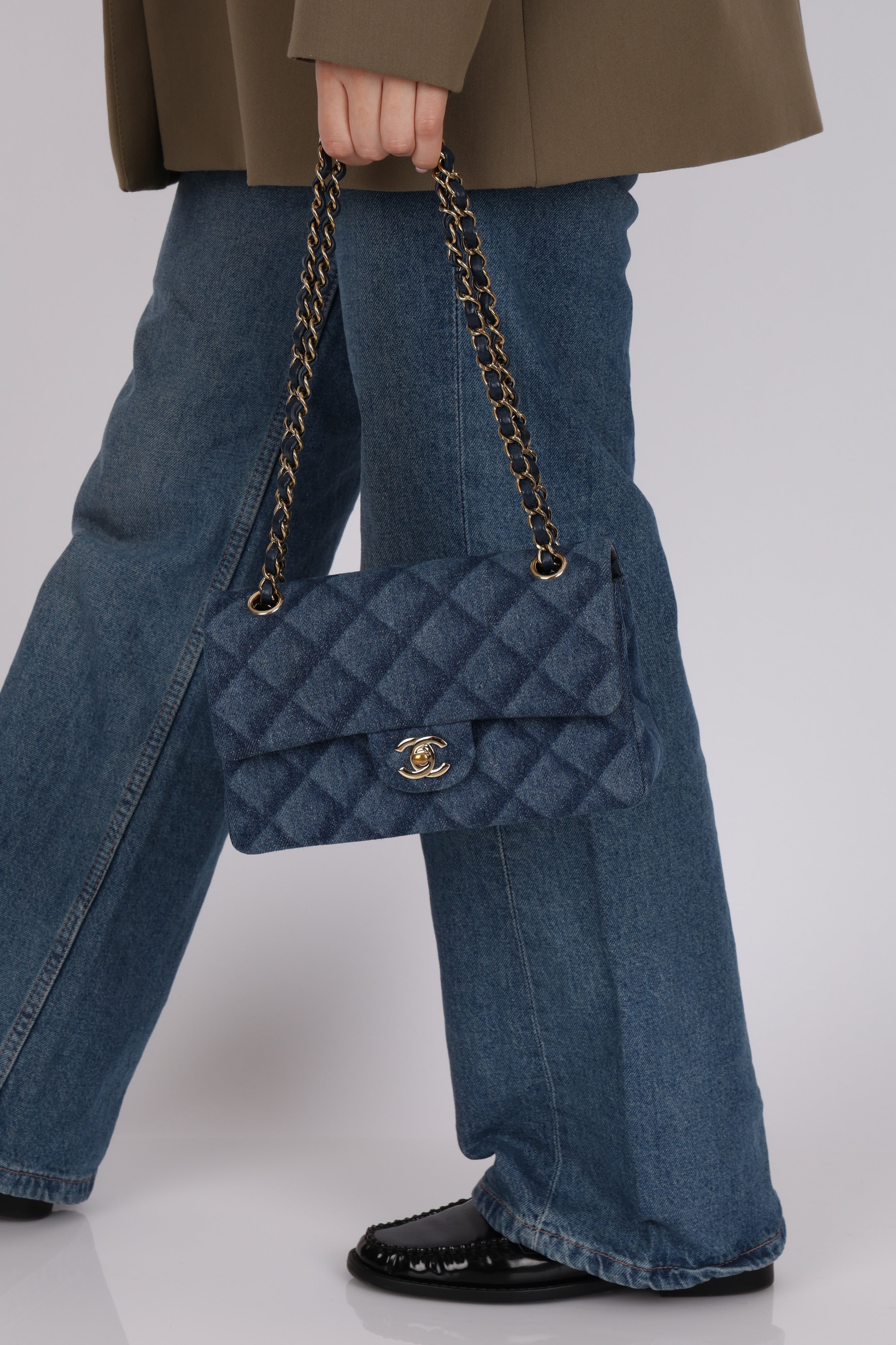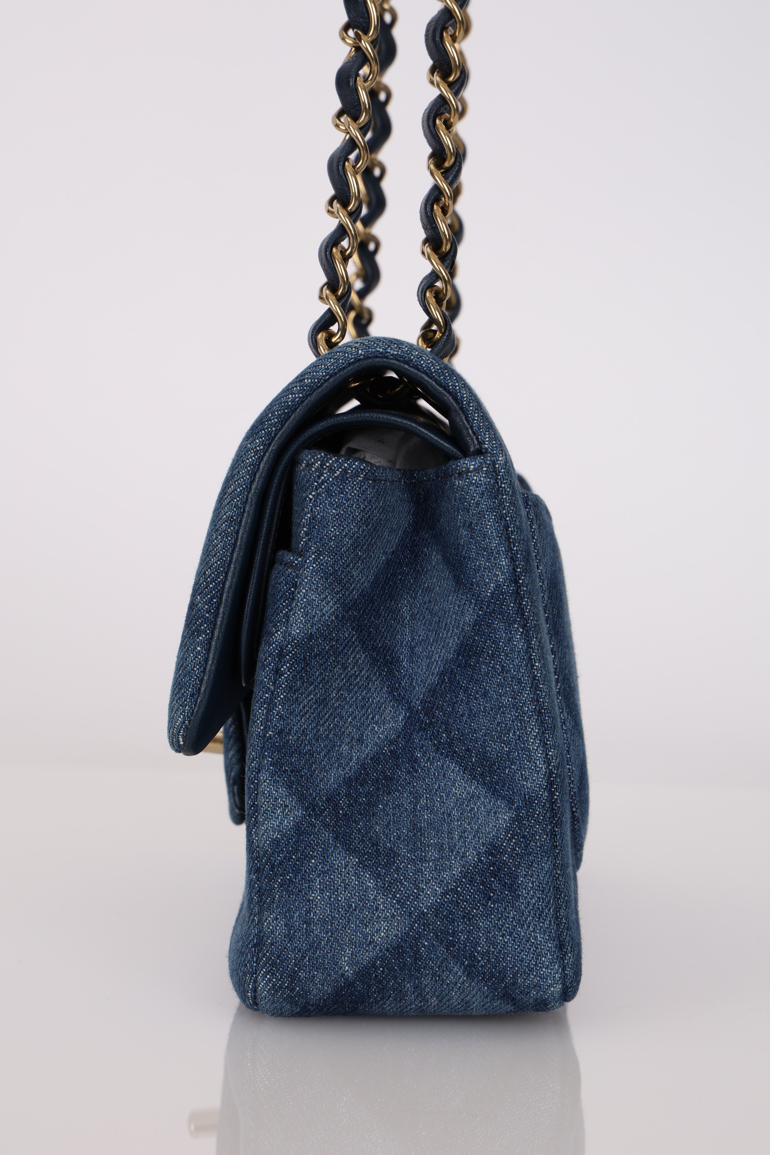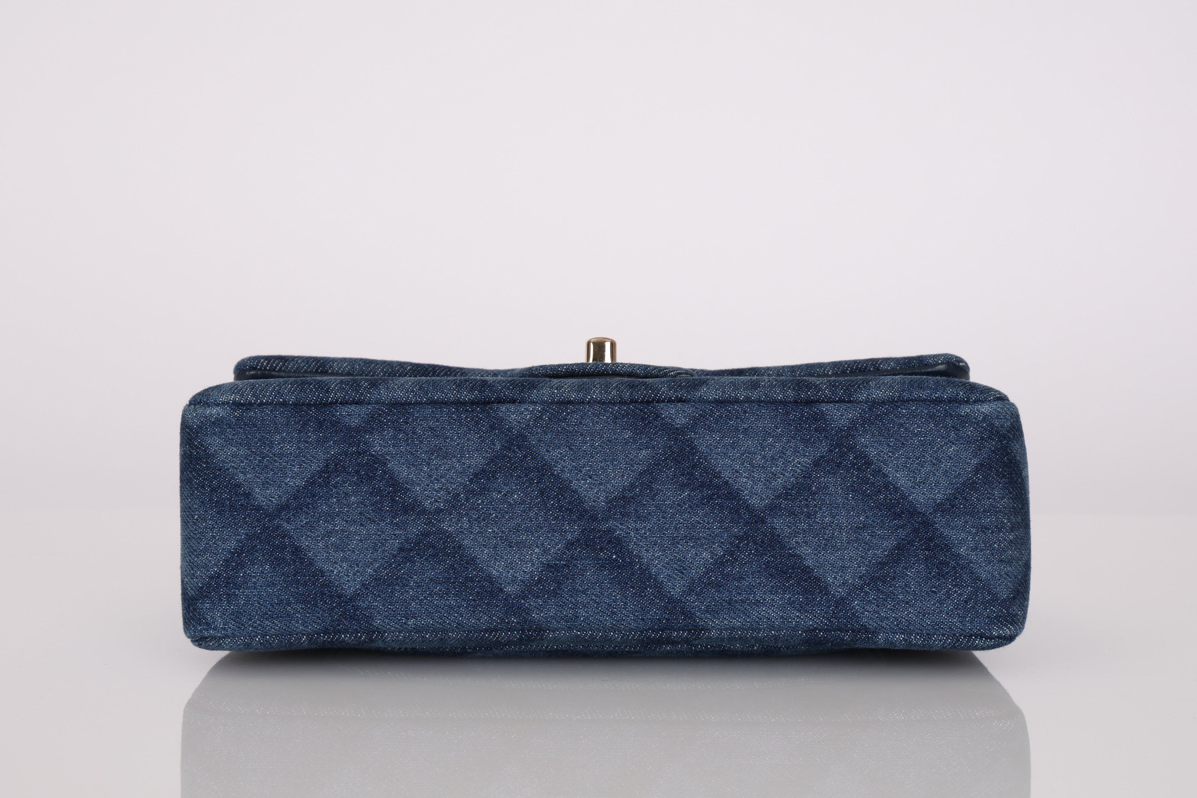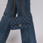 Chanel 2022 Quilted Trompe L'oeil Denim Small Classic Flap GHW