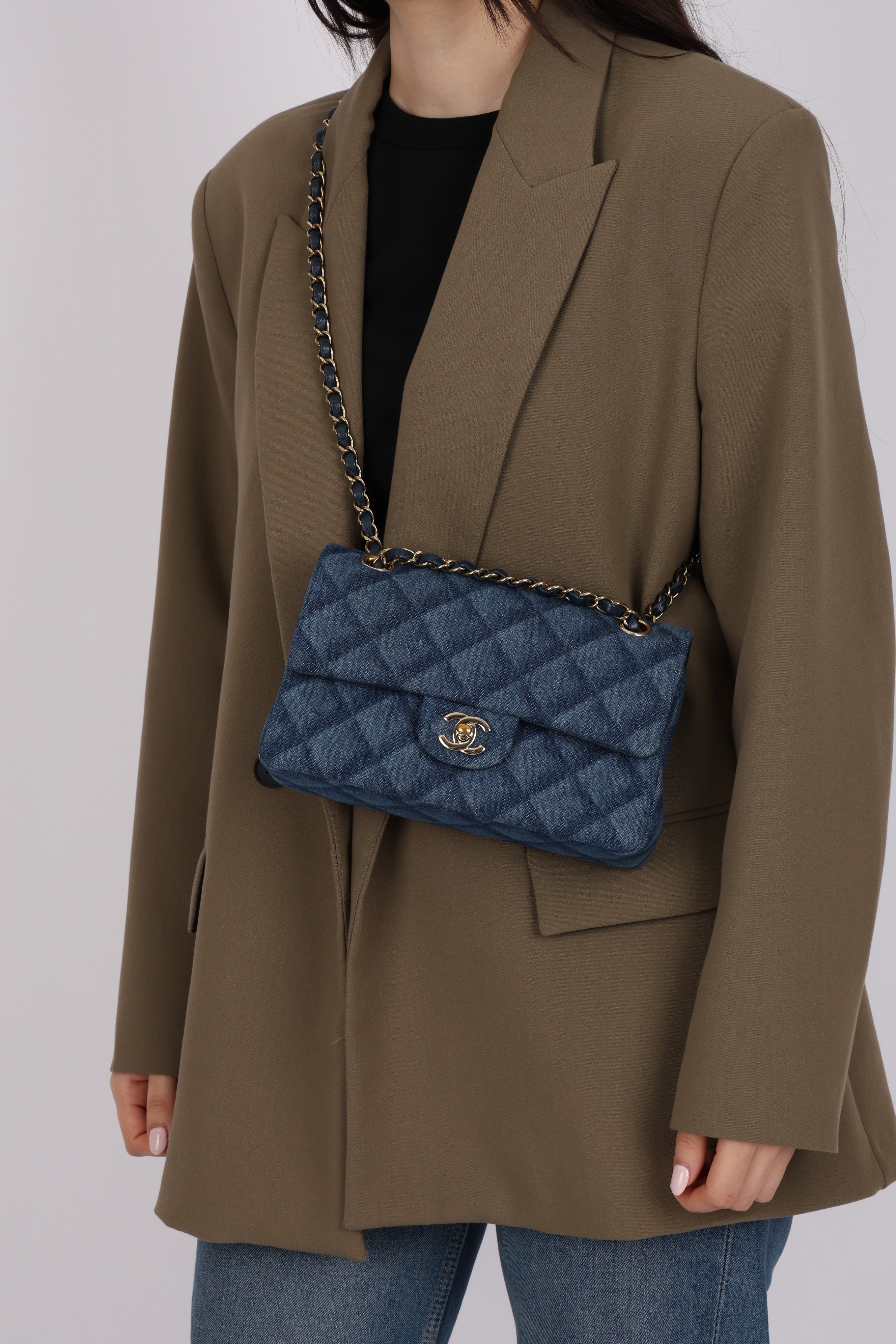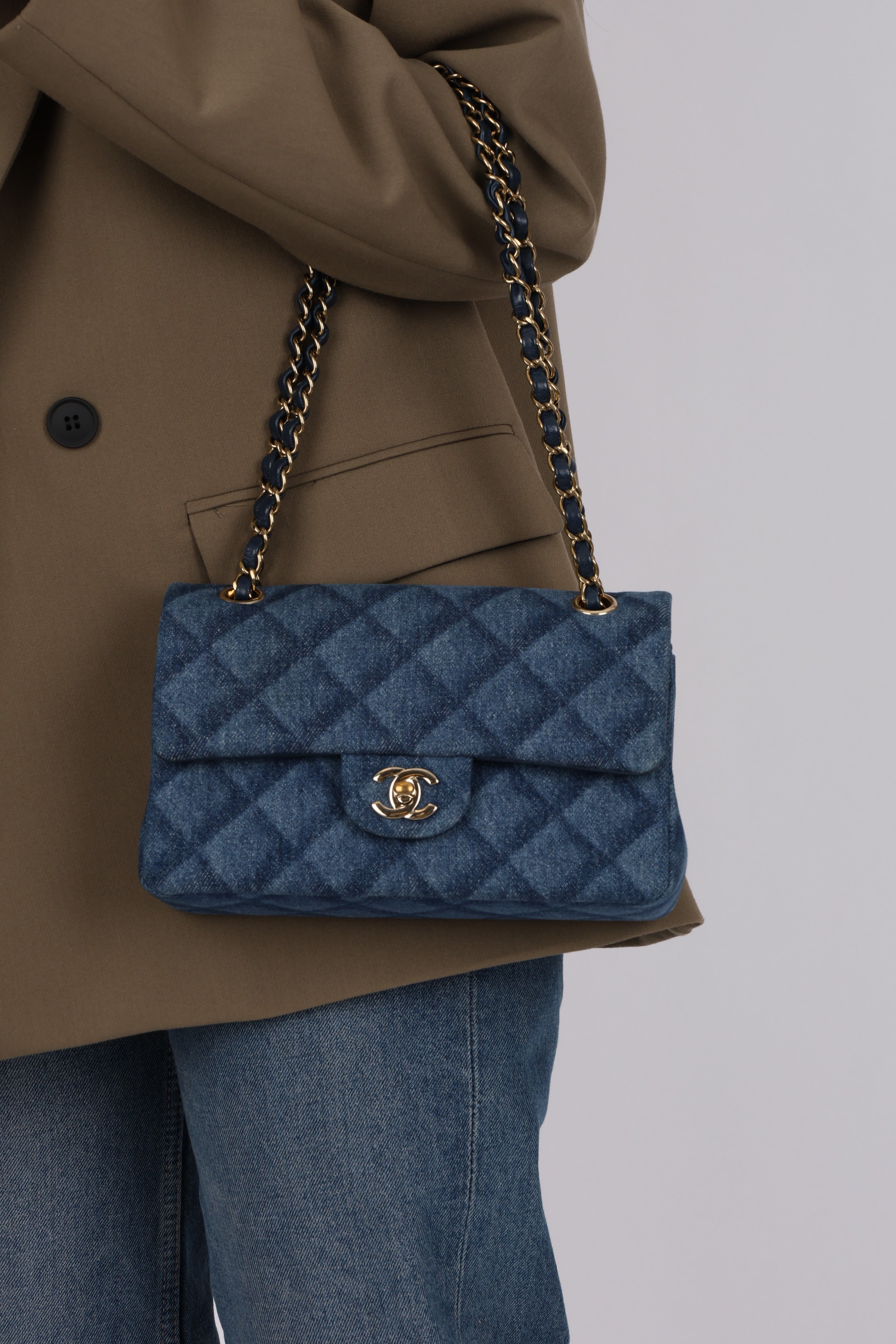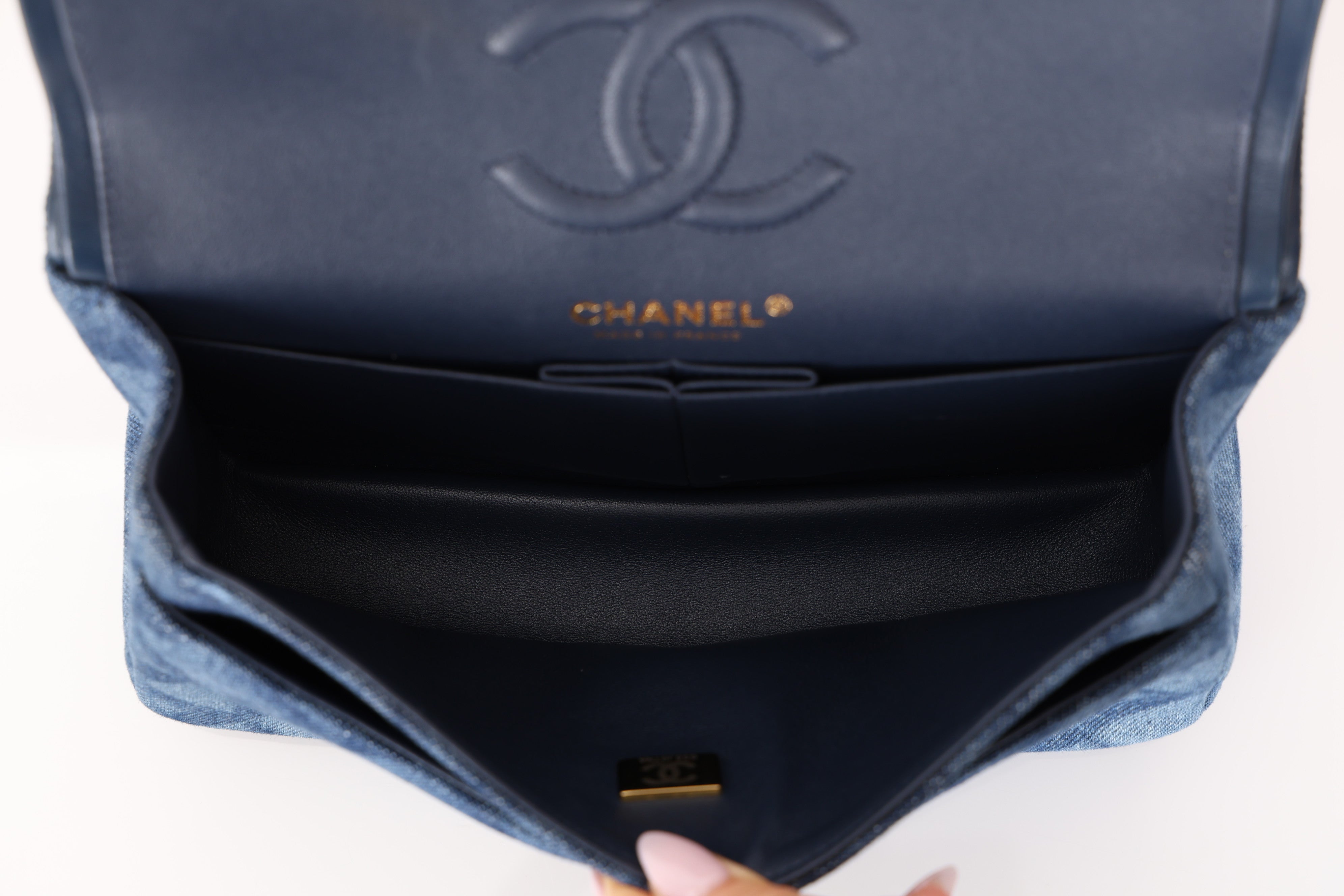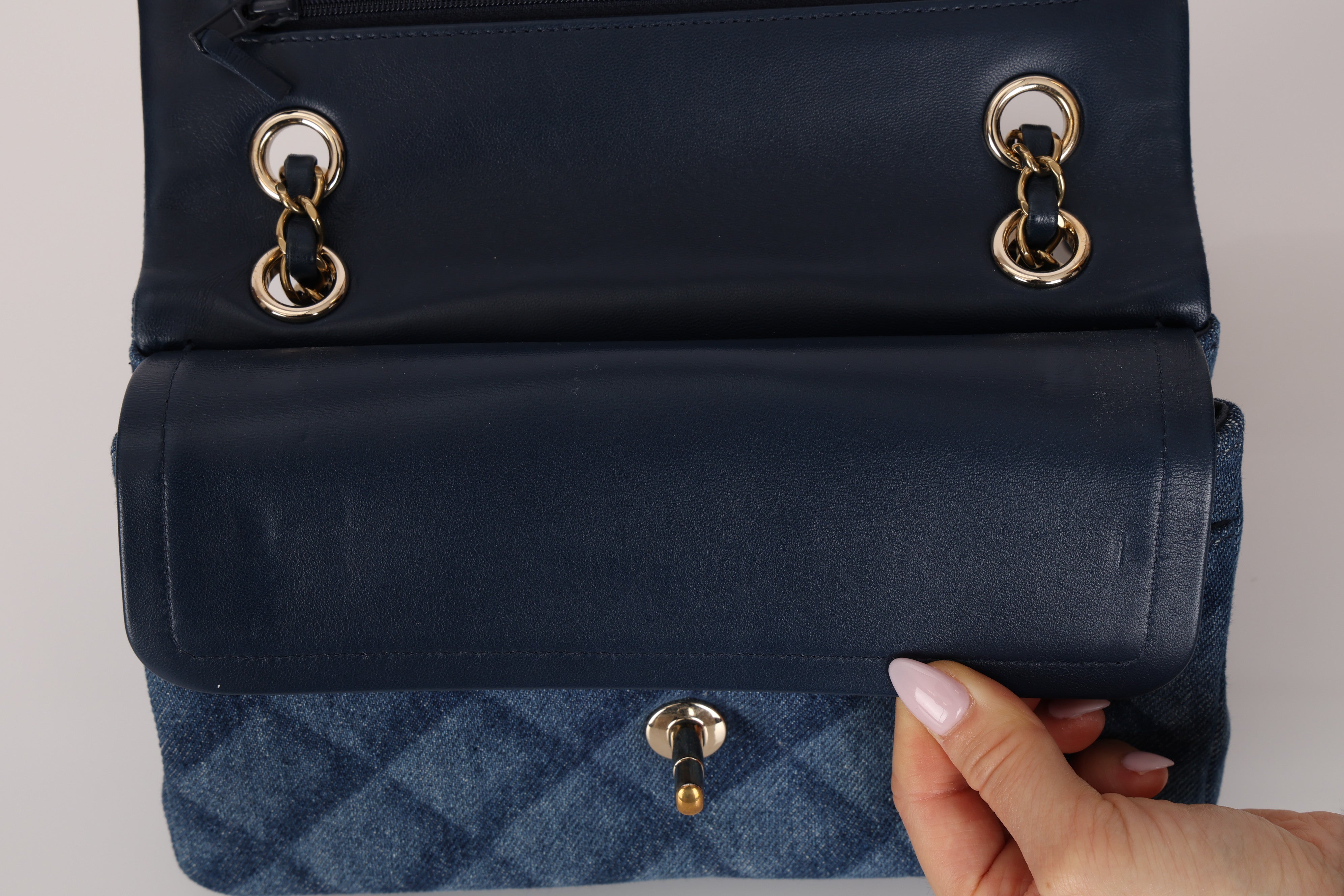 Chanel 2022 Quilted Trompe L'oeil Denim Small Classic Flap GHW