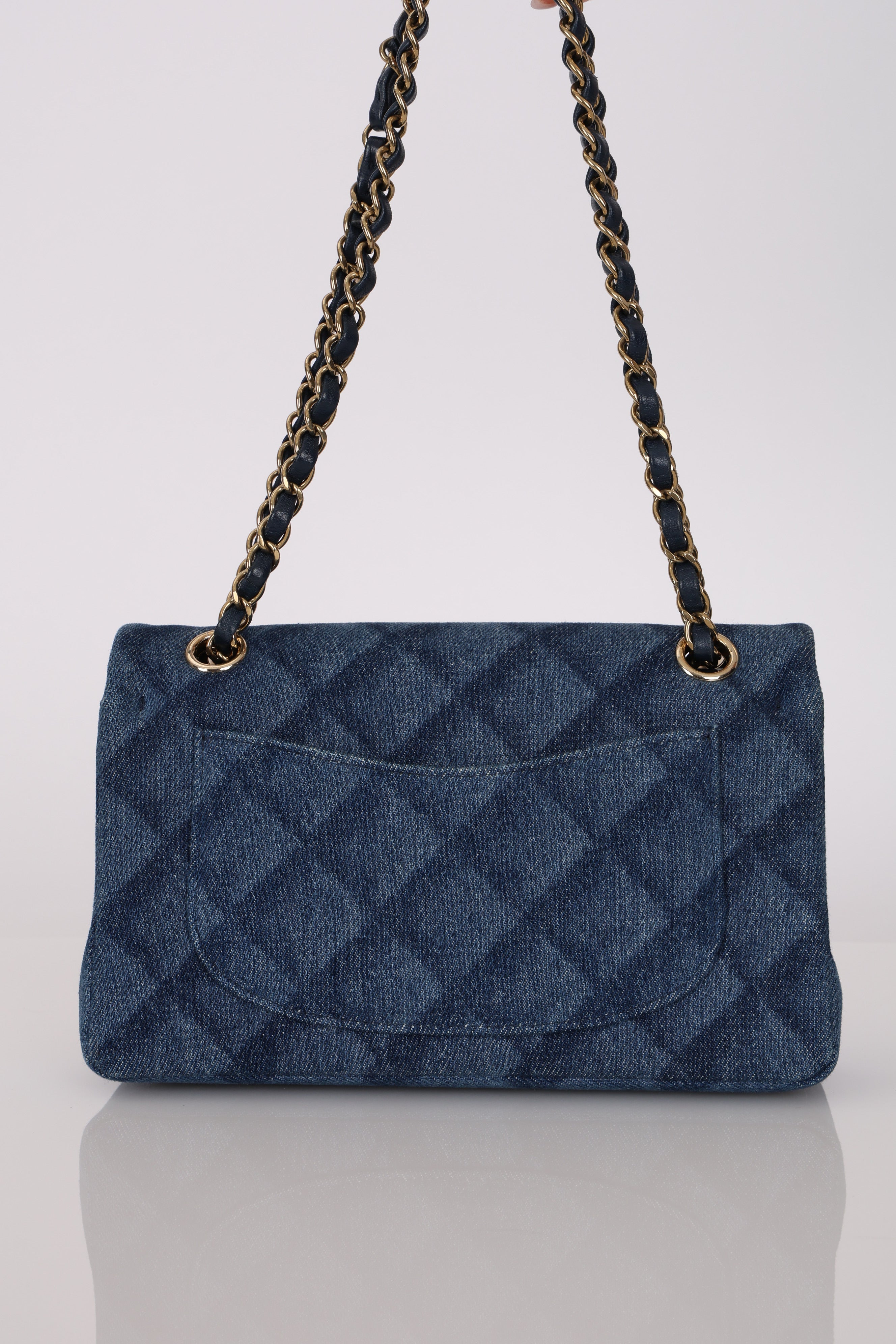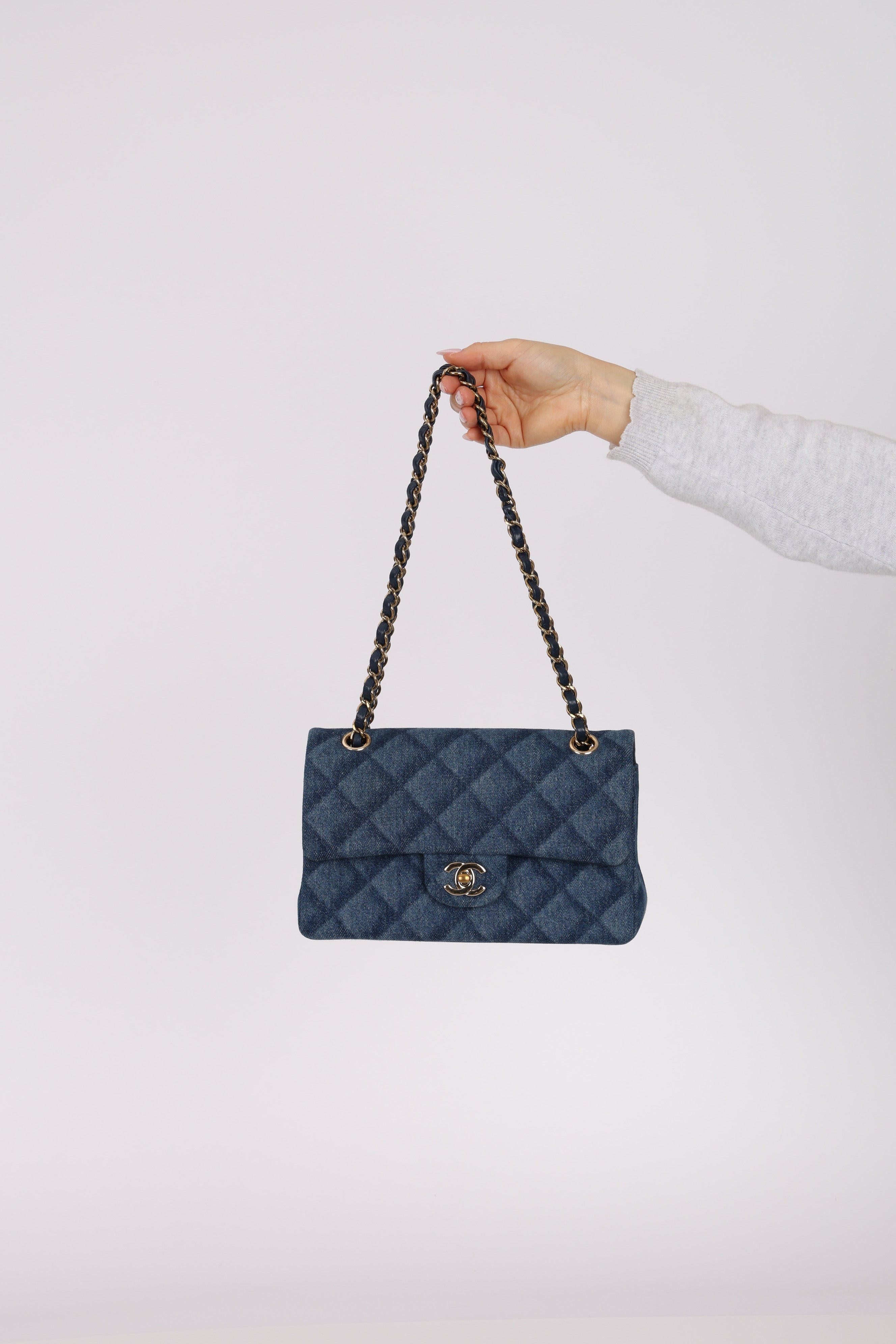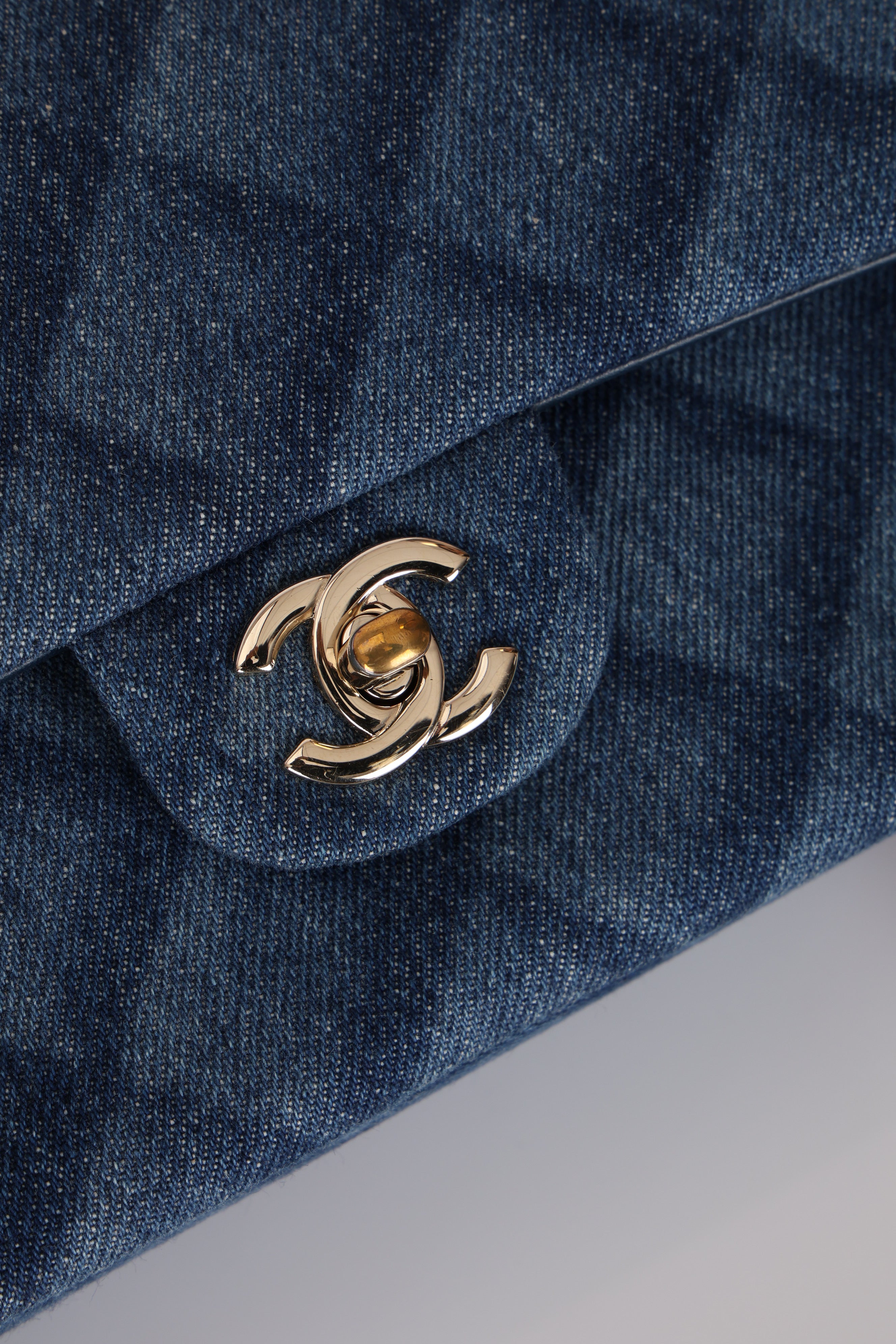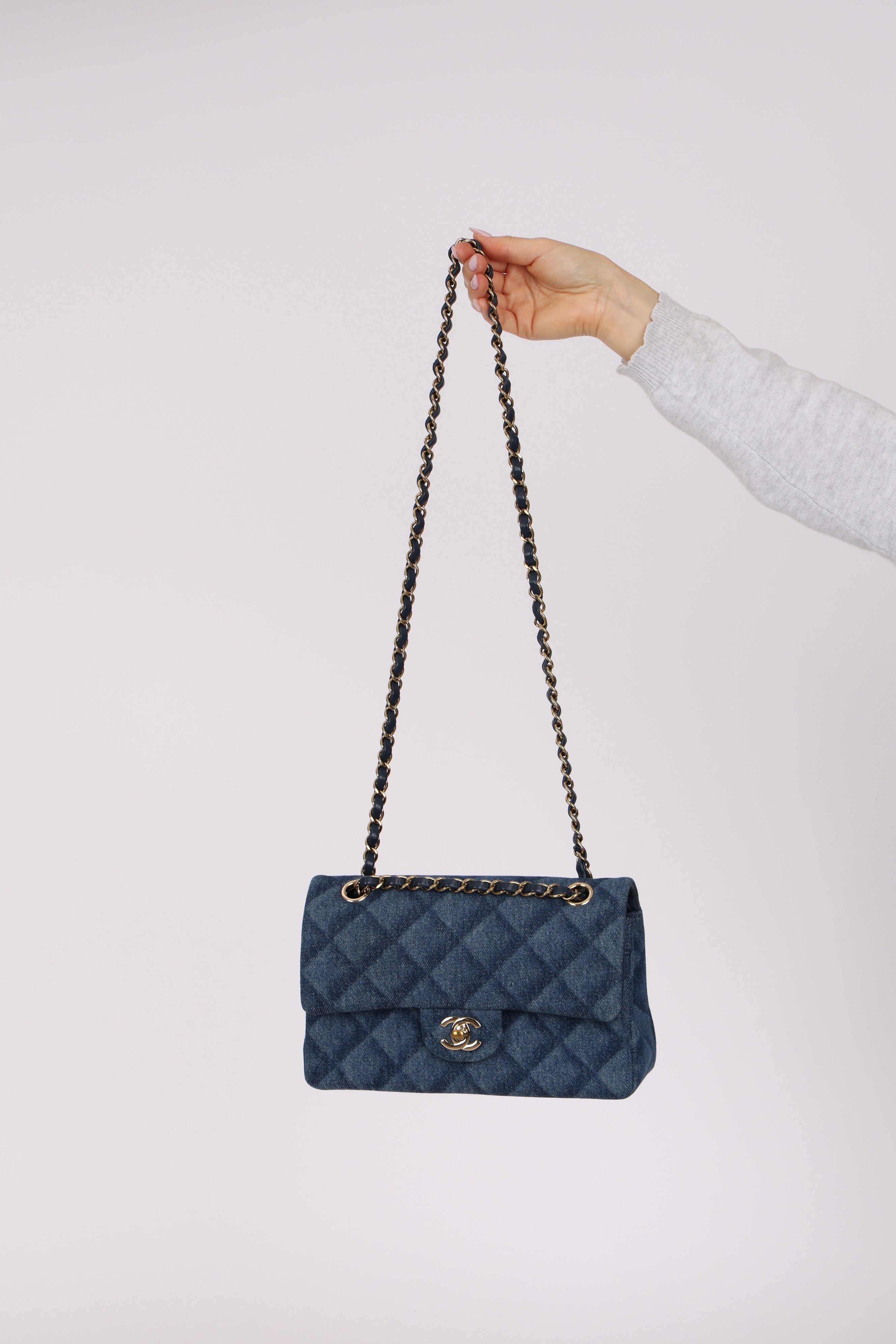 Chanel 2022 Quilted Trompe L'oeil Denim Small Classic Flap GHW