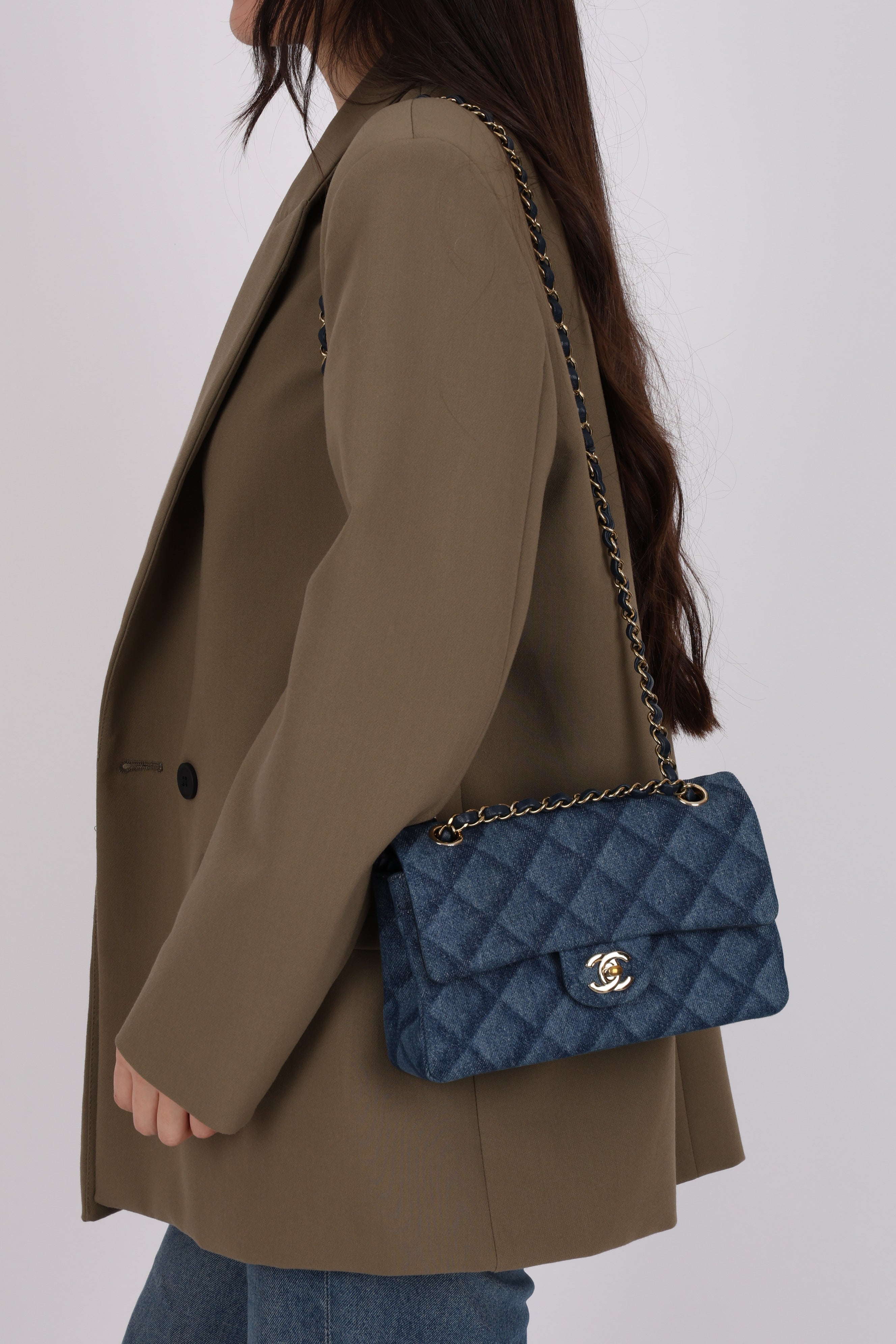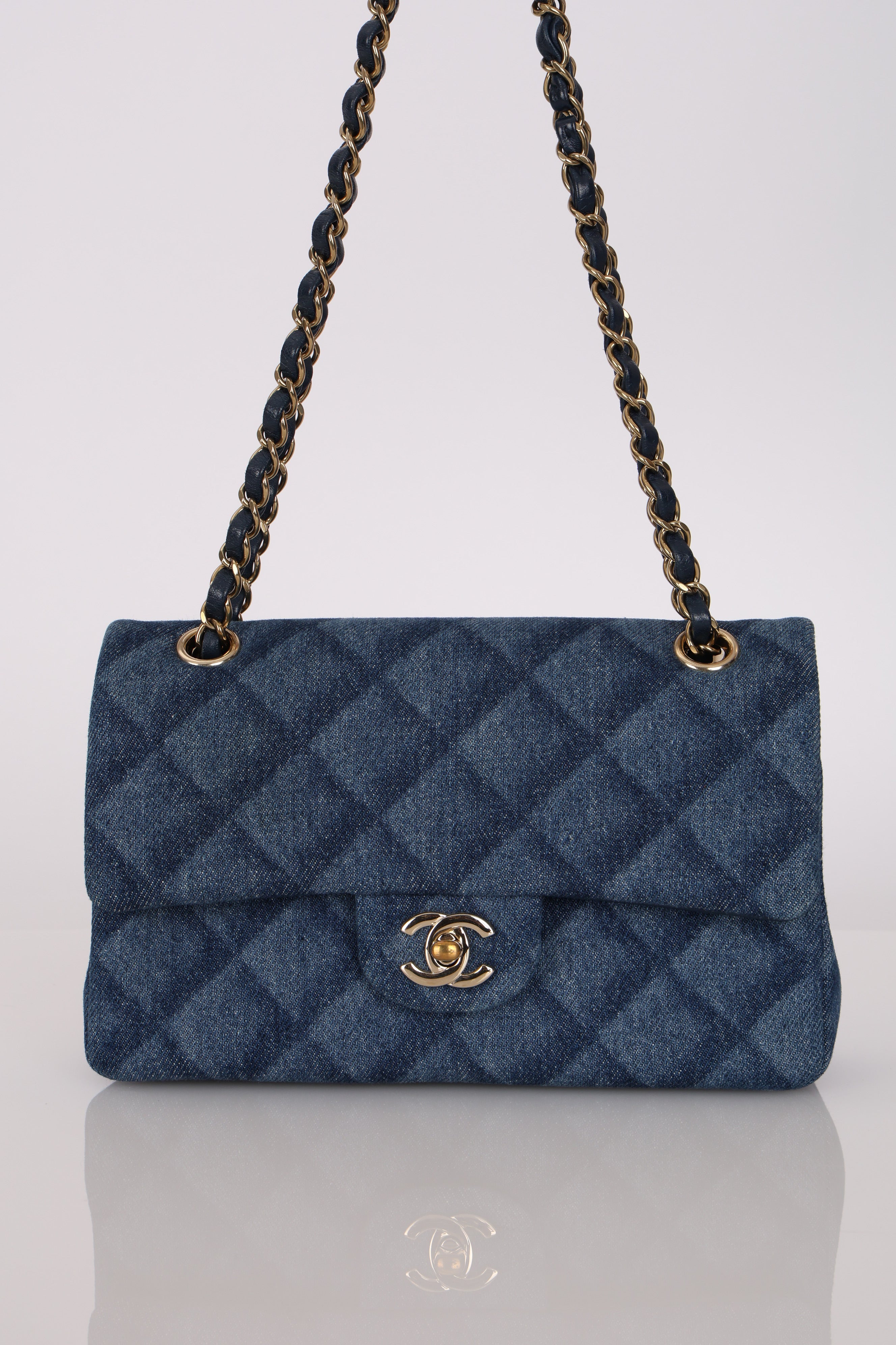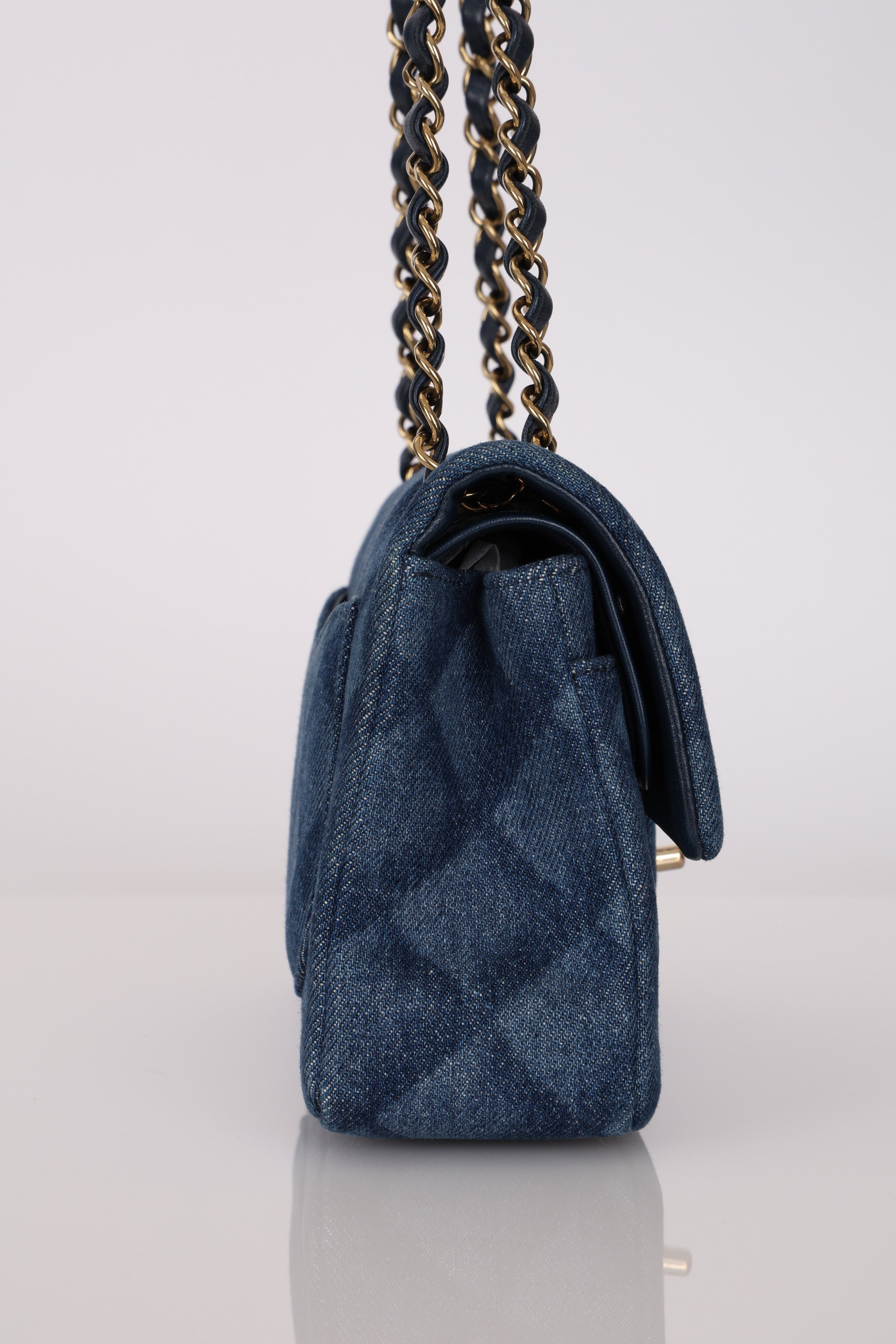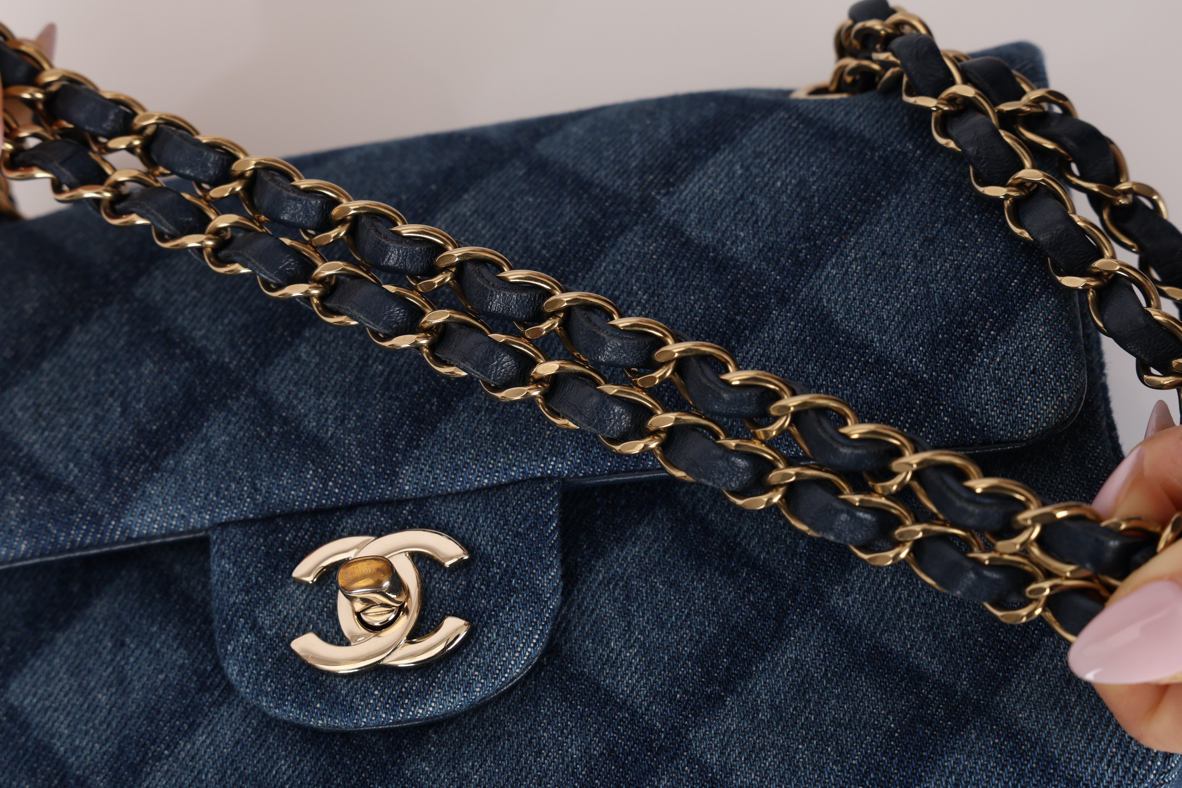 Chanel 2022 Quilted Trompe L'oeil Denim Small Classic Flap GHW
