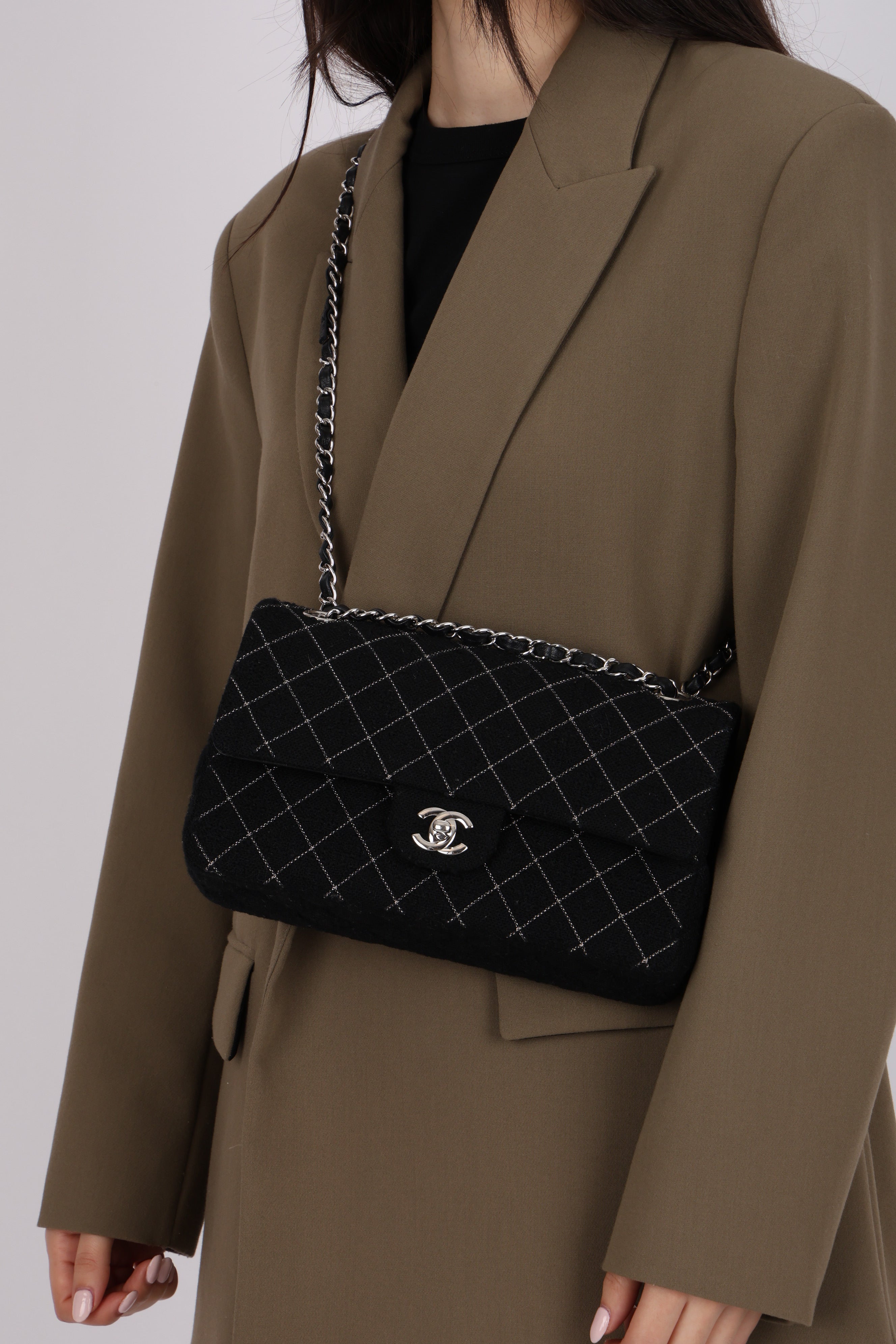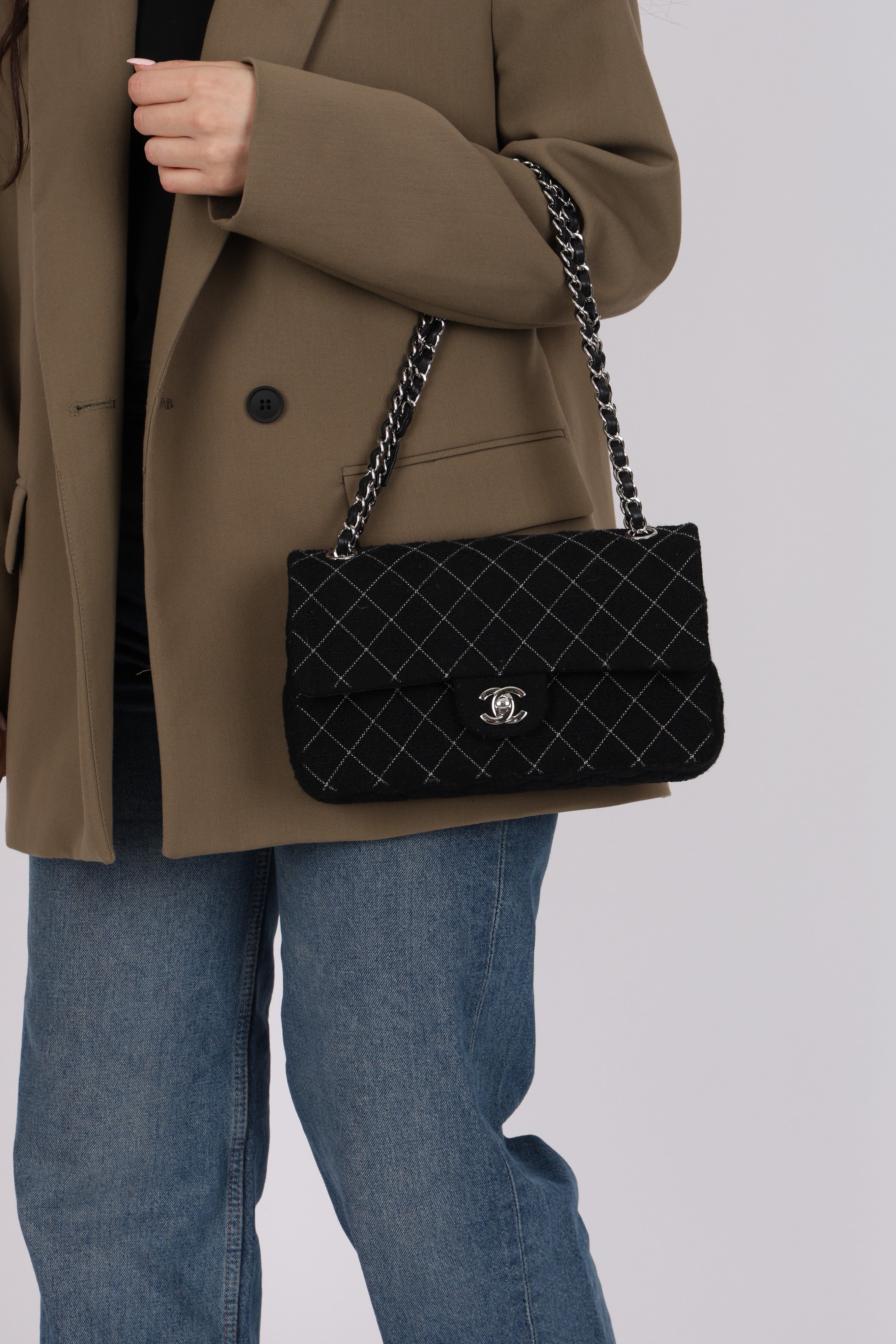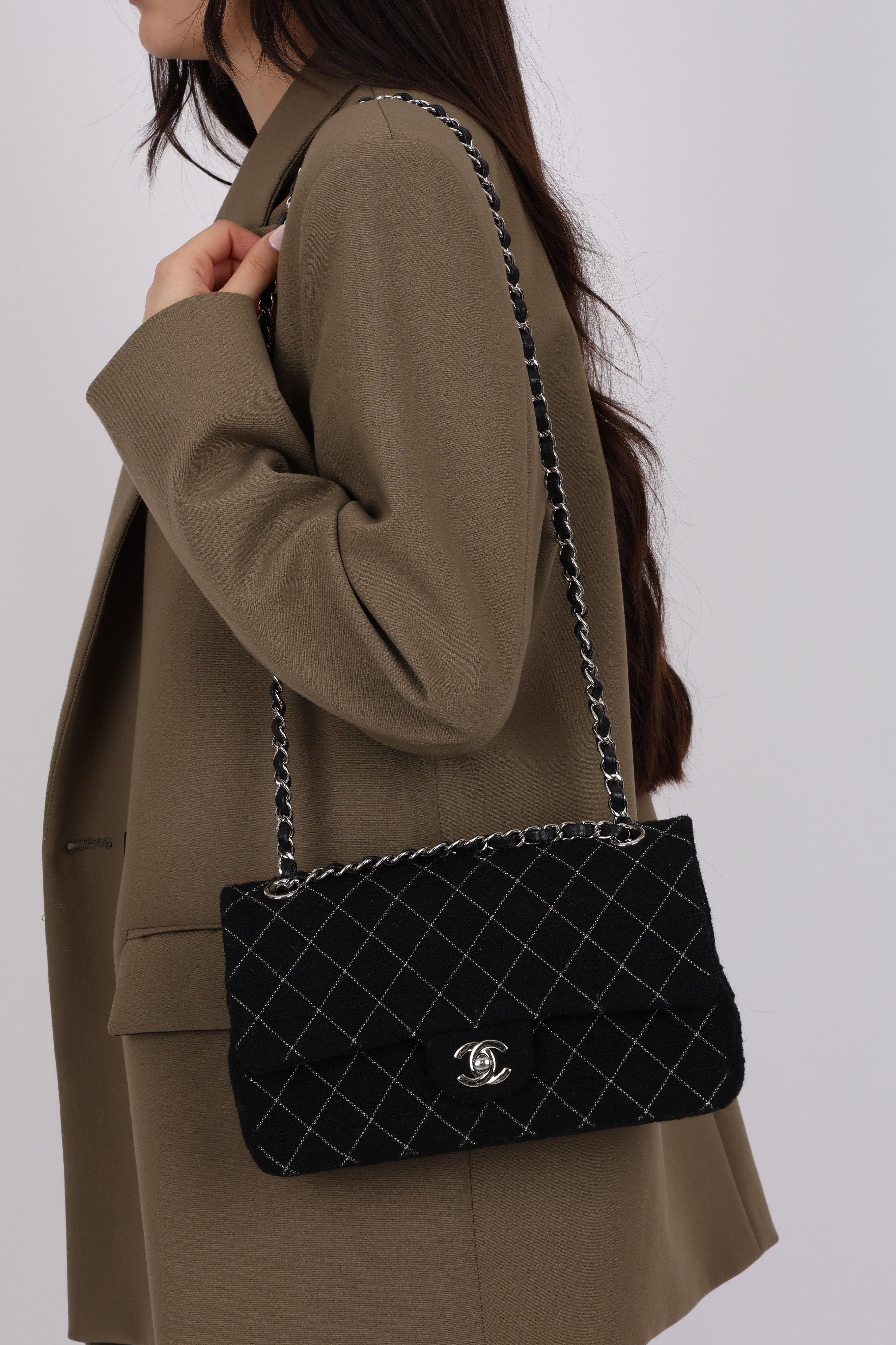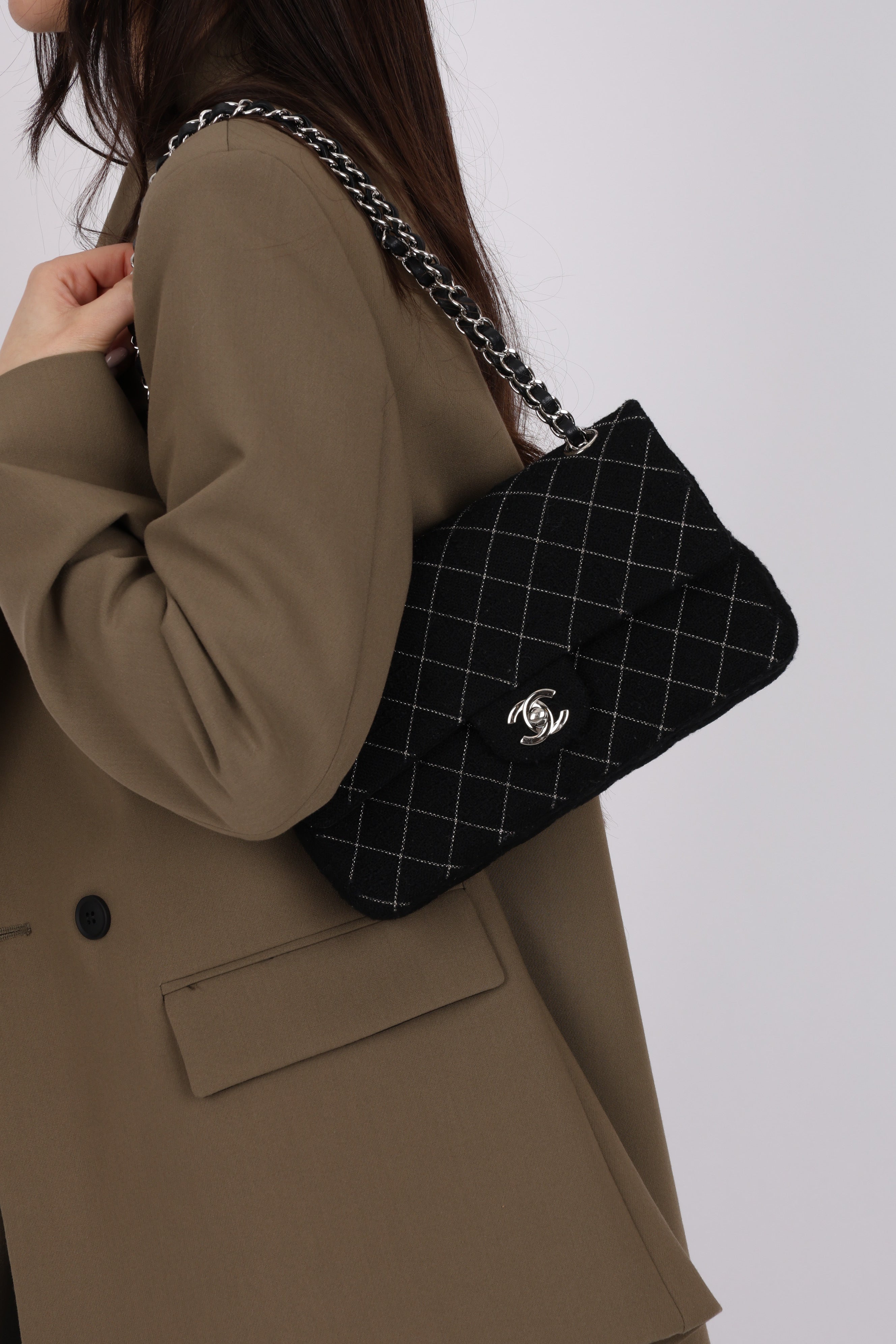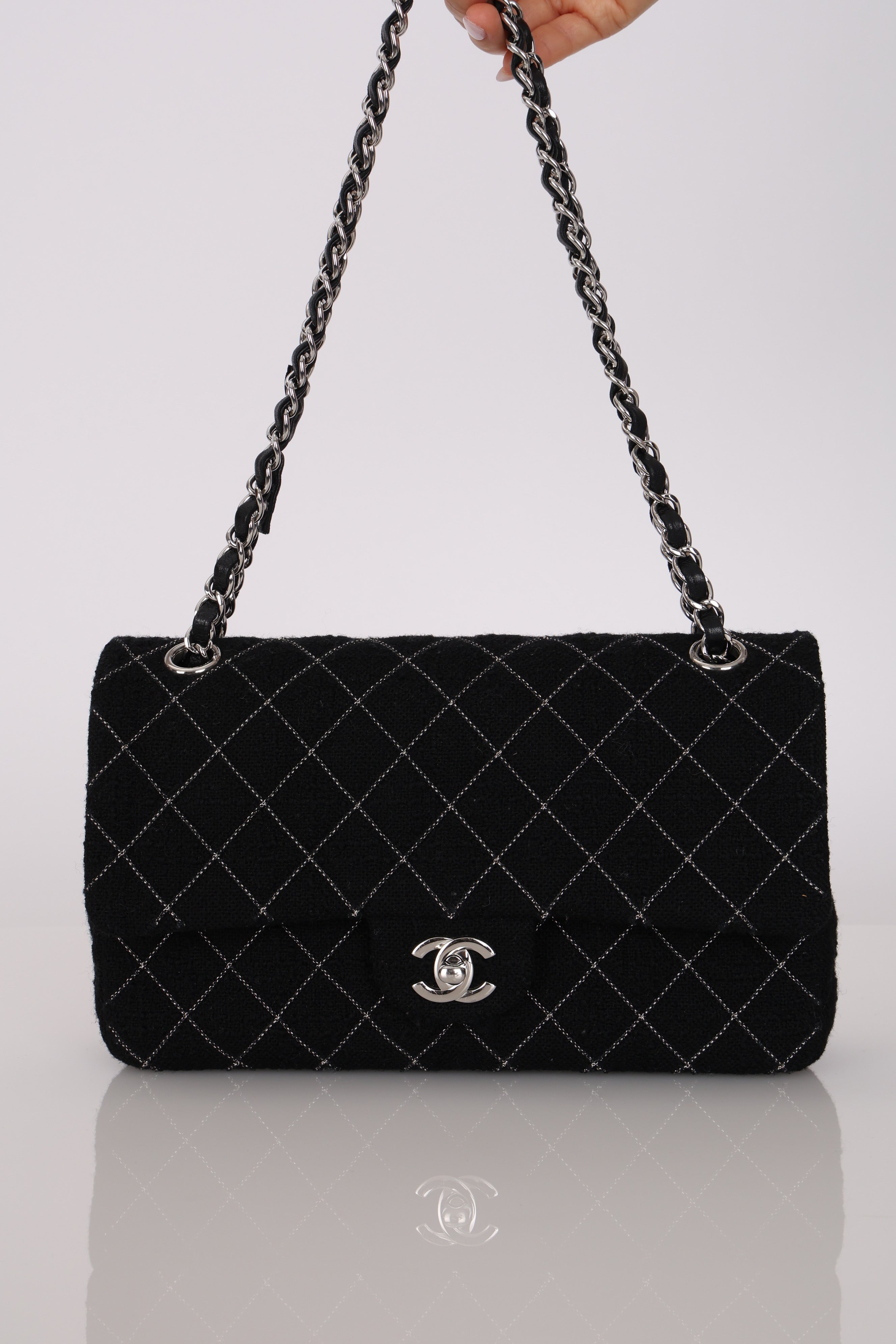 Limited Edition Chanel 2023 Chain Tweed Medium Classic Double Flap Bag