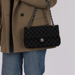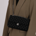 The Chanel Chain Stitch Double Flap Bag from the Fall 2023 Collection puts a modern twist on the brand’s signature look. Instead of the classic quilted stitching, it features unique quilting made entirely with small chains.