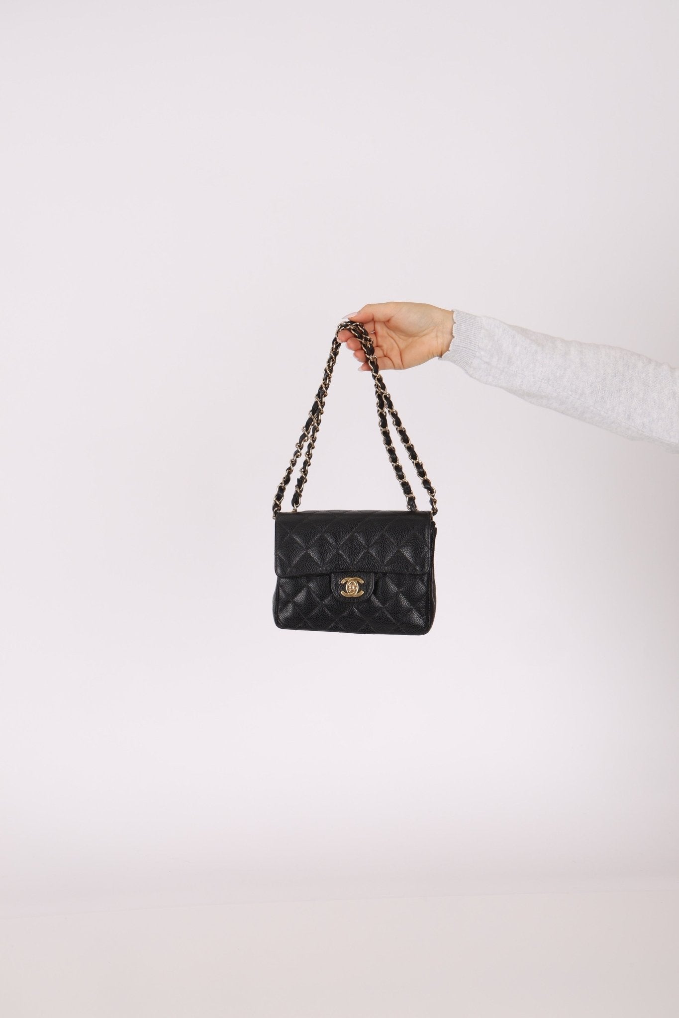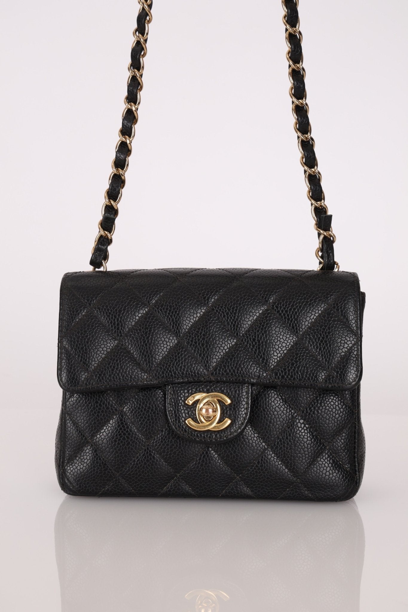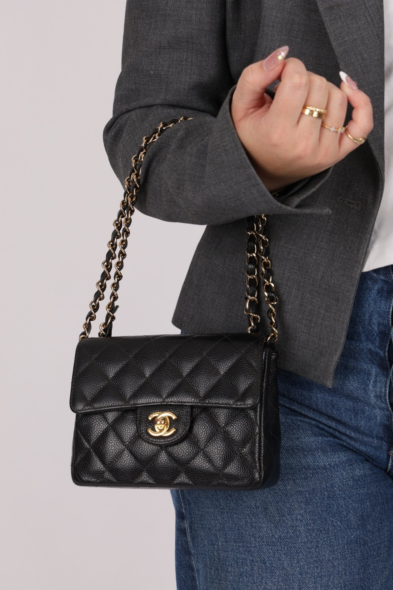 Dropping a coveted Chanel Caviar Mini Square Flap! Chanel discontinued the use of caviar leather for the square mini flap in 2018, additionally this piece is crafted in 24K gold plated hardware which makes her a rare collectible gem! This exact bag with the gold plating is going between $9-$12k on resale!