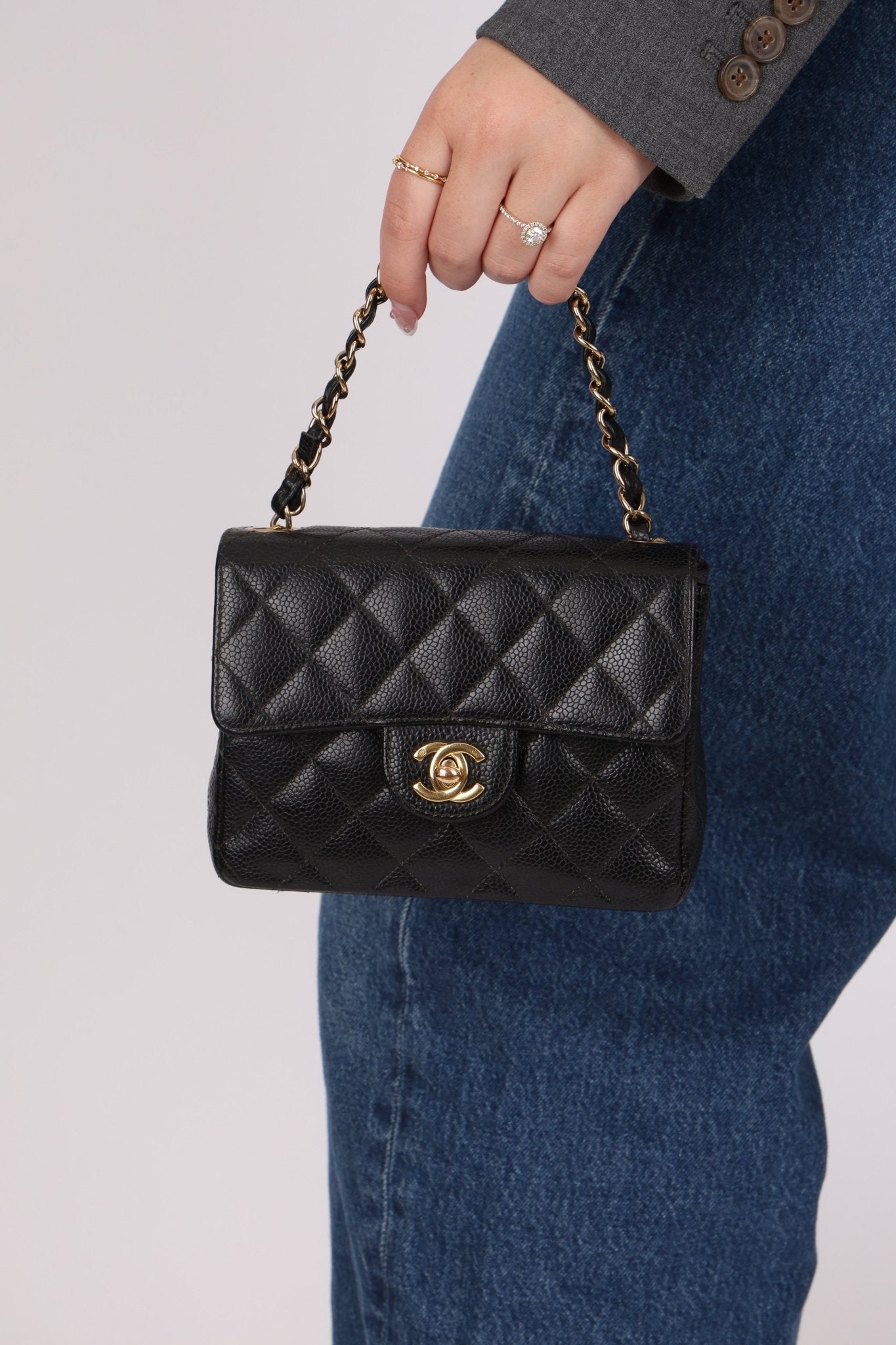 Discontinued Chanel 2004 Caviar Mini Square Flap Bag 24K GP - FashioNica