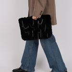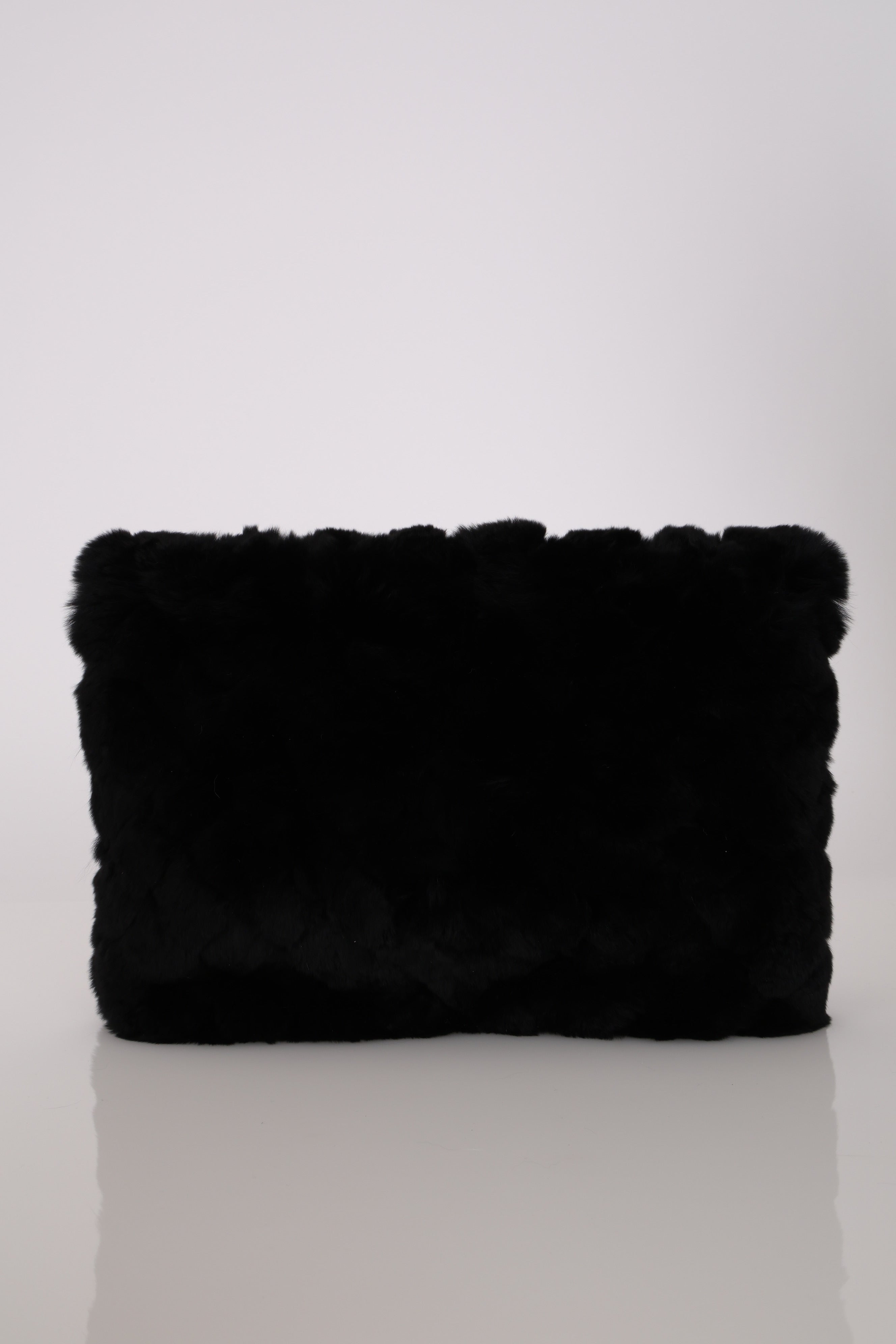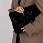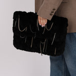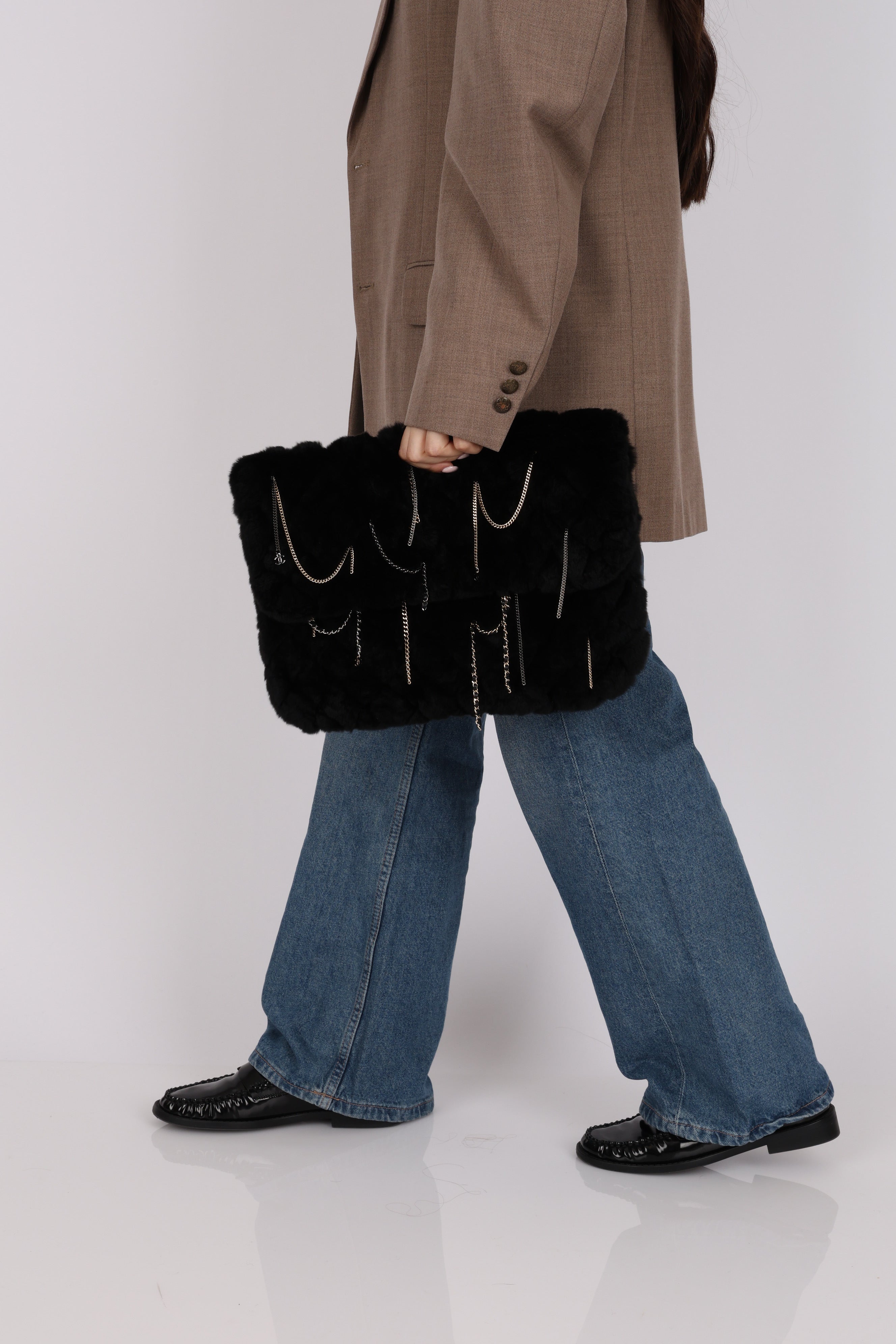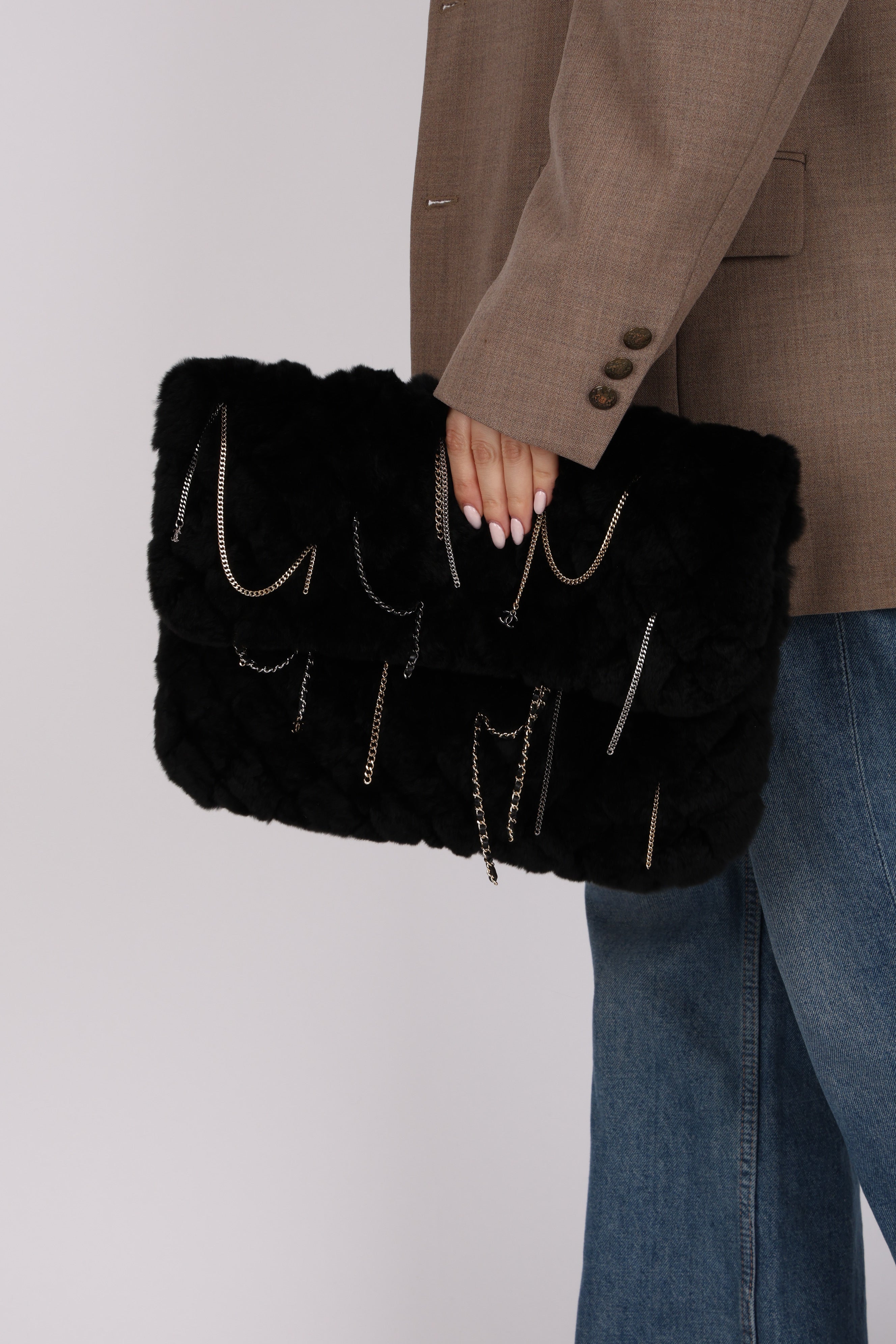 The chicest bag for your next winter getaway, the mixed hardware of the various chains on this plush rabbit fur clutch offer ultimate style with a spin of edginess.