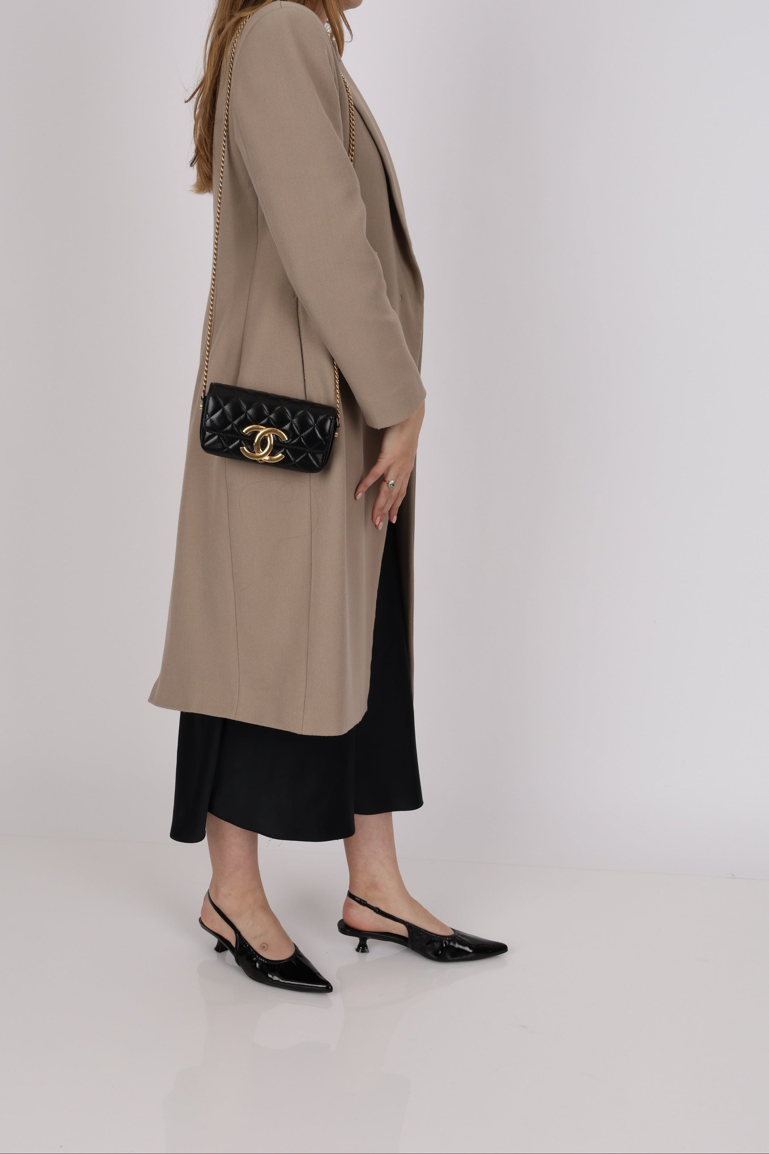 Fits phone, cardholder, lipstick, and other small essentials.