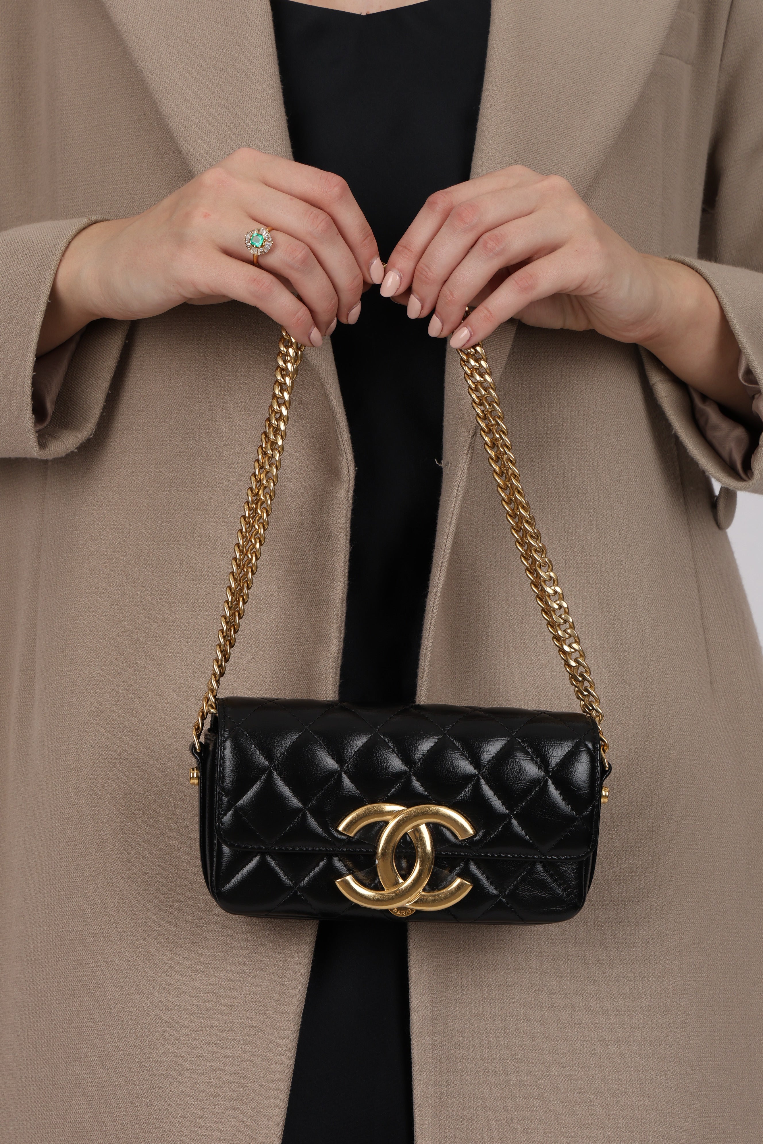 Chanel 2024 Lambskin Giant CC Mini Flap Baguette