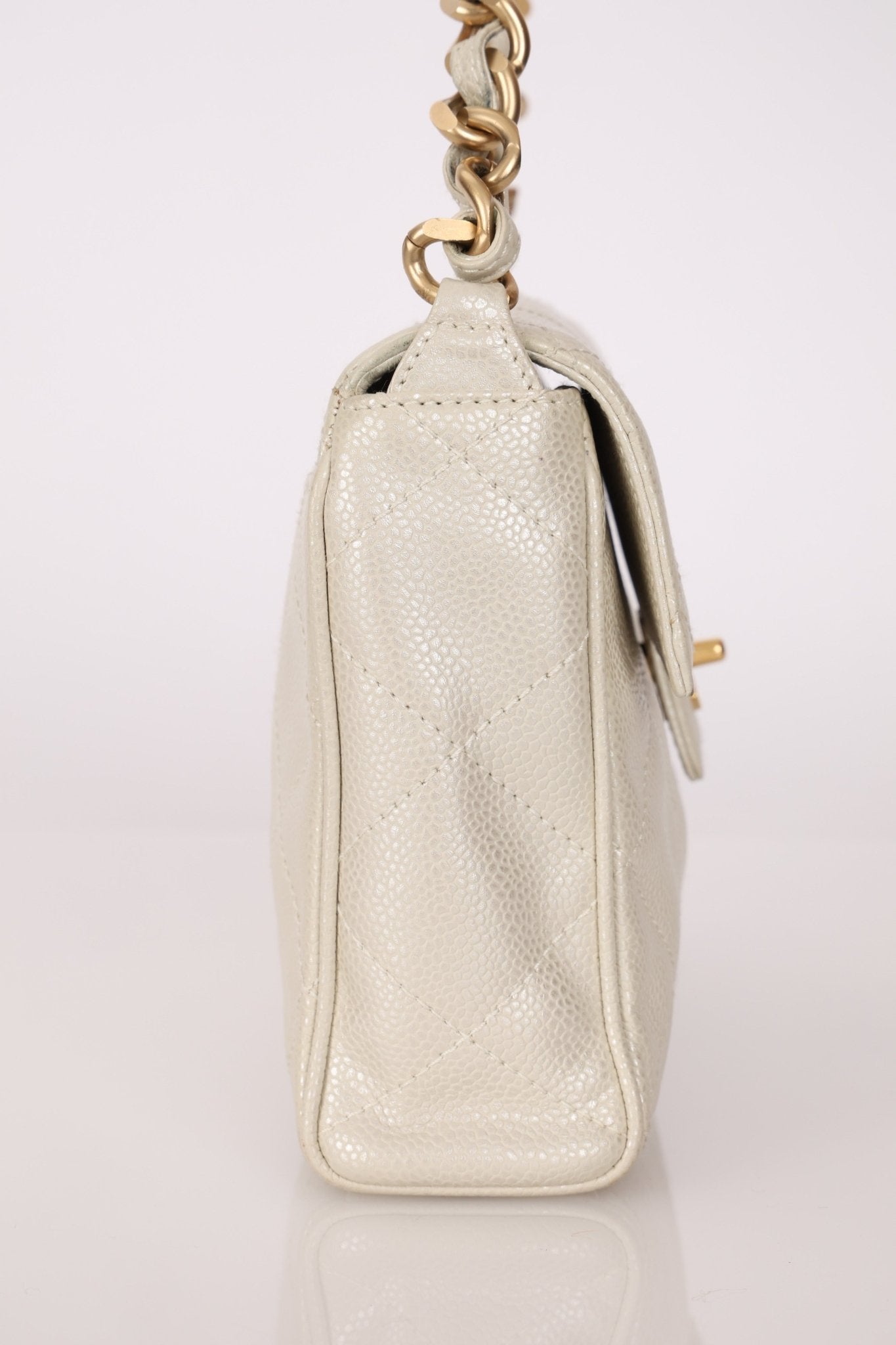 Rare Chanel 2002 Iridescent Caviar Turnlock Single Flap Bag 24k GP - FashioNica