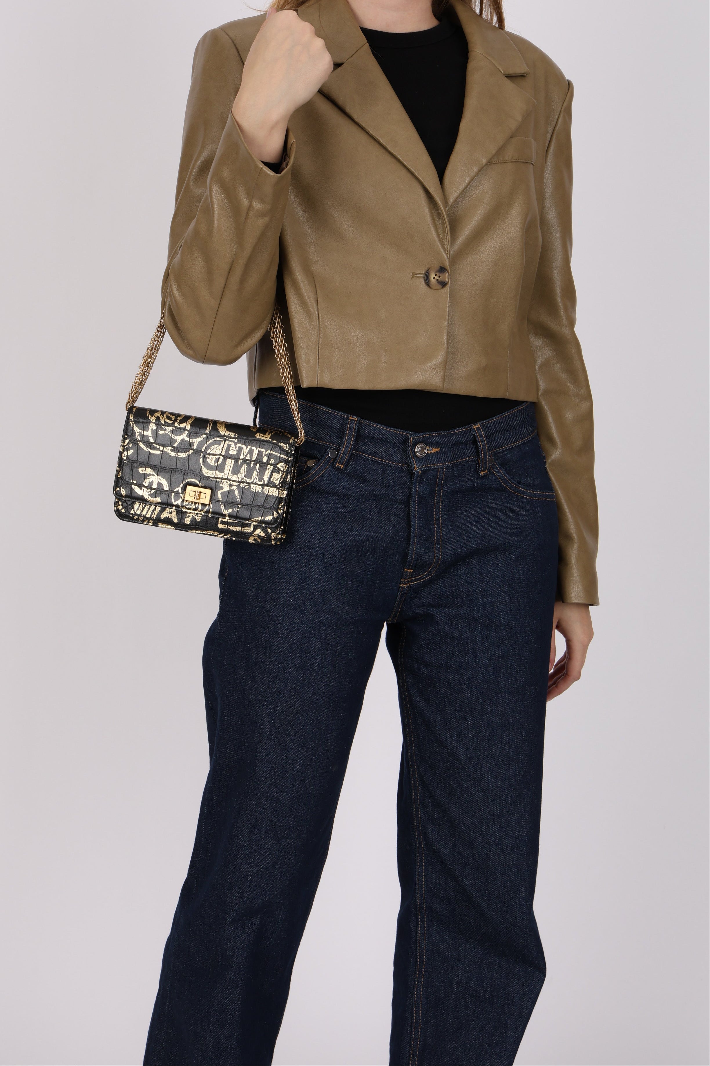 A bold twist on a Chanel classic, this Paris-New York Reissue Wallet on Chain pairs croc-embossed leather with striking metallic graffiti-style lettering. The signature turn-lock opens to a thoughtfully organized interior for your essentials, while the chain strap lets you wear it crossbody, on the shoulder, or as a clutch. It’s a statement piece that effortlessly blends Chanel heritage with a downtown edge.