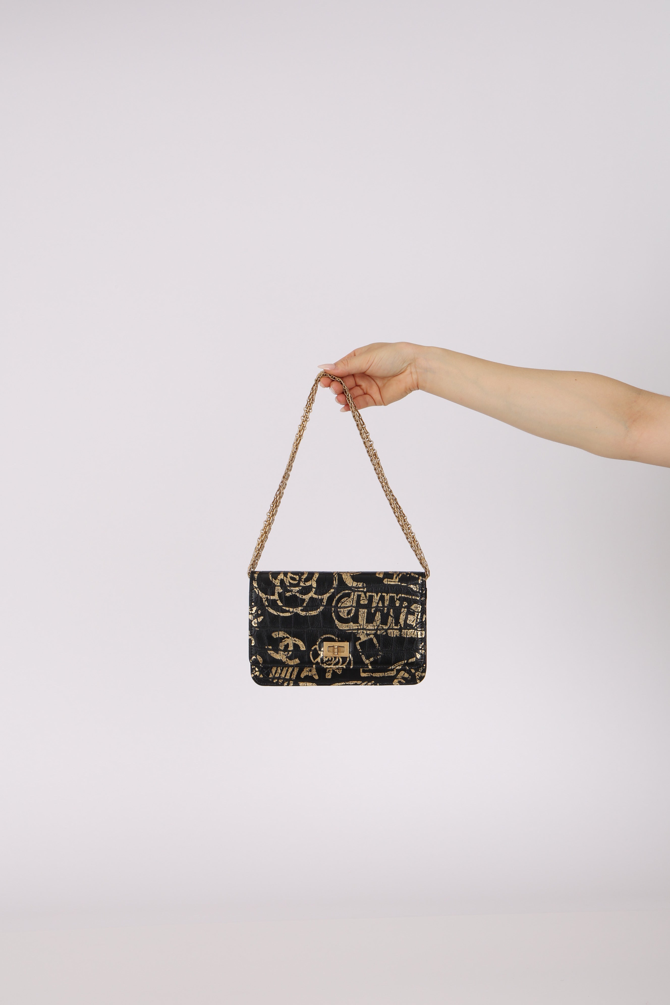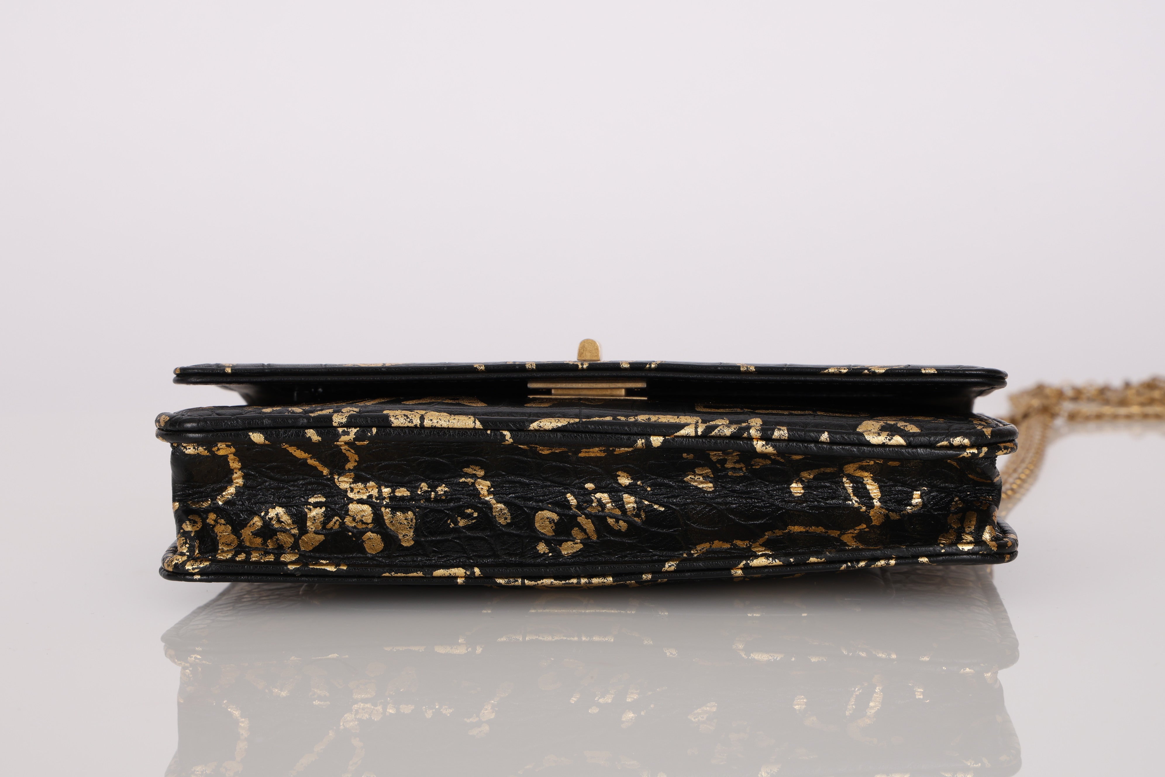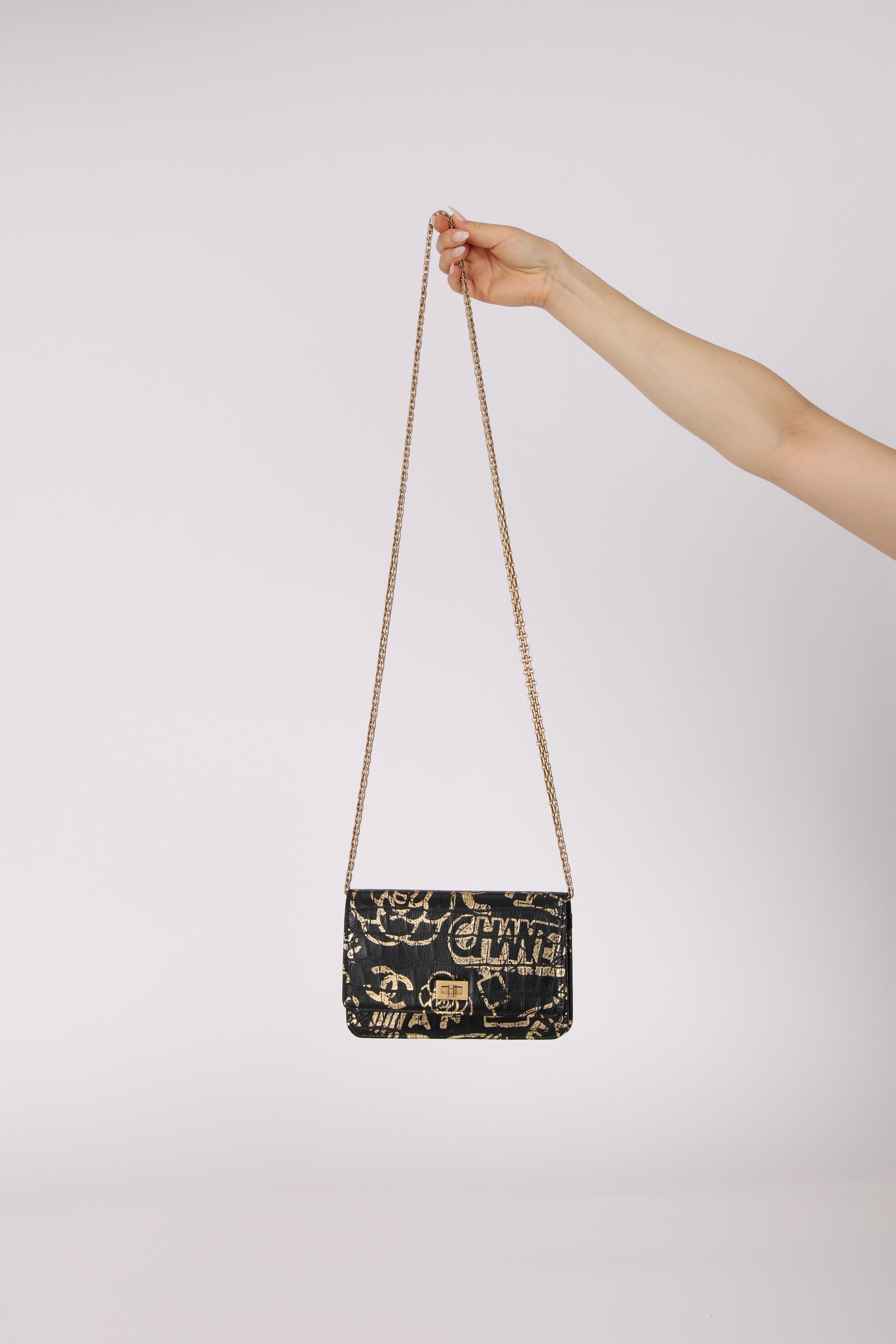 Limited Edition Chanel 2019 Paris-New York Croc Embossed Graffiti Reissue Wallet on Chain