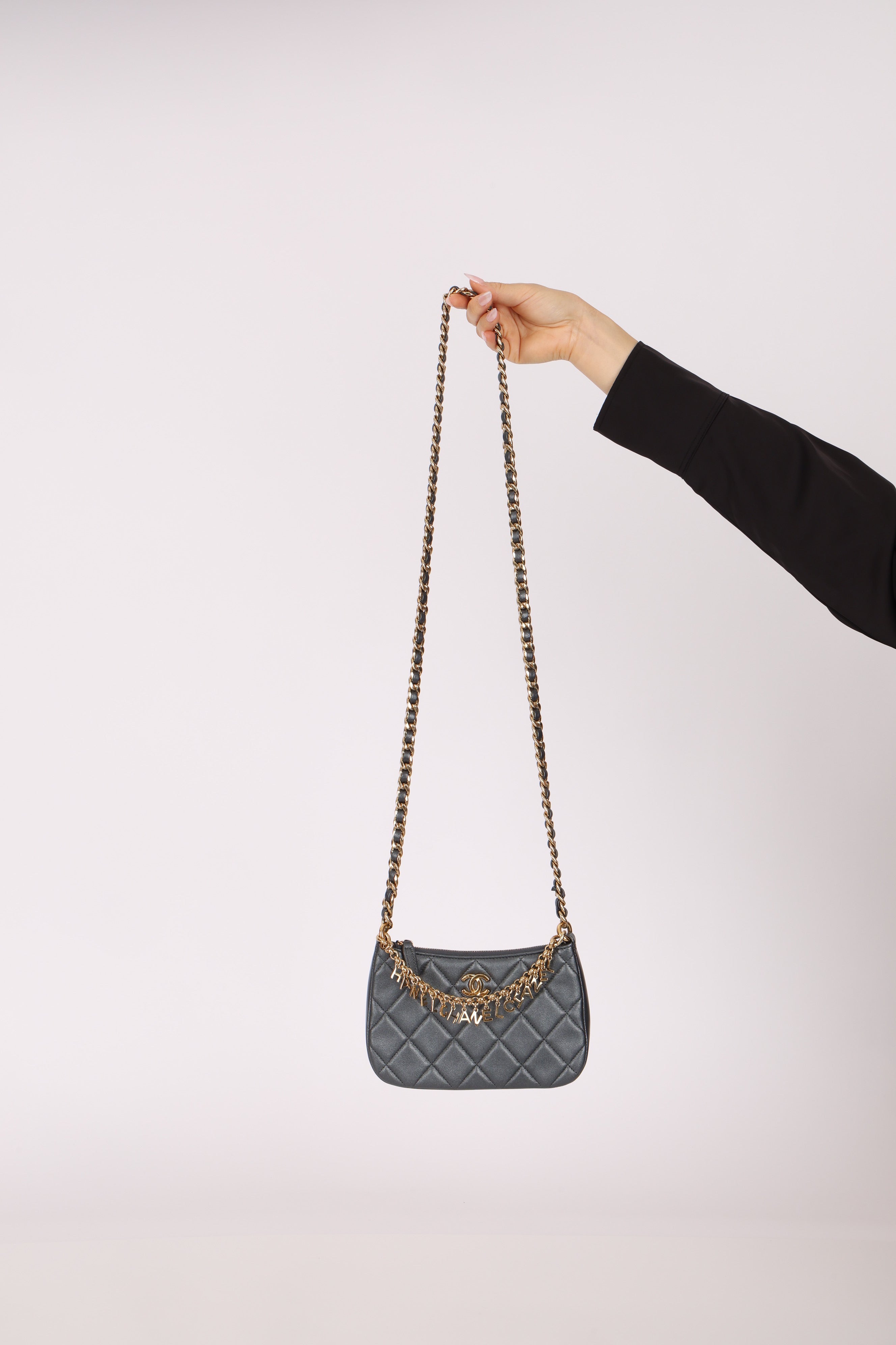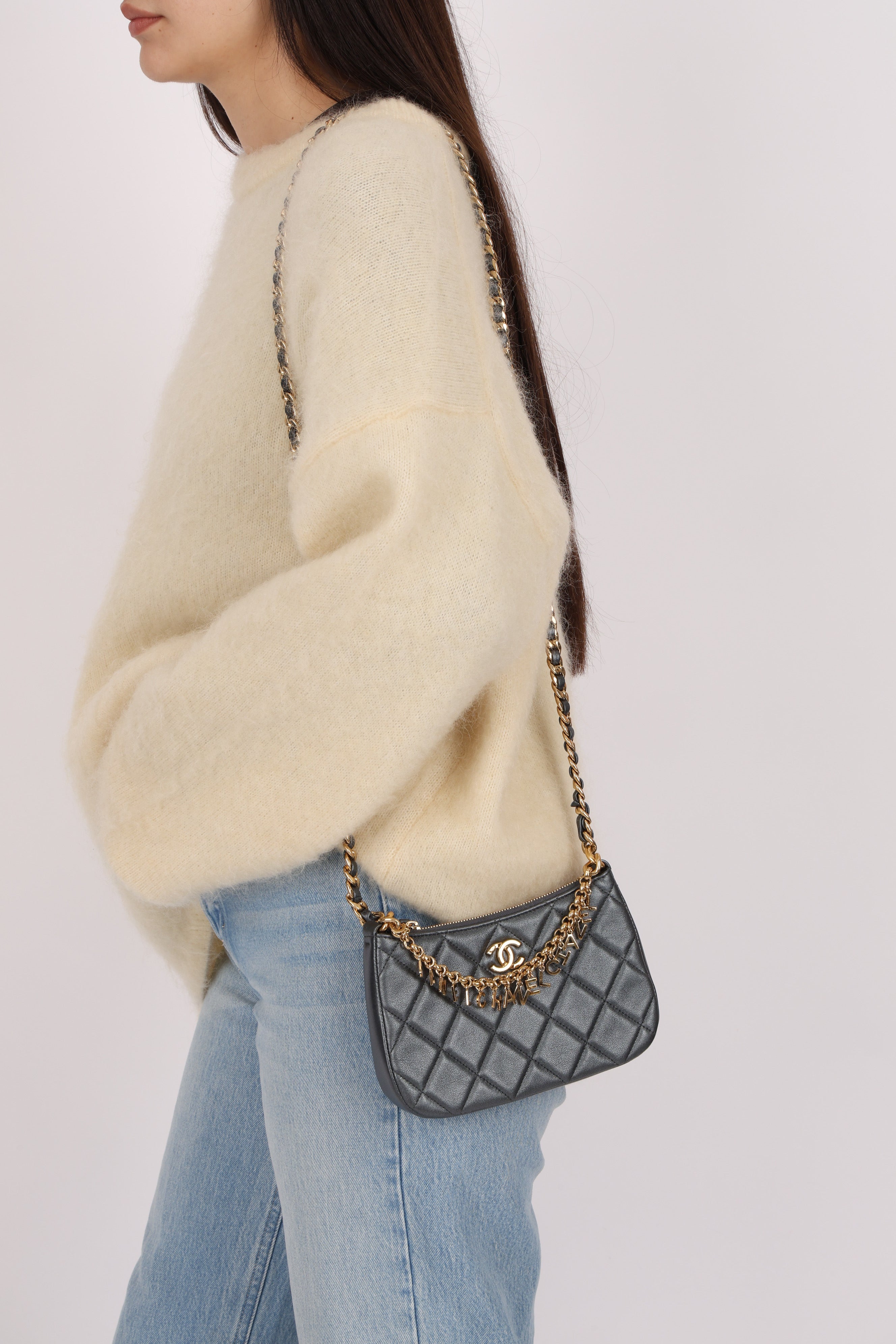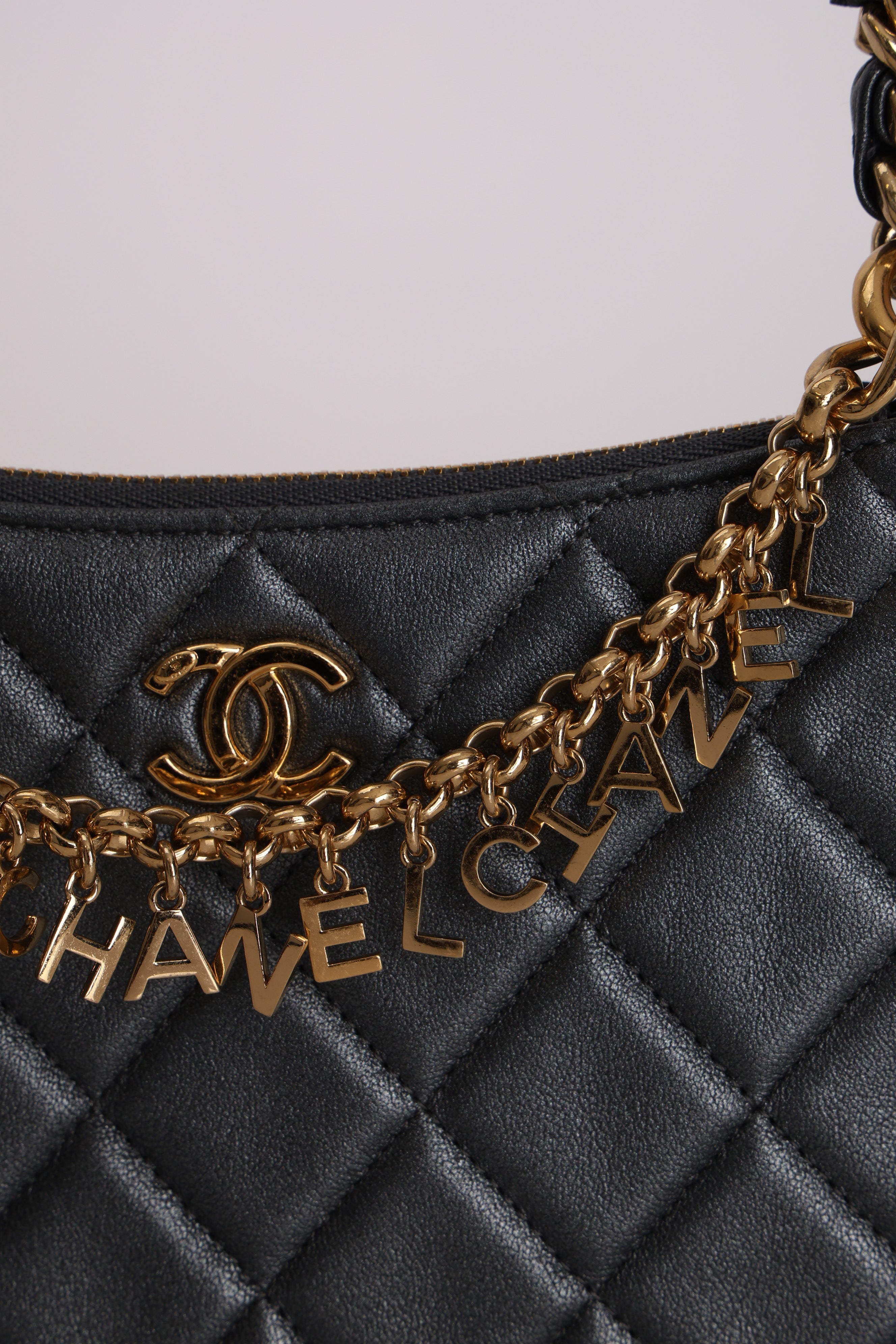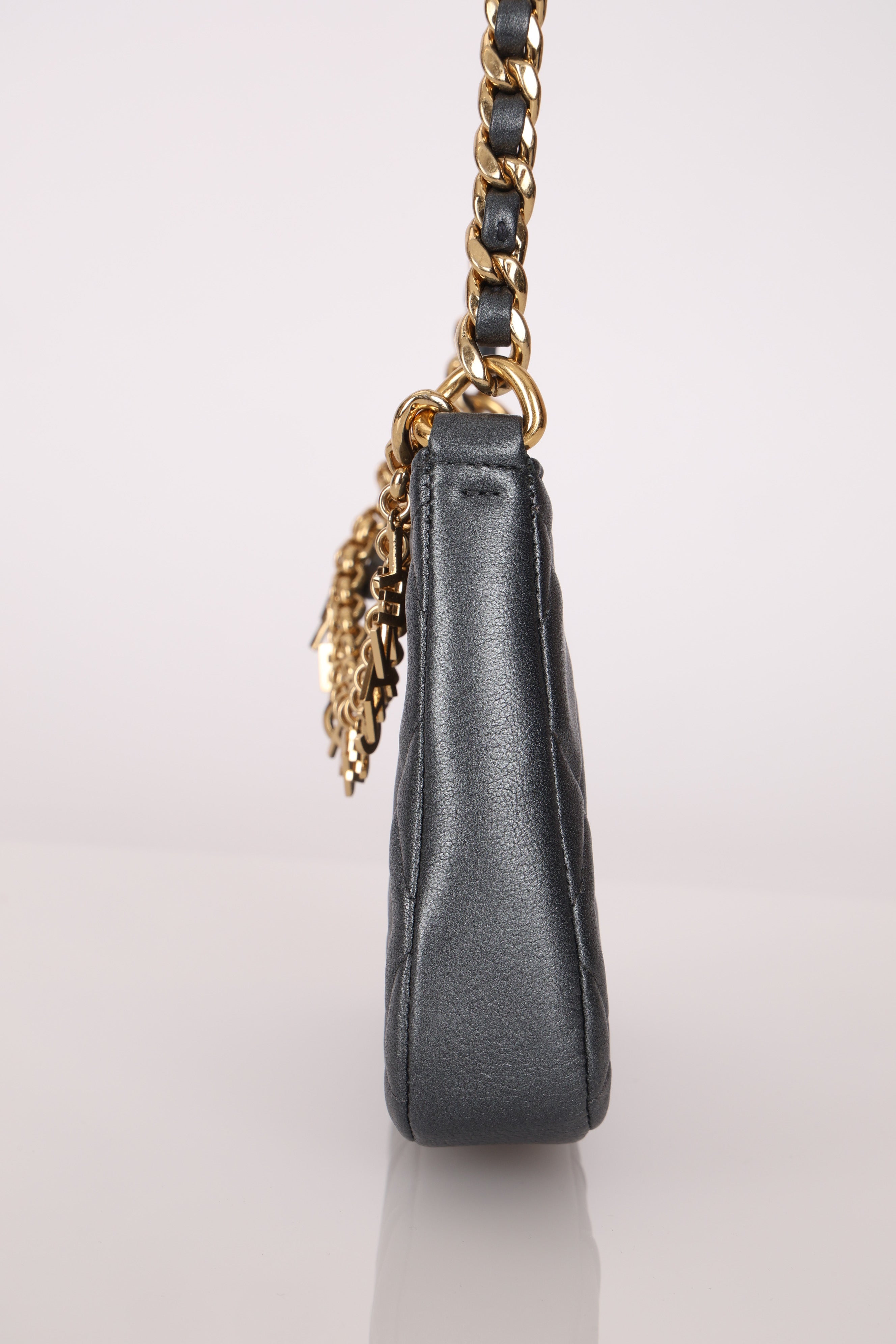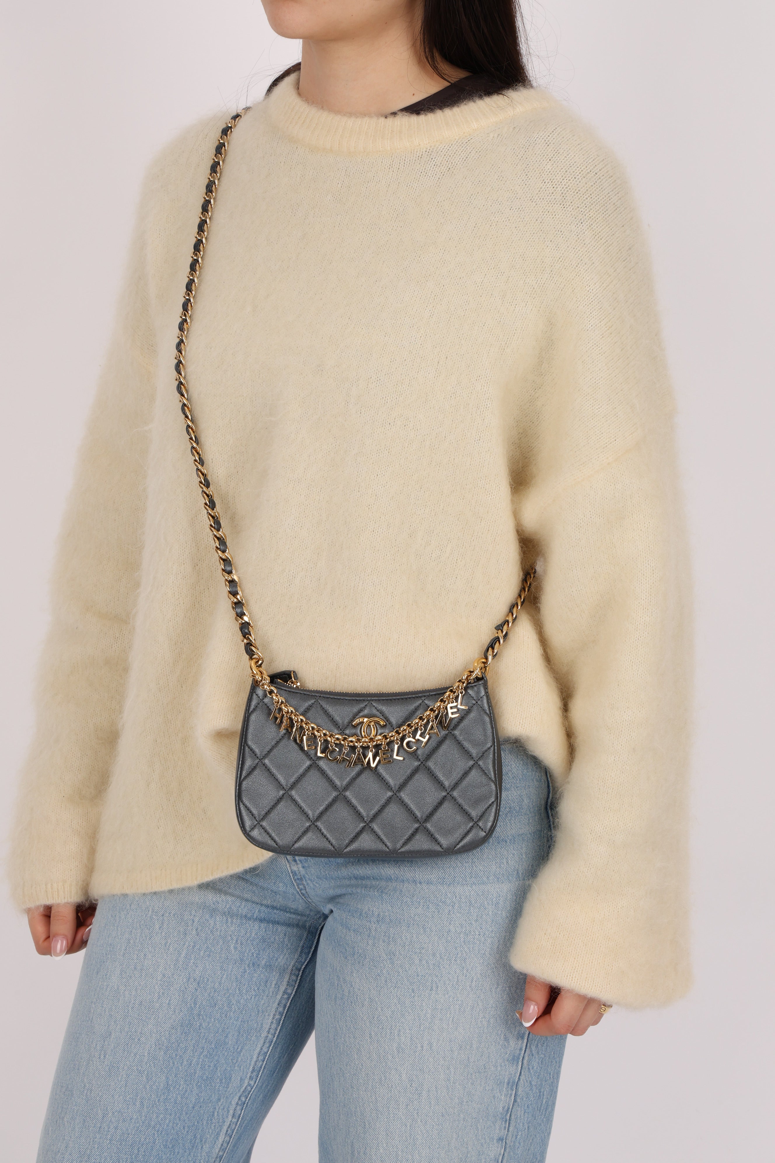 Chanel 2021 Metallic Logo Charms Quilted Pochette