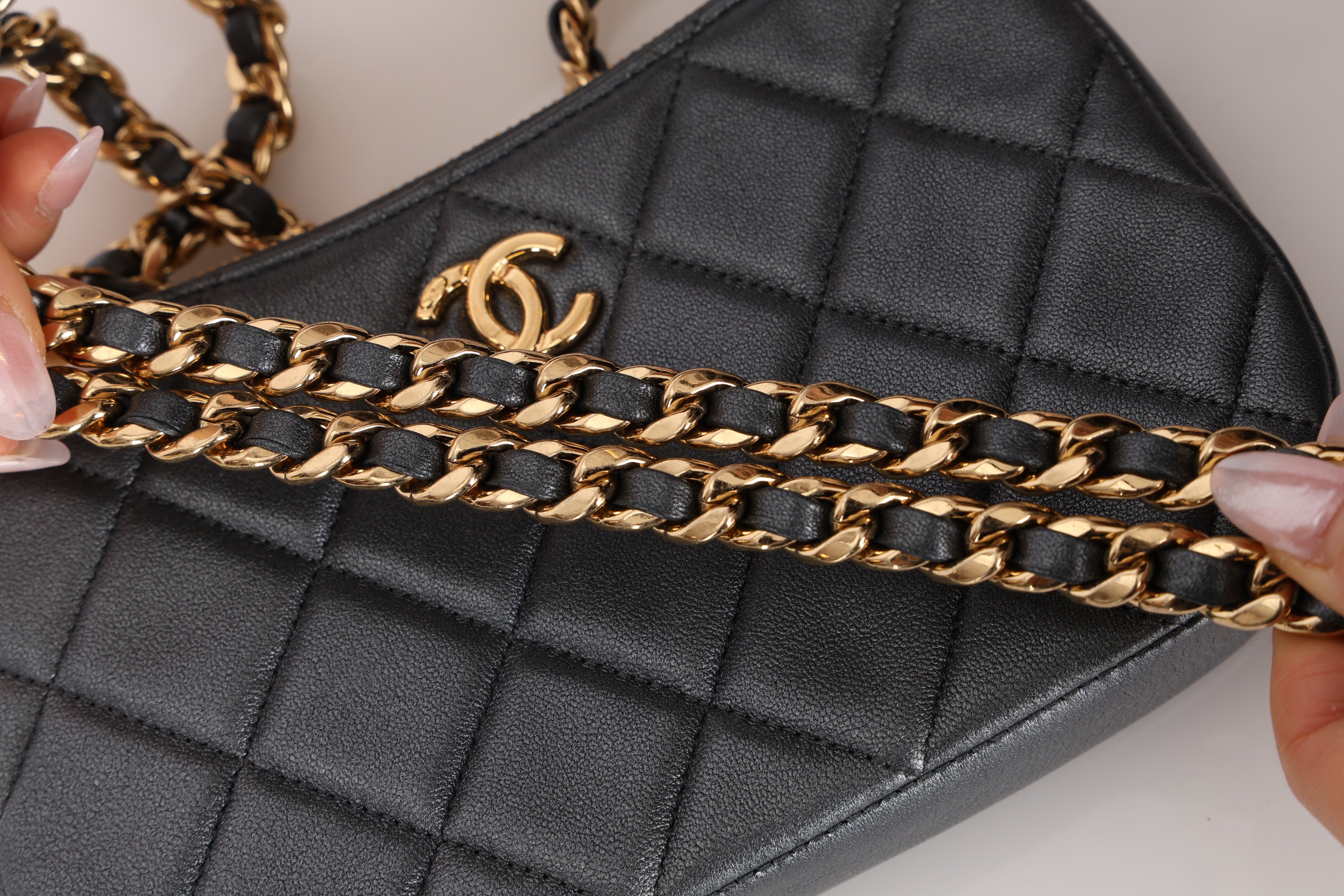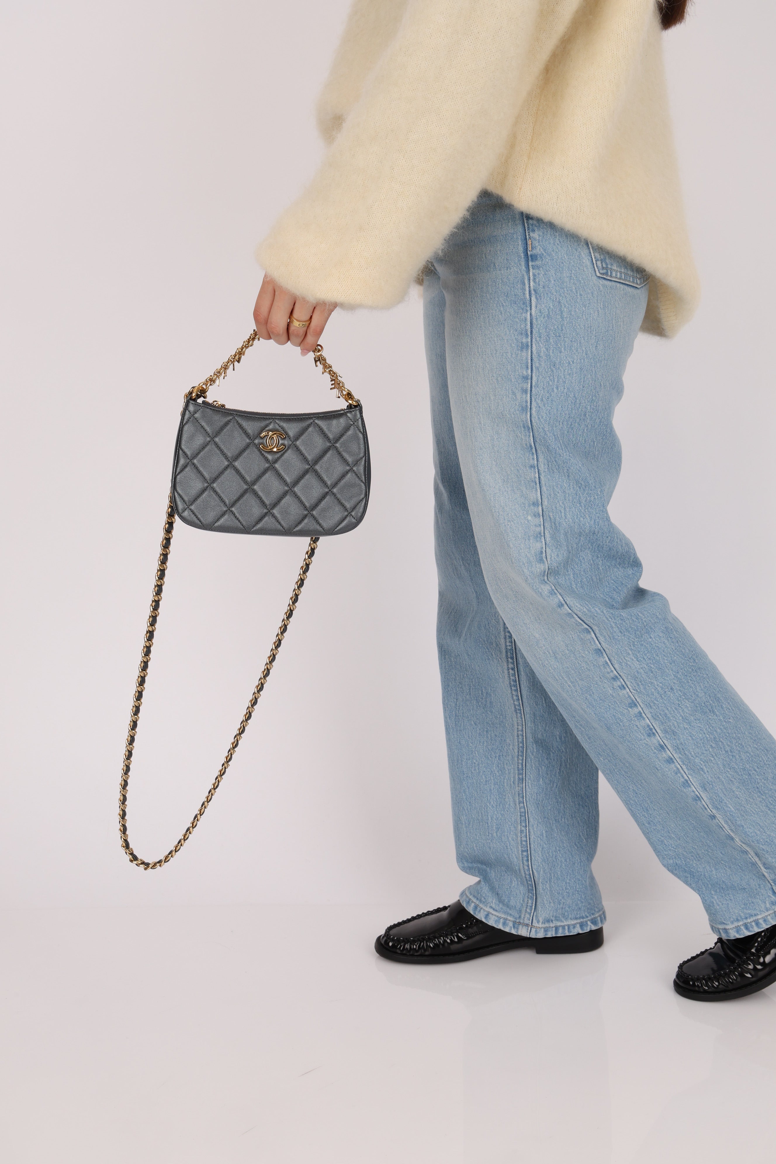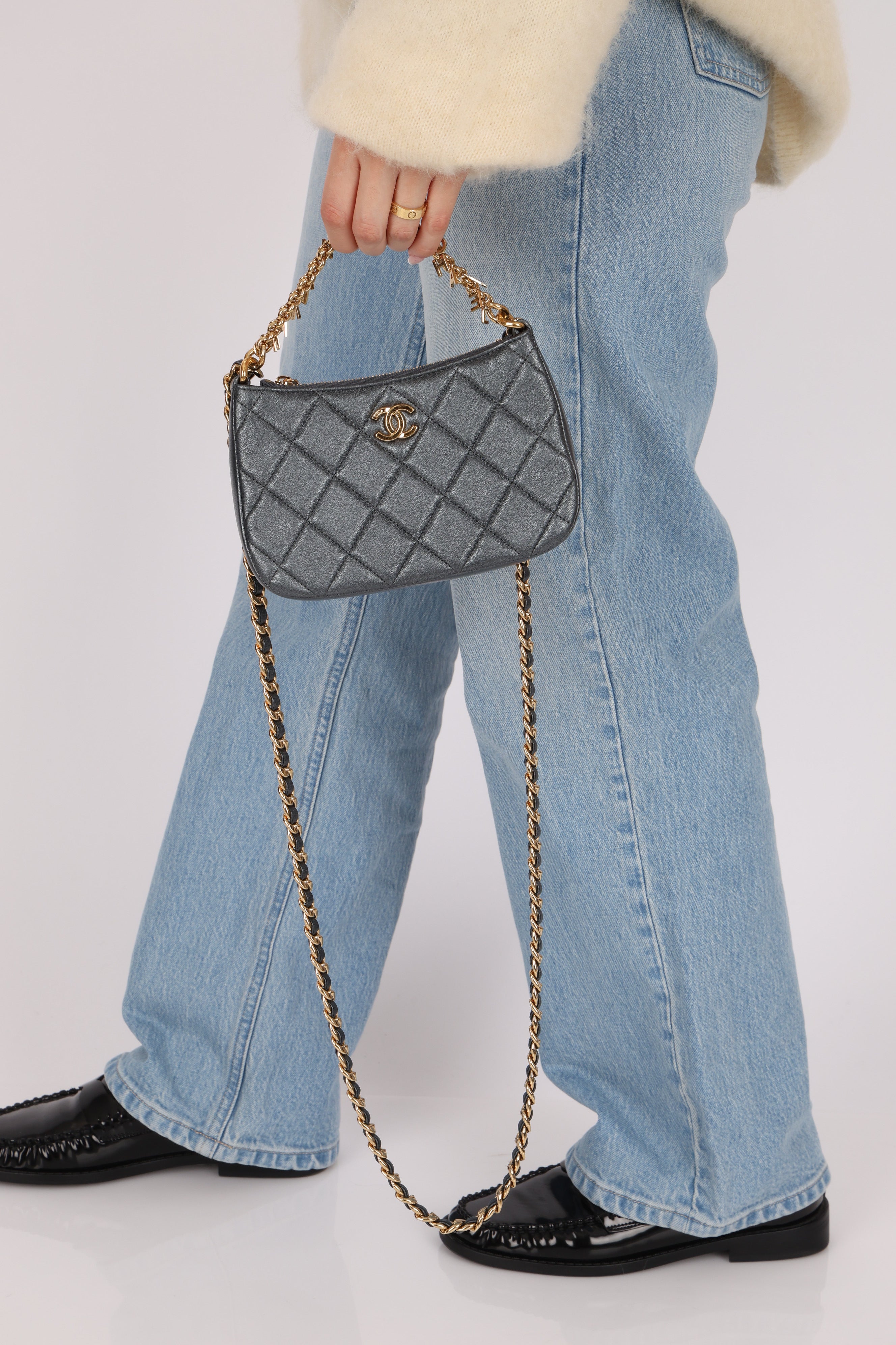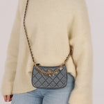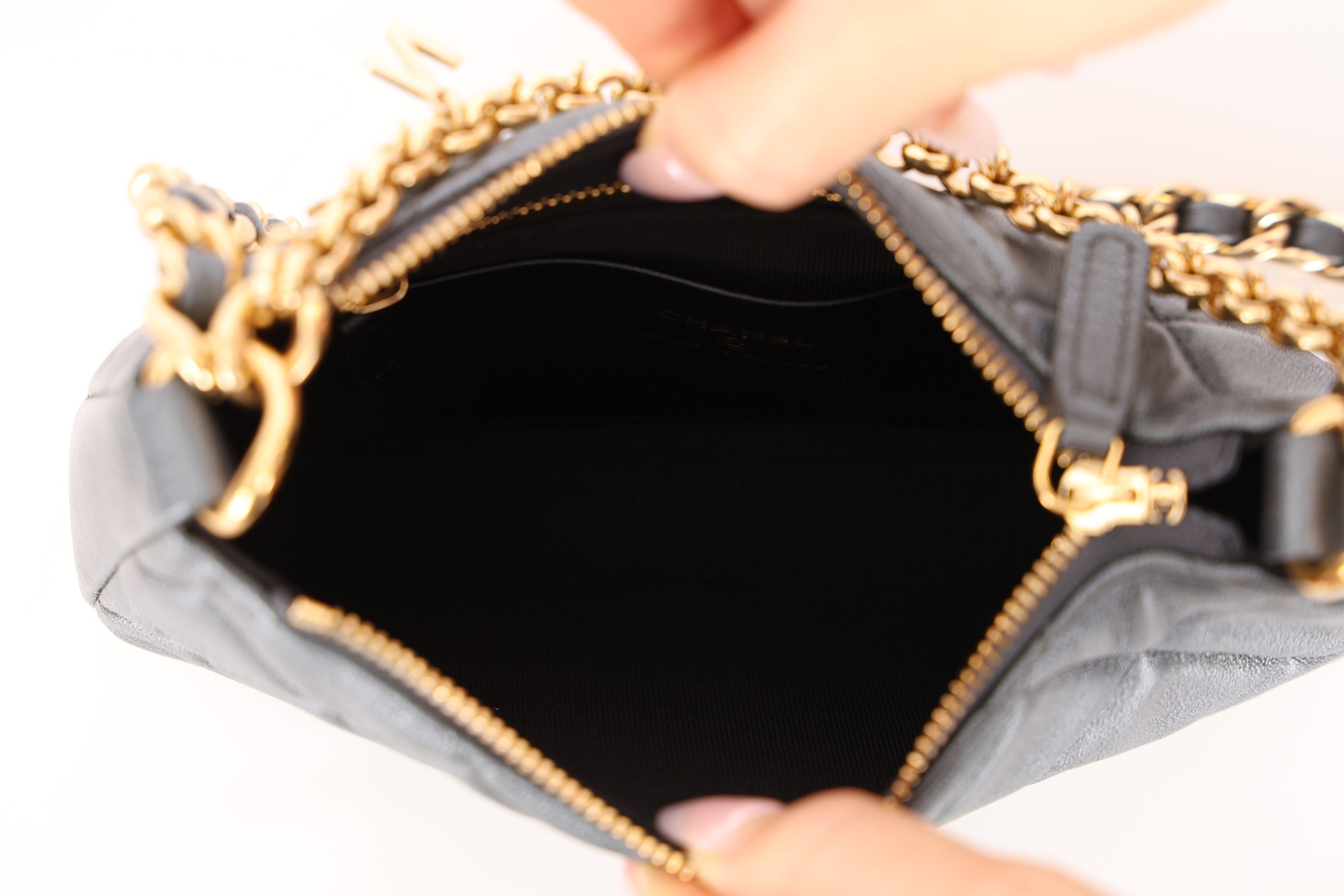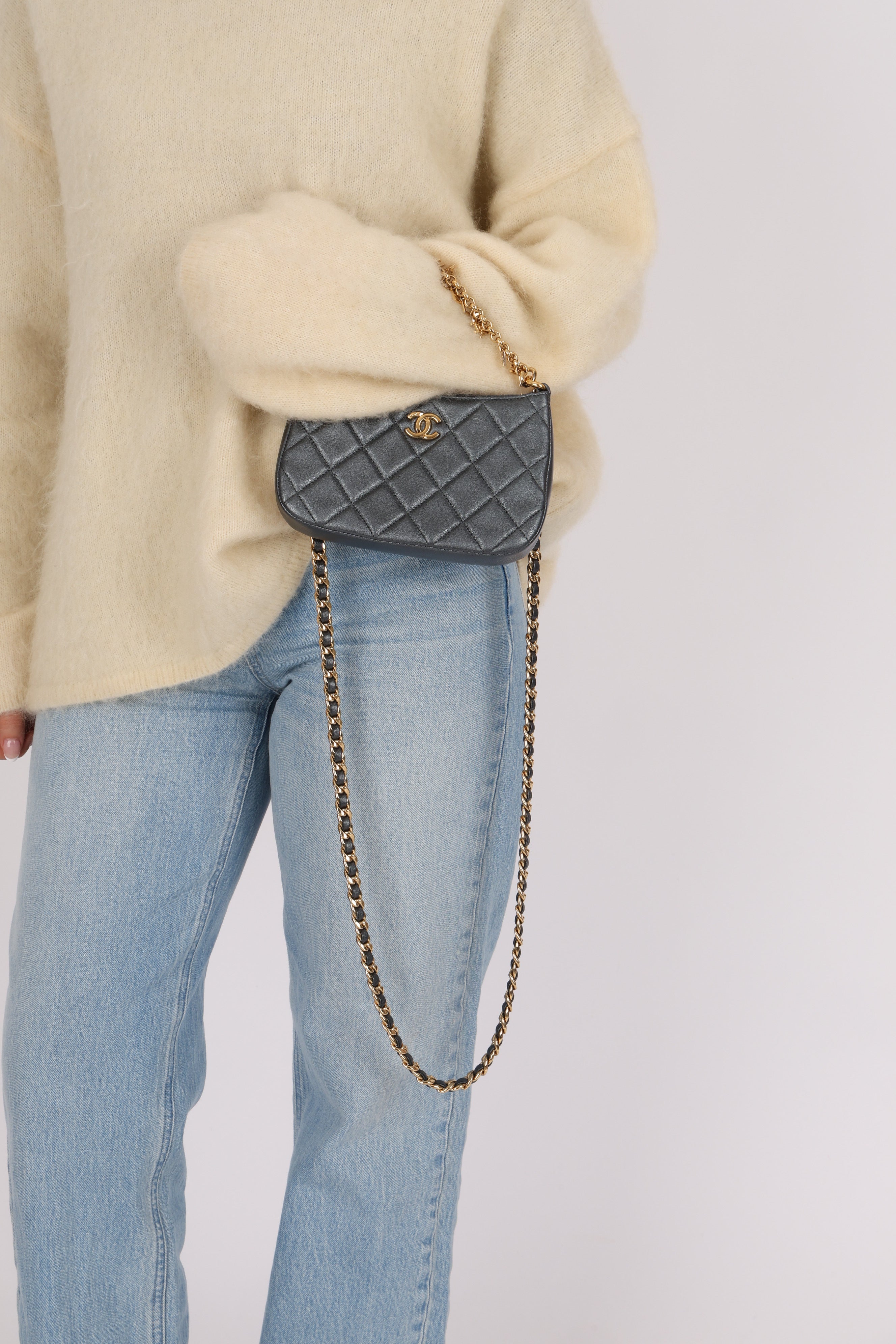 Chanel 2021 Metallic Logo Charms Quilted Pochette