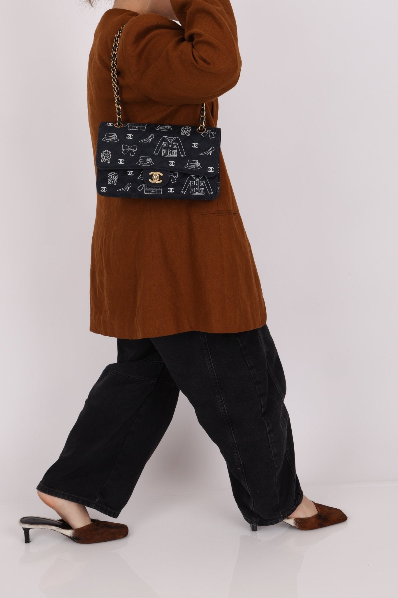 Ultra-Rare Chanel 2002 Canvas Icons Classic Medium Double Flap