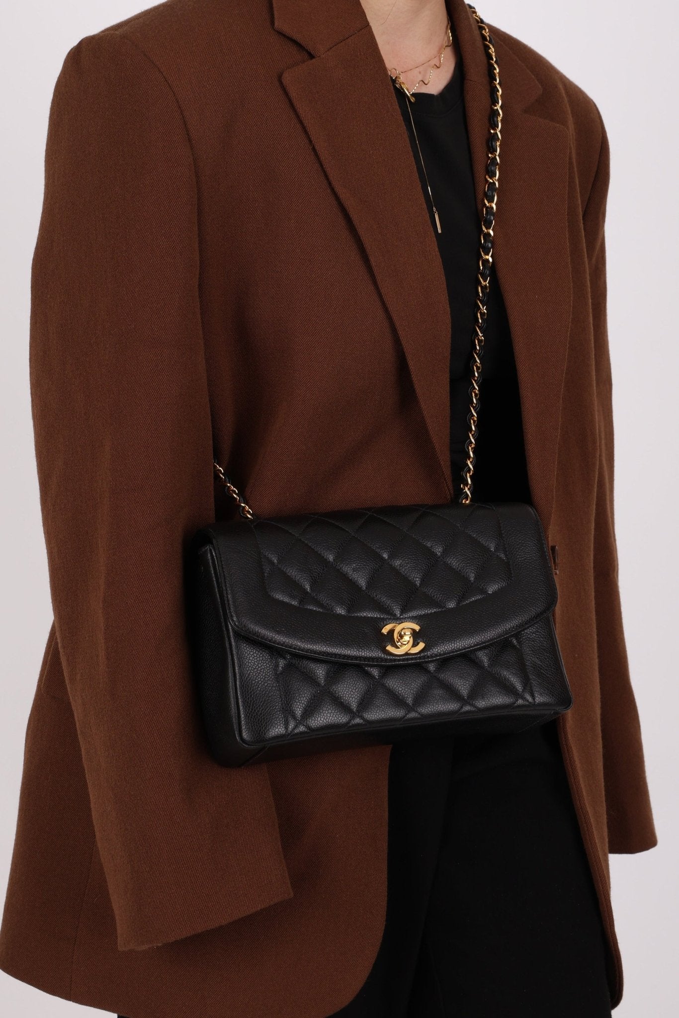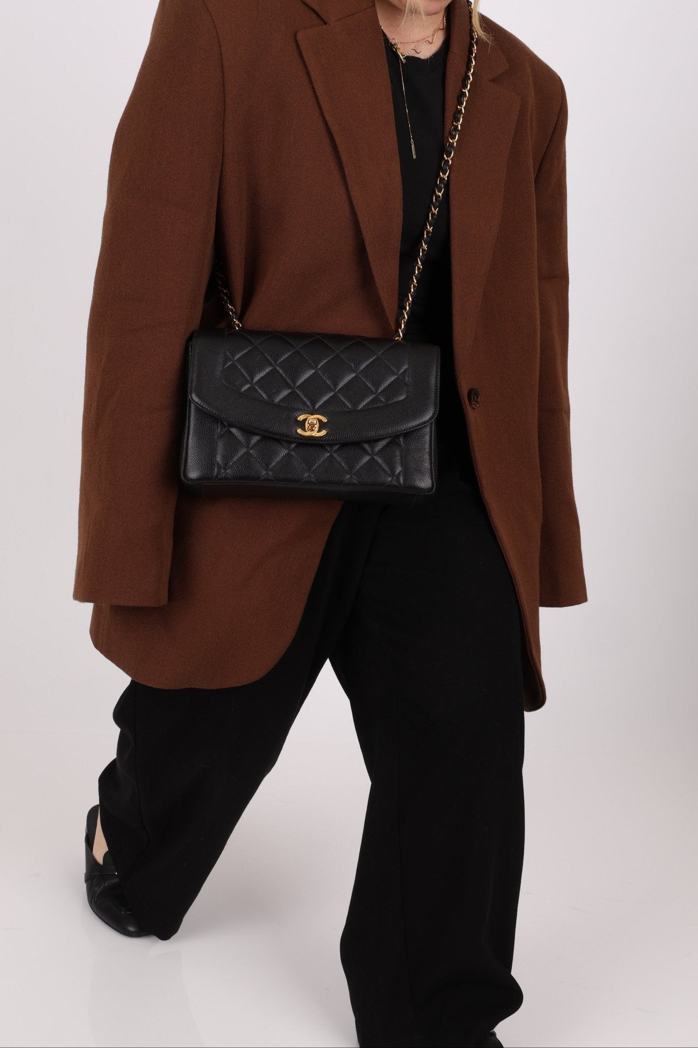 Named after one of the most iconic woman in history, this Chanel truly carries on the history and elegance of Princess Diana. Made rare by being crafted from durable black caviar leather, it's perfect for any occasion, while the signature Chanel diamond quilted pattern adds a touch of luxury and elegance.