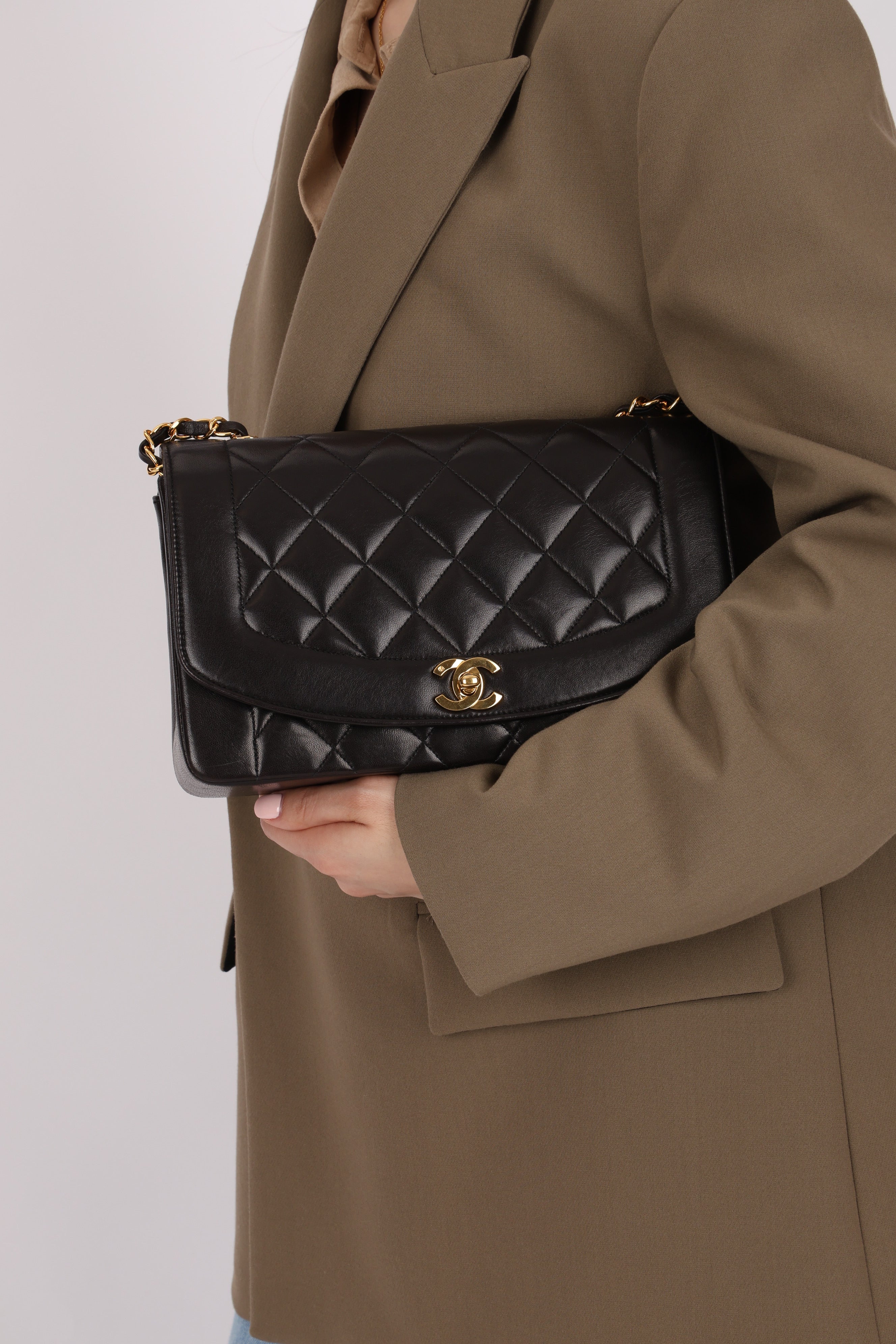 Named after one of the most iconic woman in history, this Chanel truly carries on the history and elegance of Princess Diana. Crafted from the finest black lambskin leather, it's perfect for any occasion, while the signature Chanel diamond quilted pattern adds a touch of luxury and elegance.