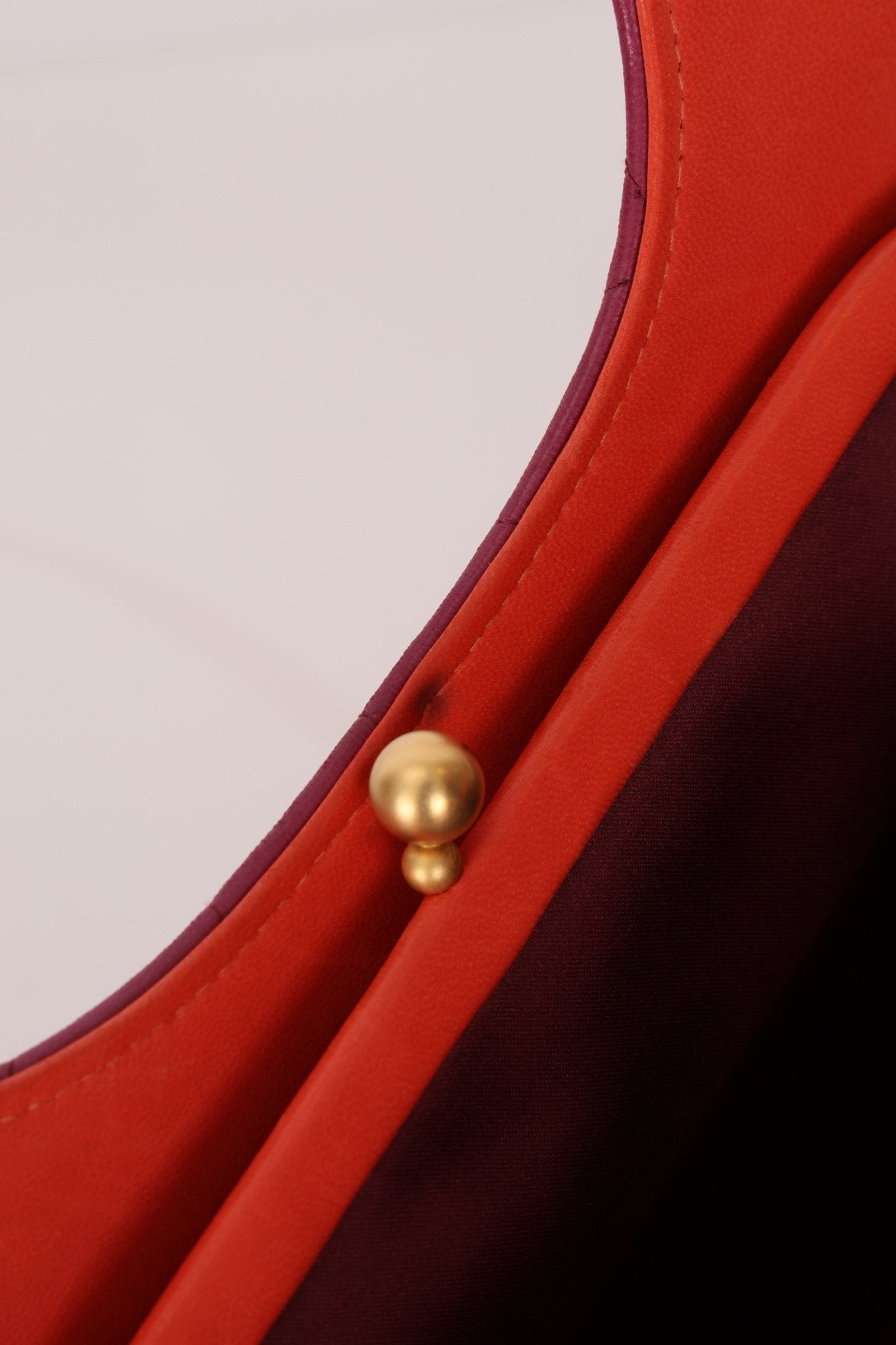 Normal wear throughout leather. Dark marks on exterior bottom and sides. Edge wear on handles.