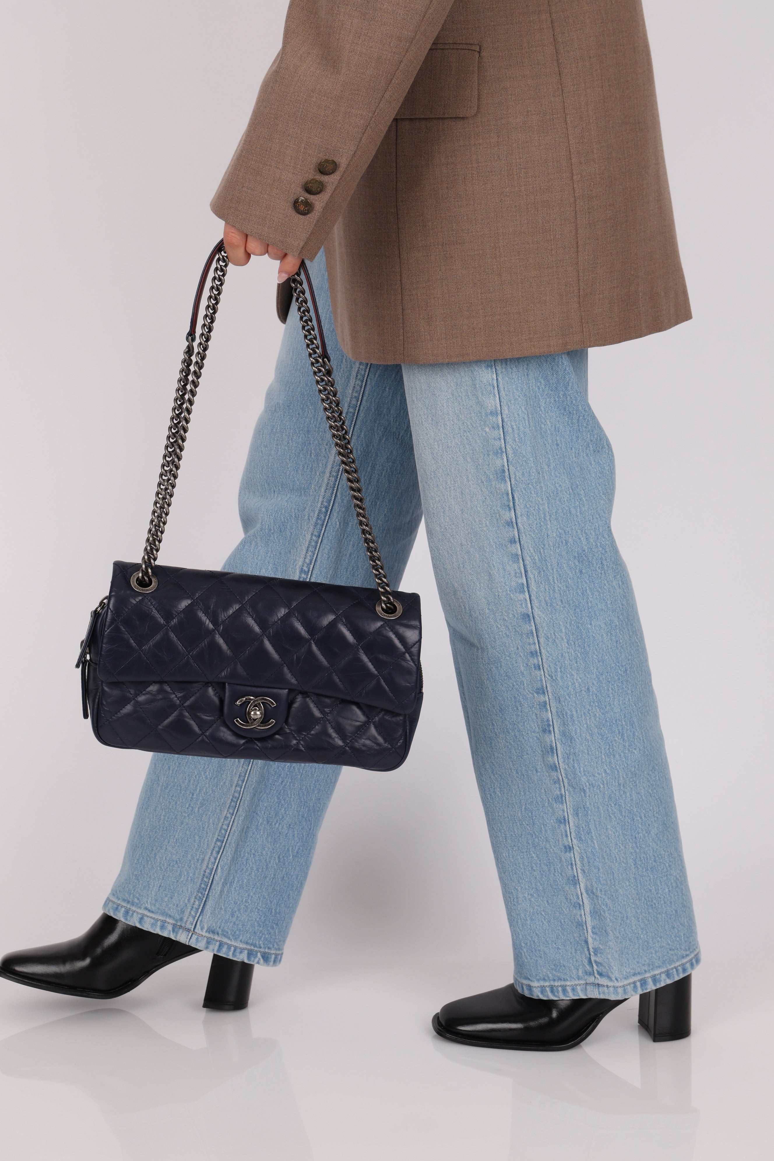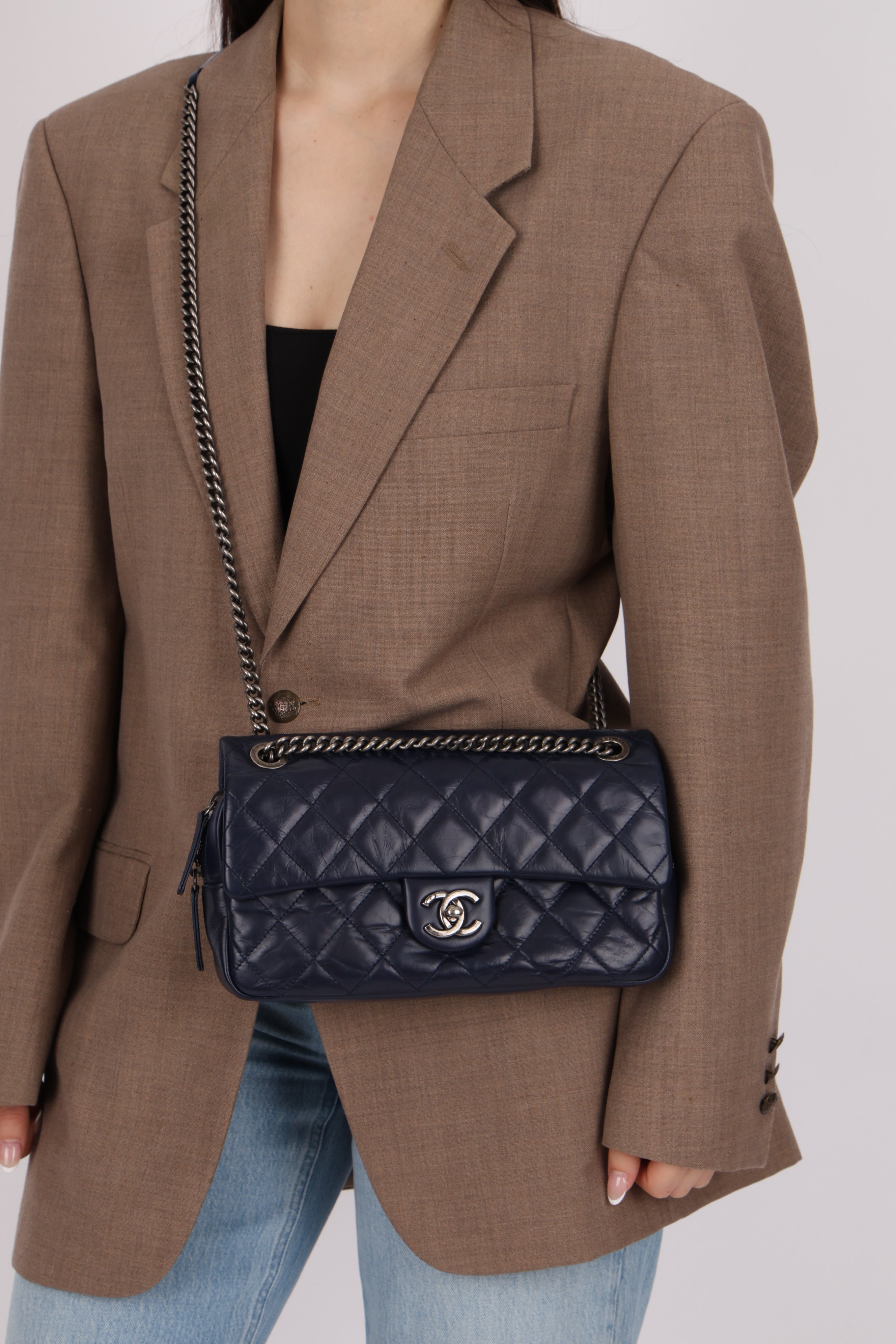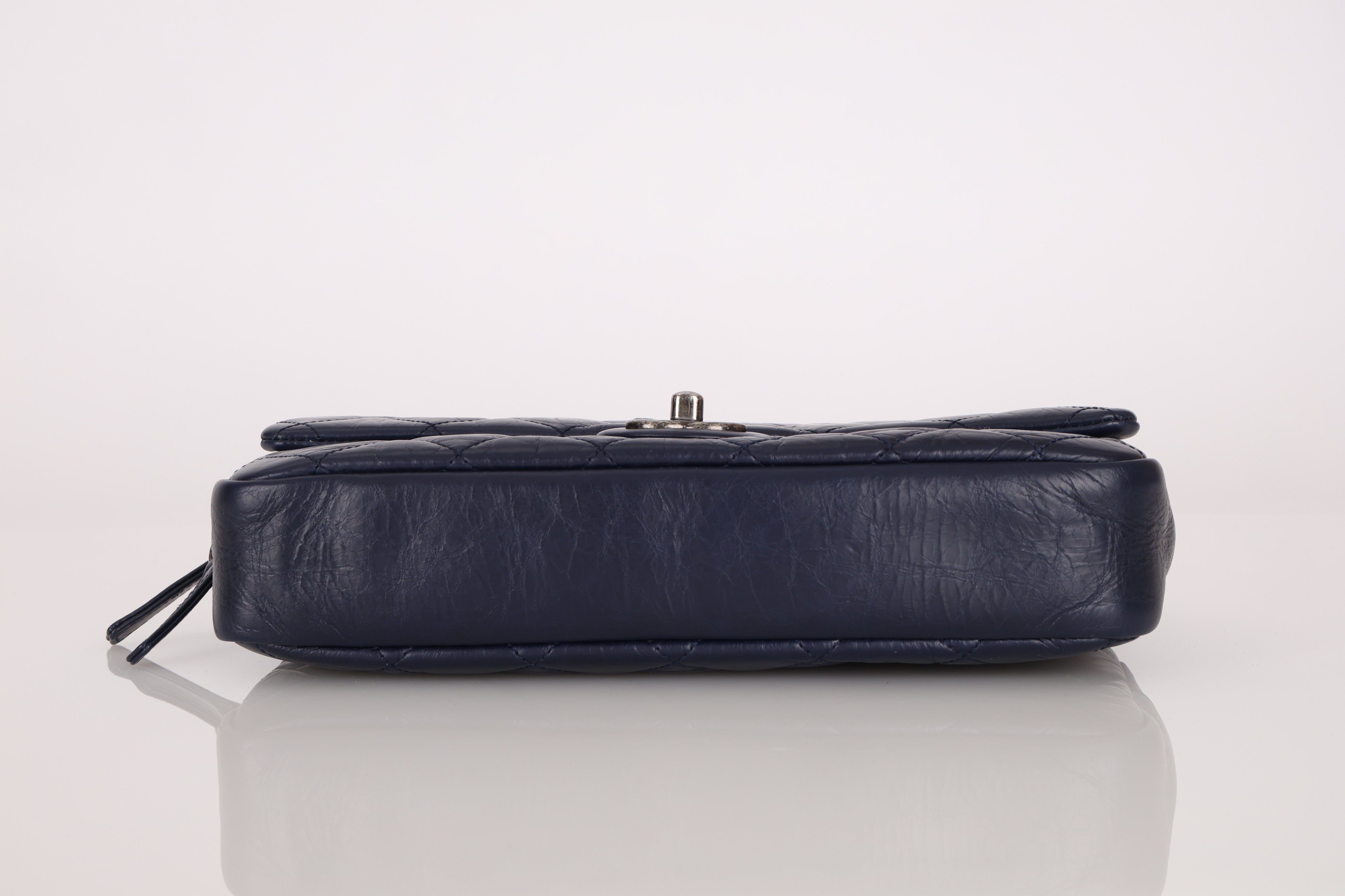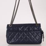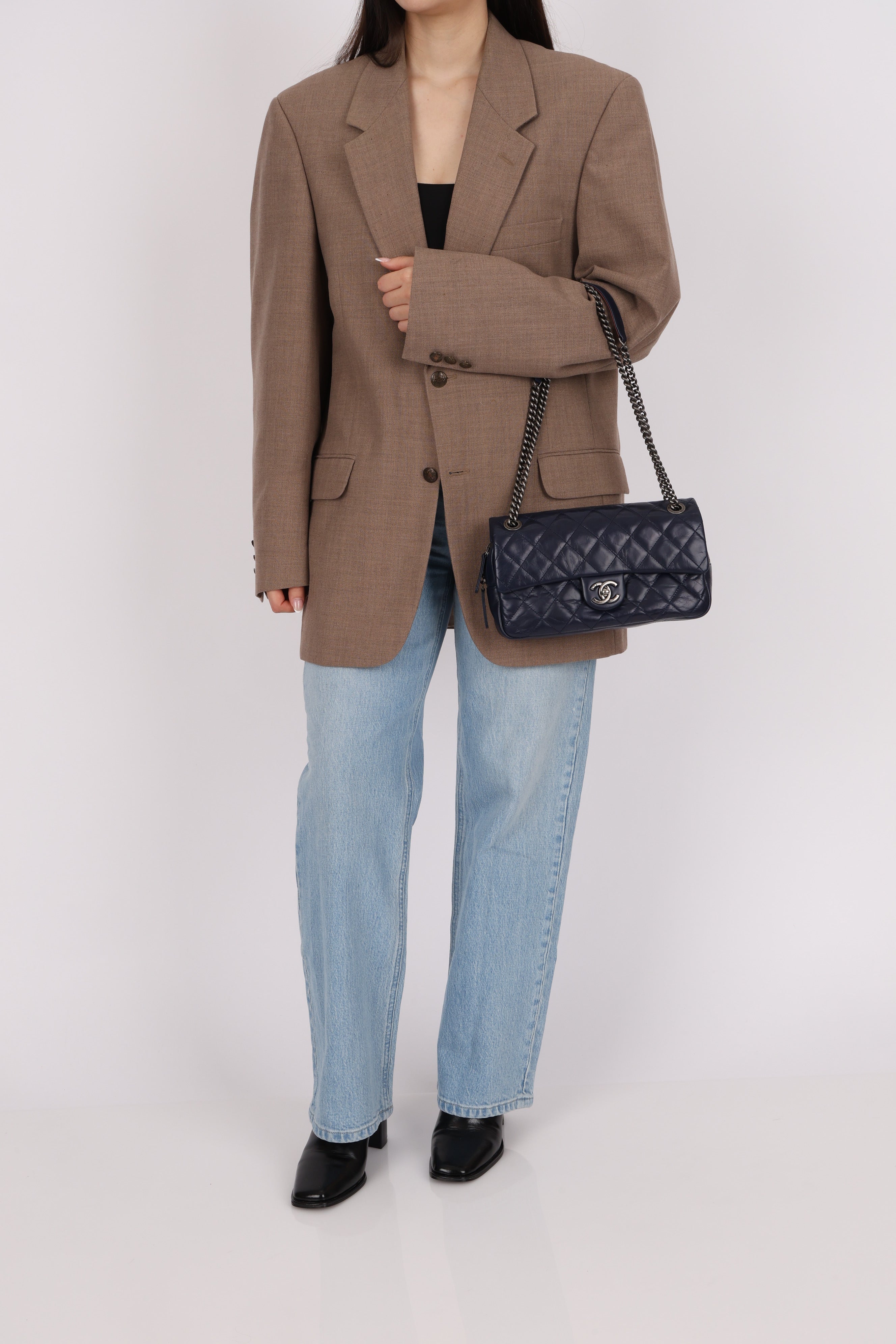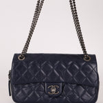 Chanel 2015 Navy Crinkled Calfskin Classic Medium Easy Flap Bag