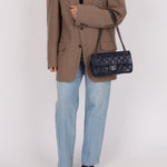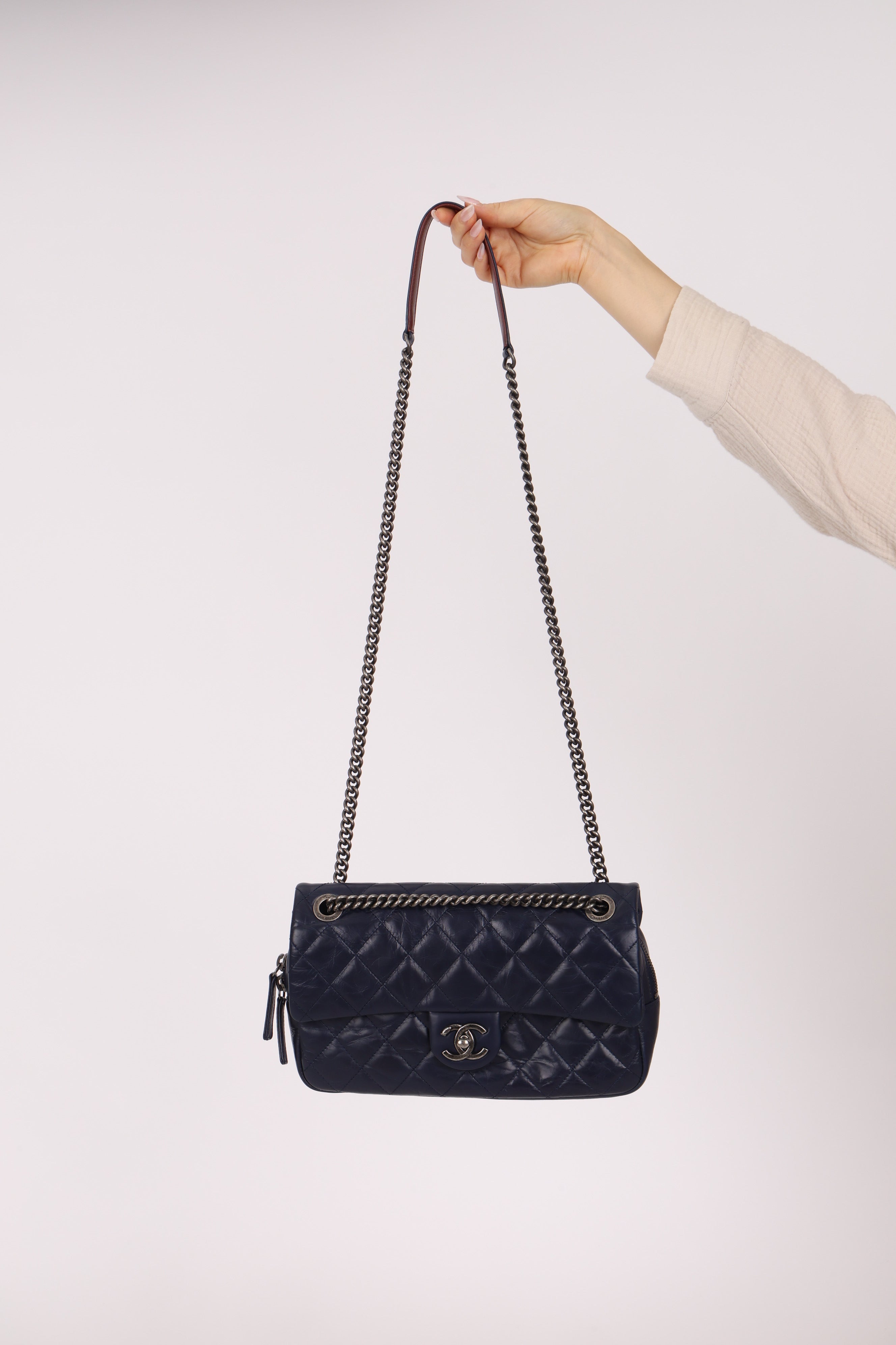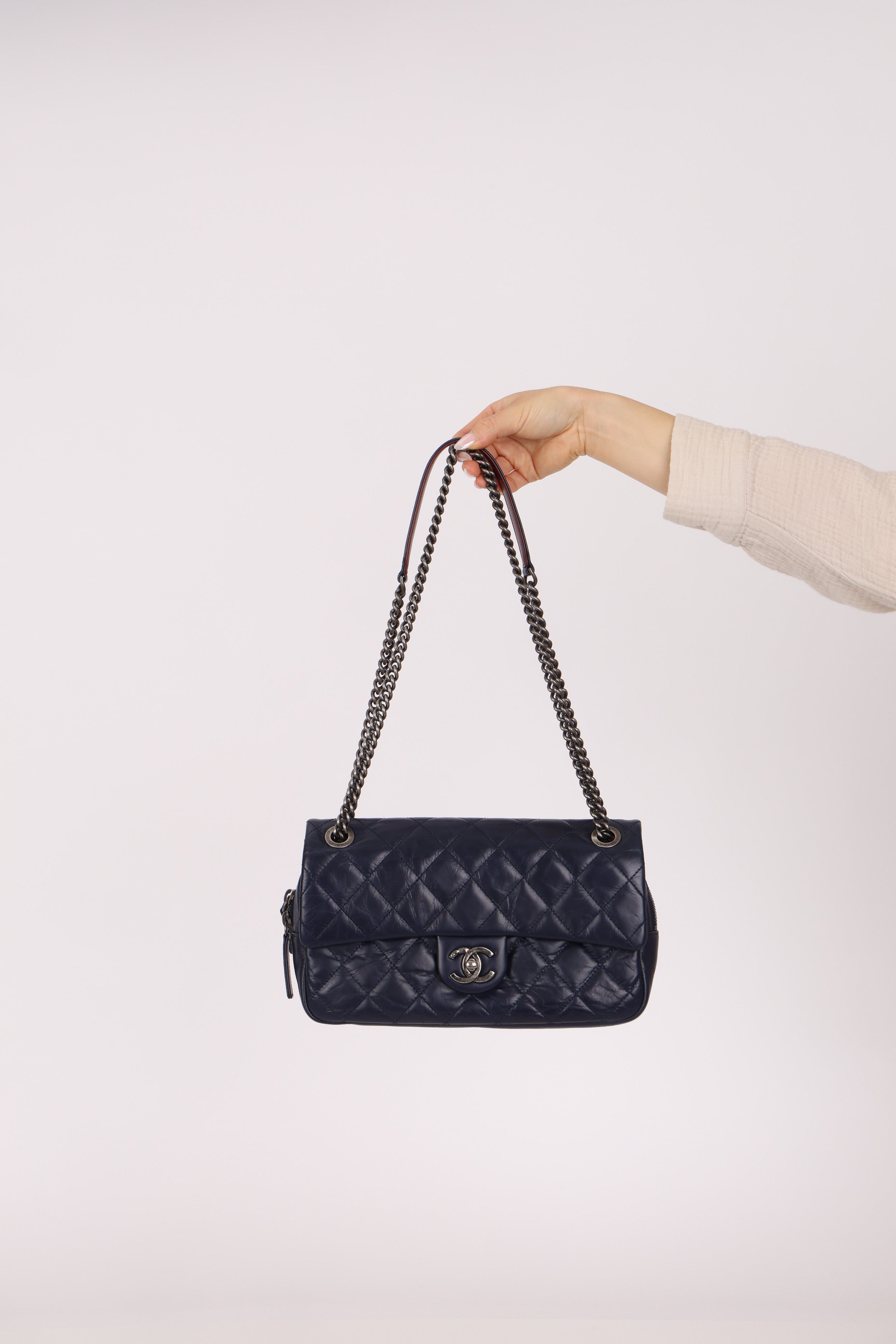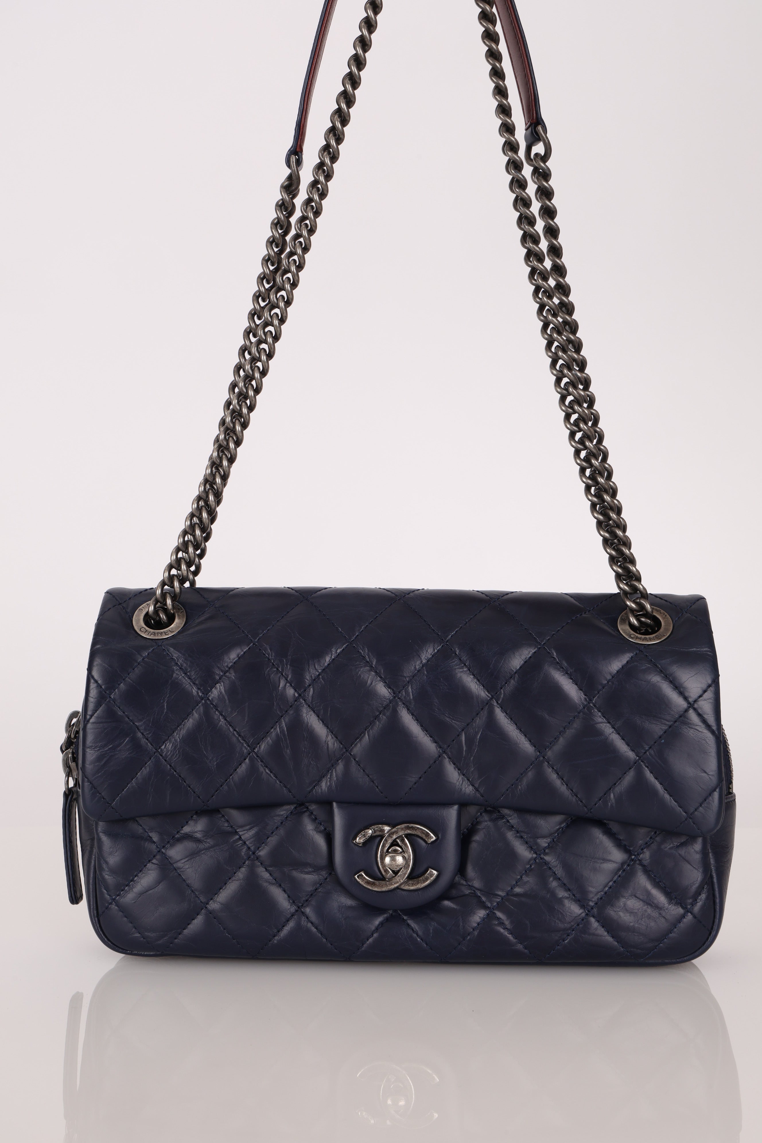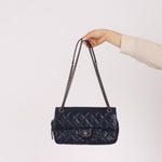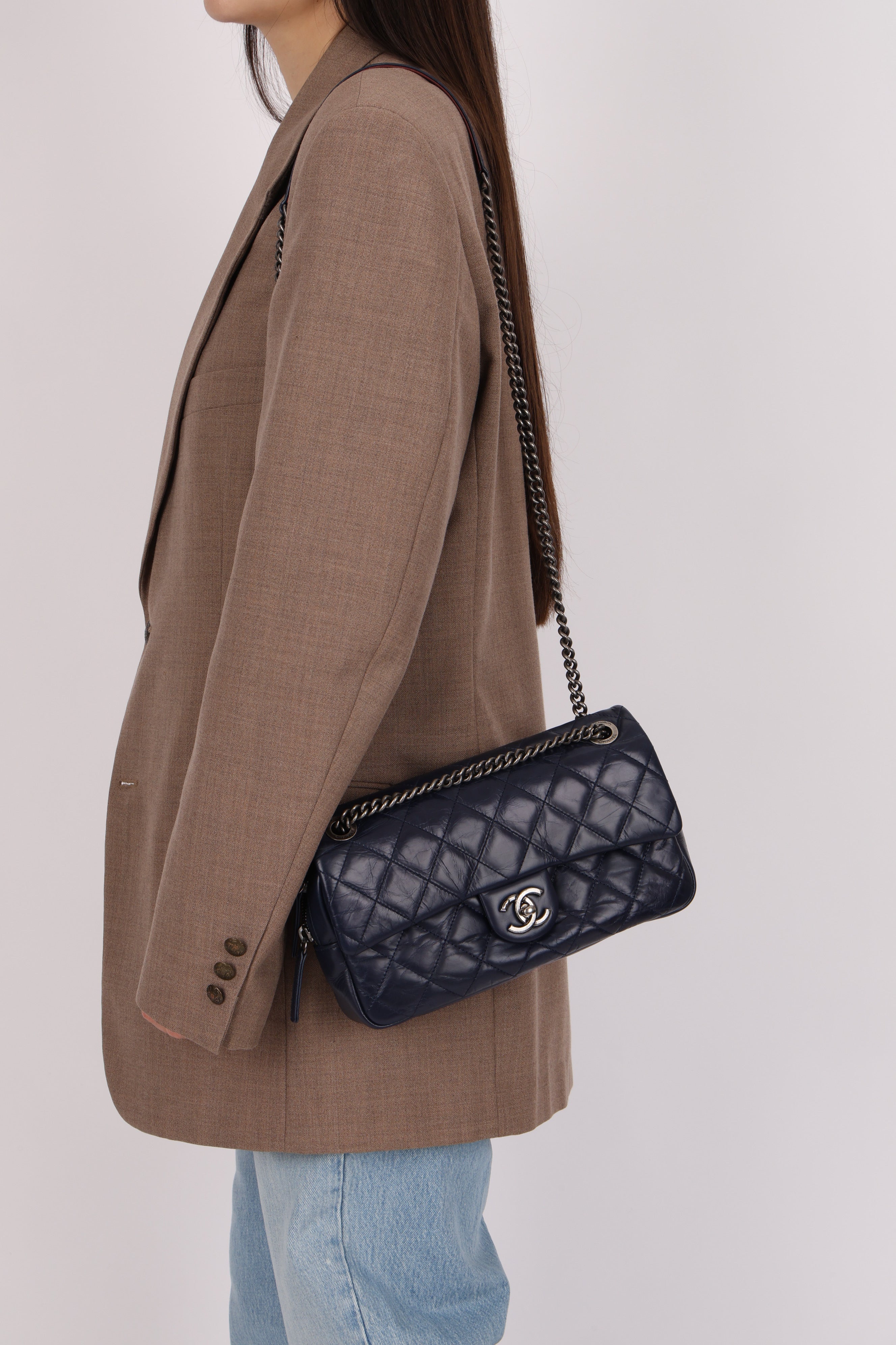Chanel 2015 Navy Crinkled Calfskin Classic Medium Easy Flap Bag