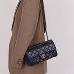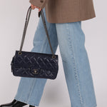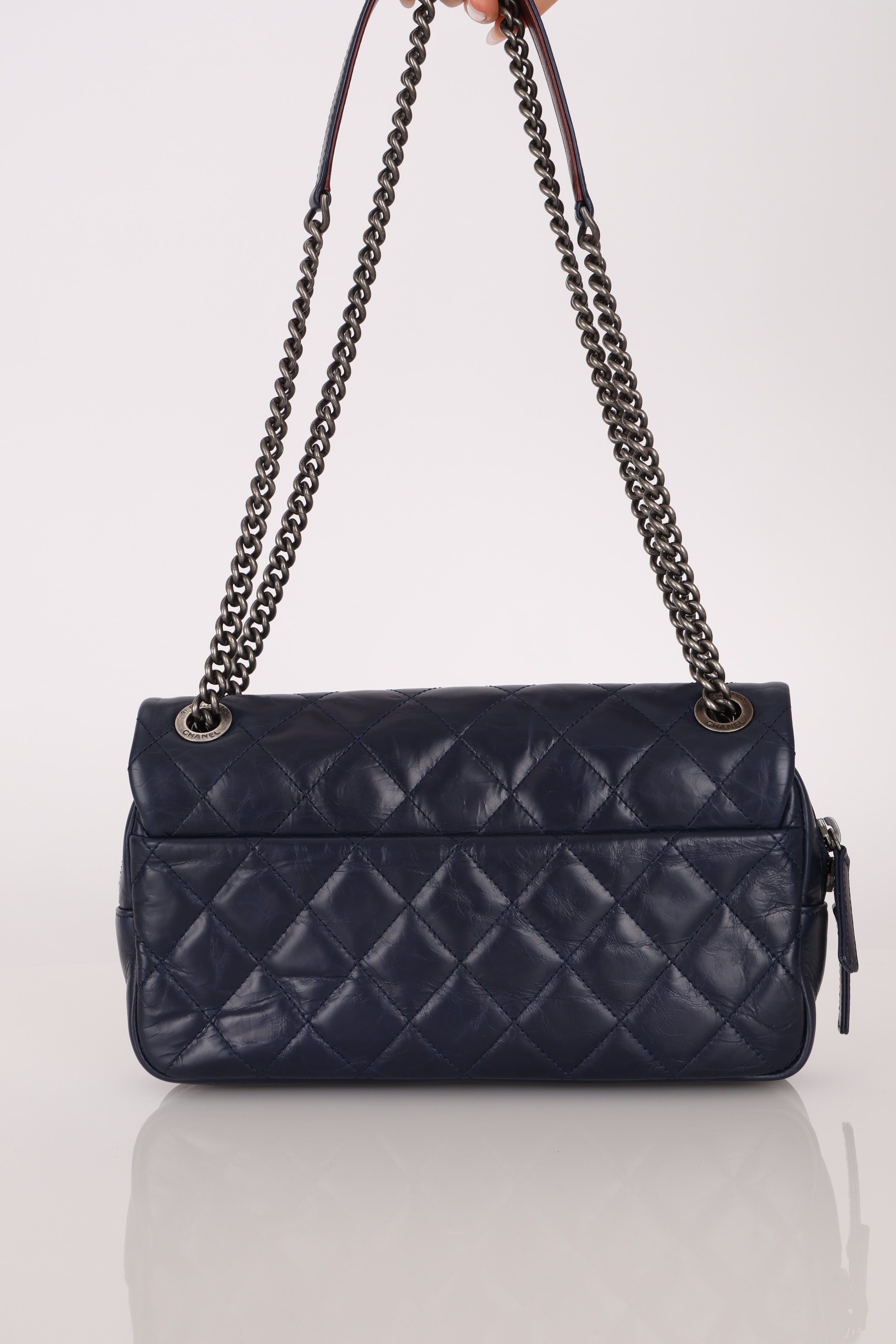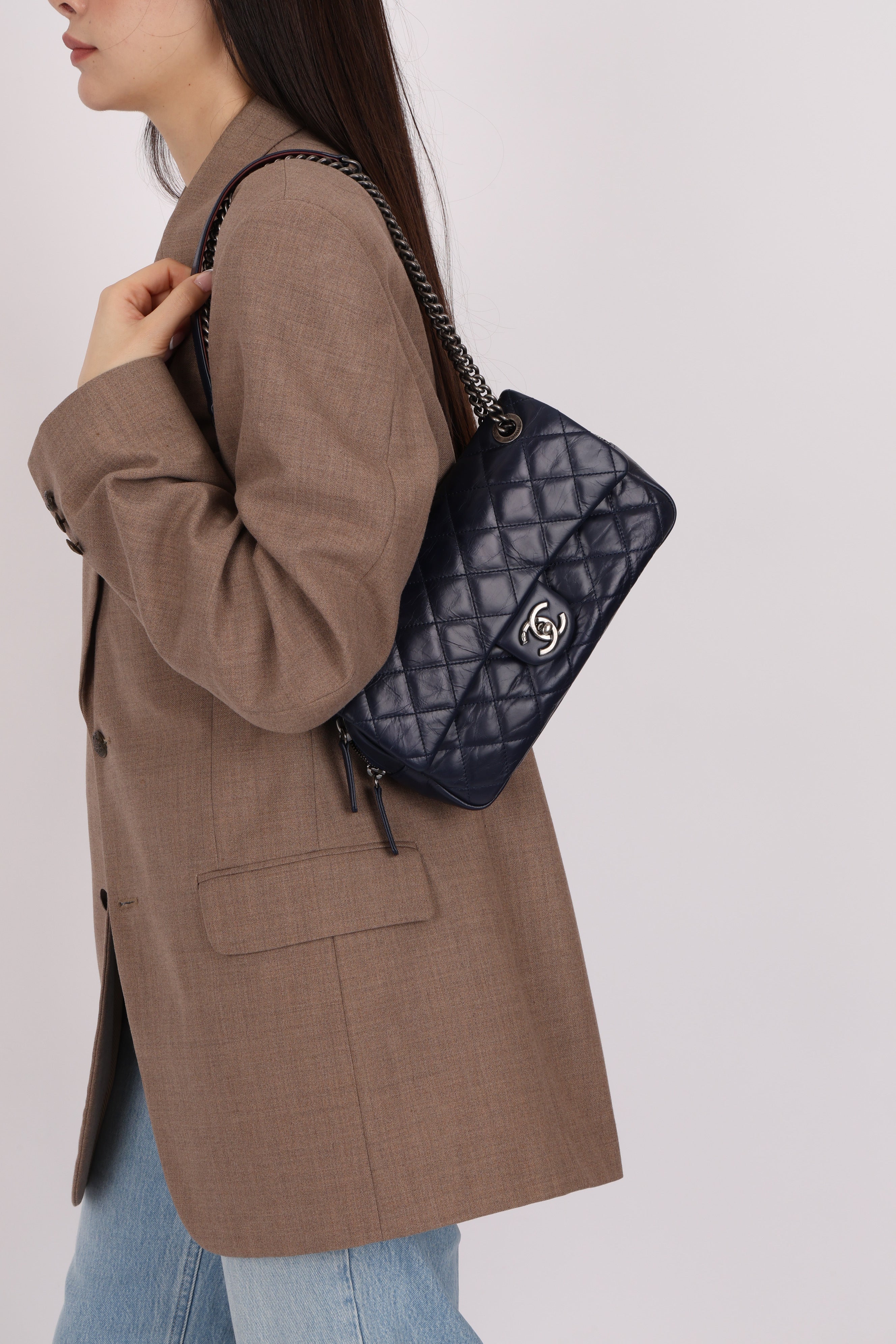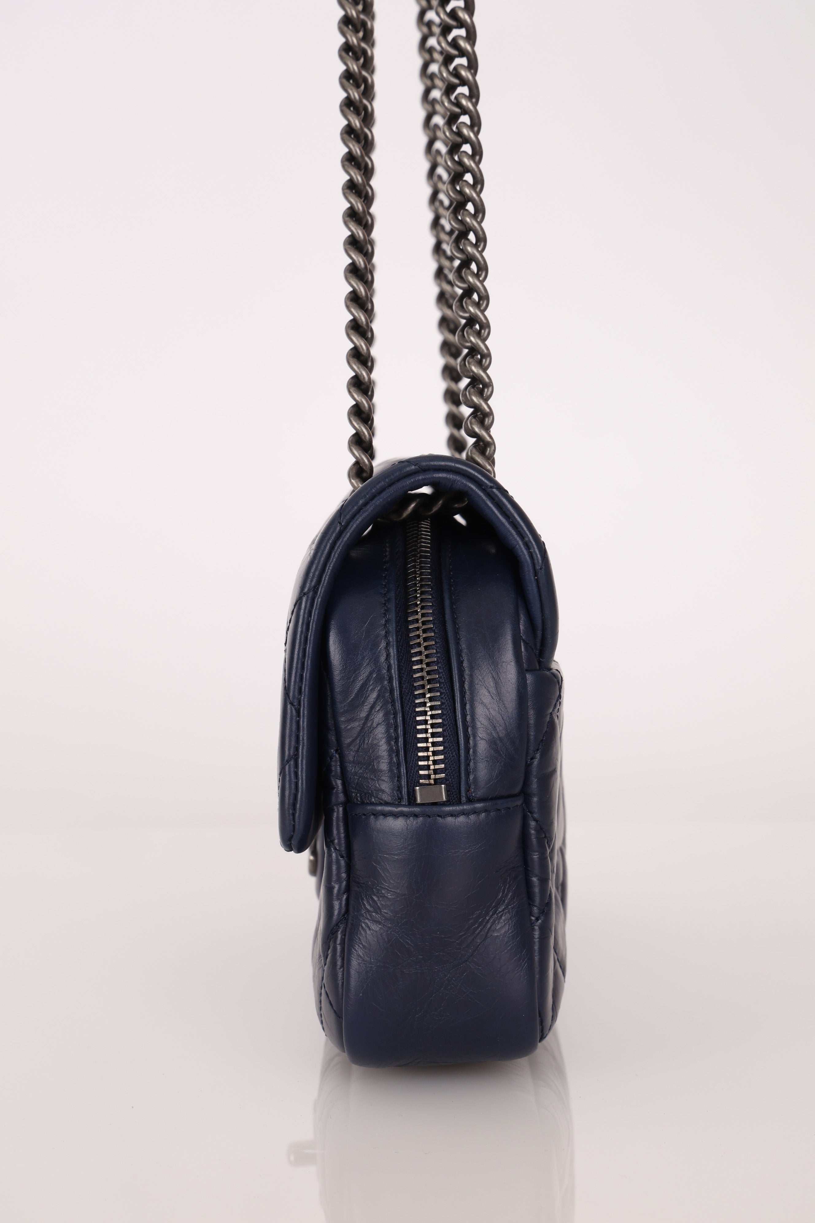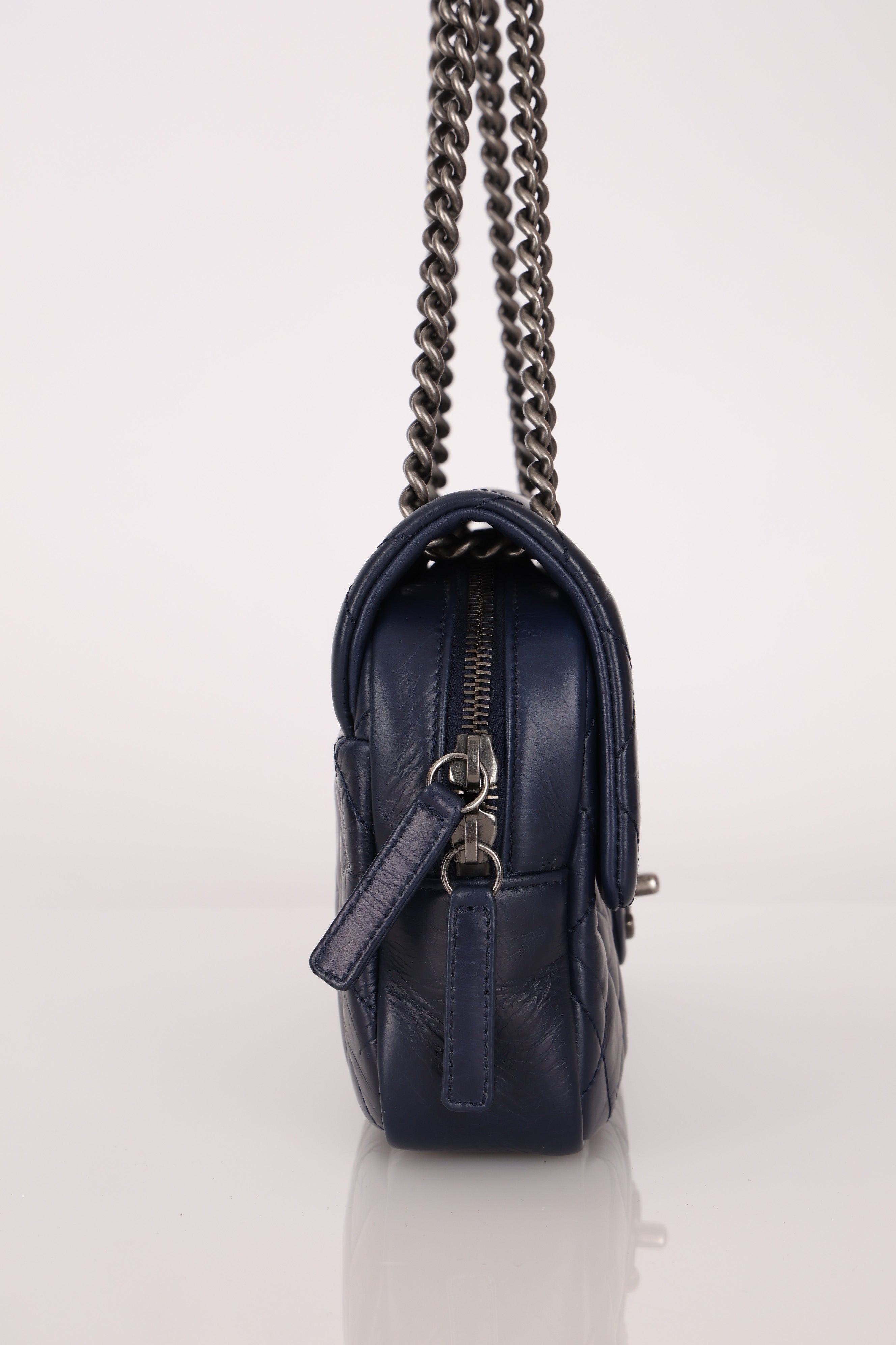 Chanel 2015 Navy Crinkled Calfskin Classic Medium Easy Flap Bag