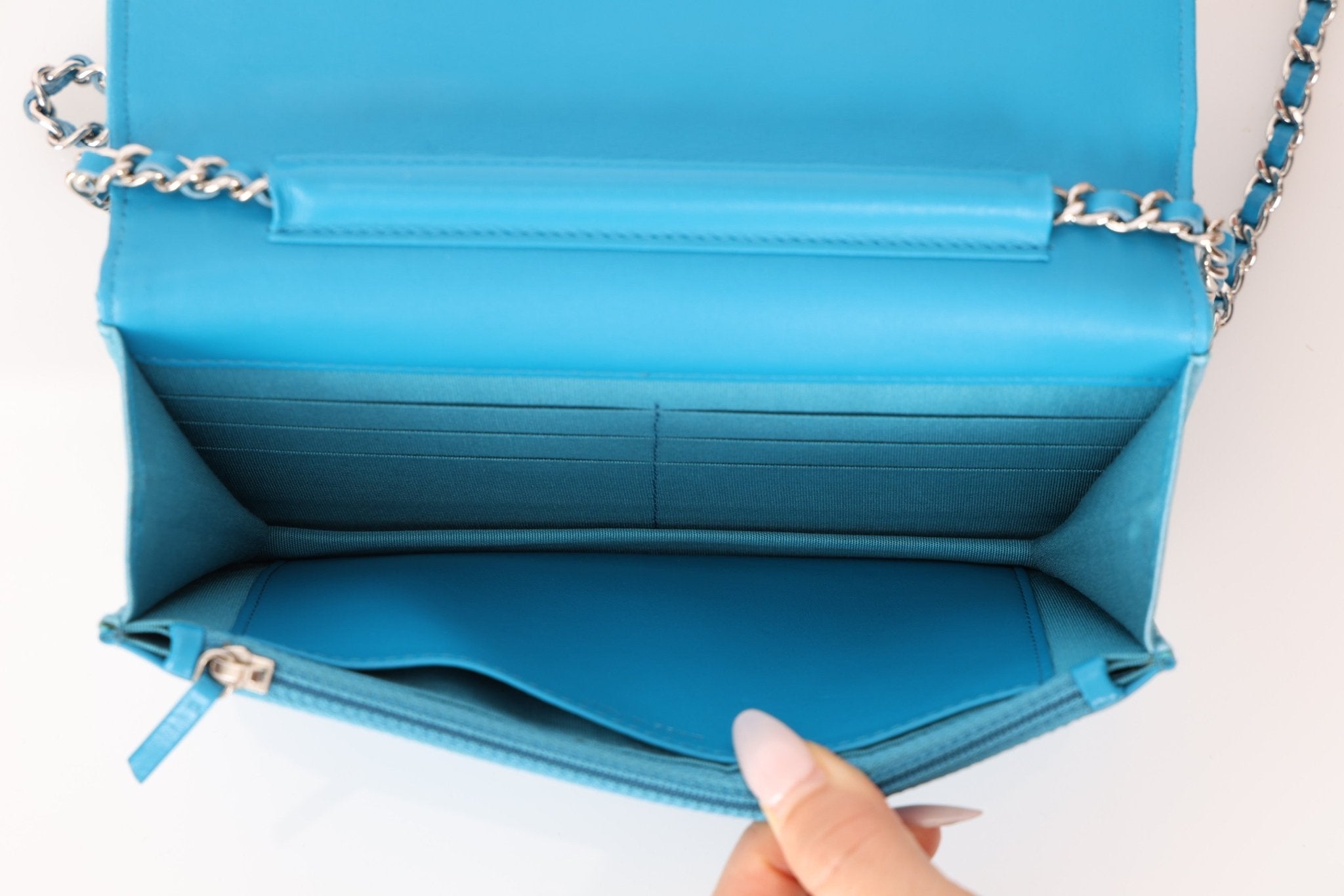 Chanel 2018 Light Blue Iridescent Wallet on Chain - FashioNica