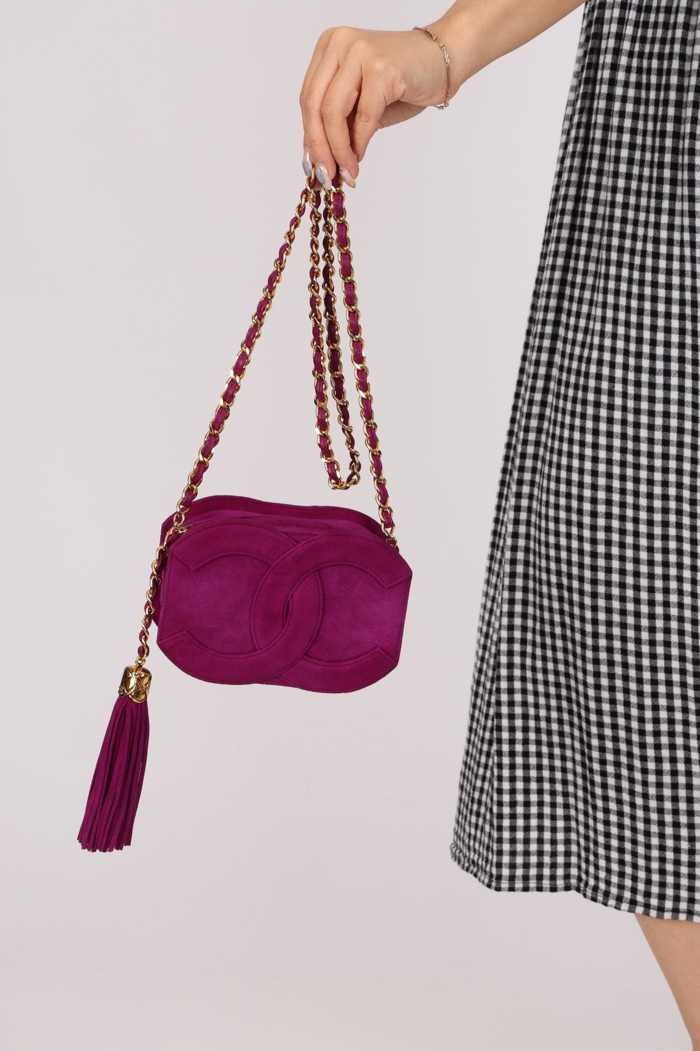 Chanel 2002 Magenta Suede Tassel Camera Bag 24K GP - FashioNica