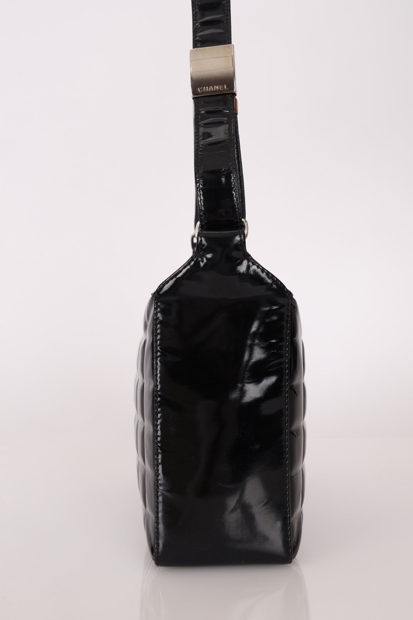 Chanel 2003 Vintage Black Patent Chocolate Bar Shoulder Bag - FashioNica
