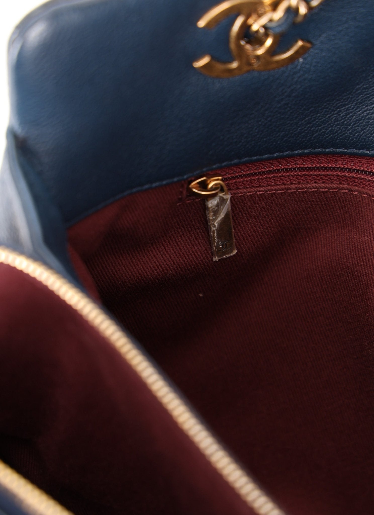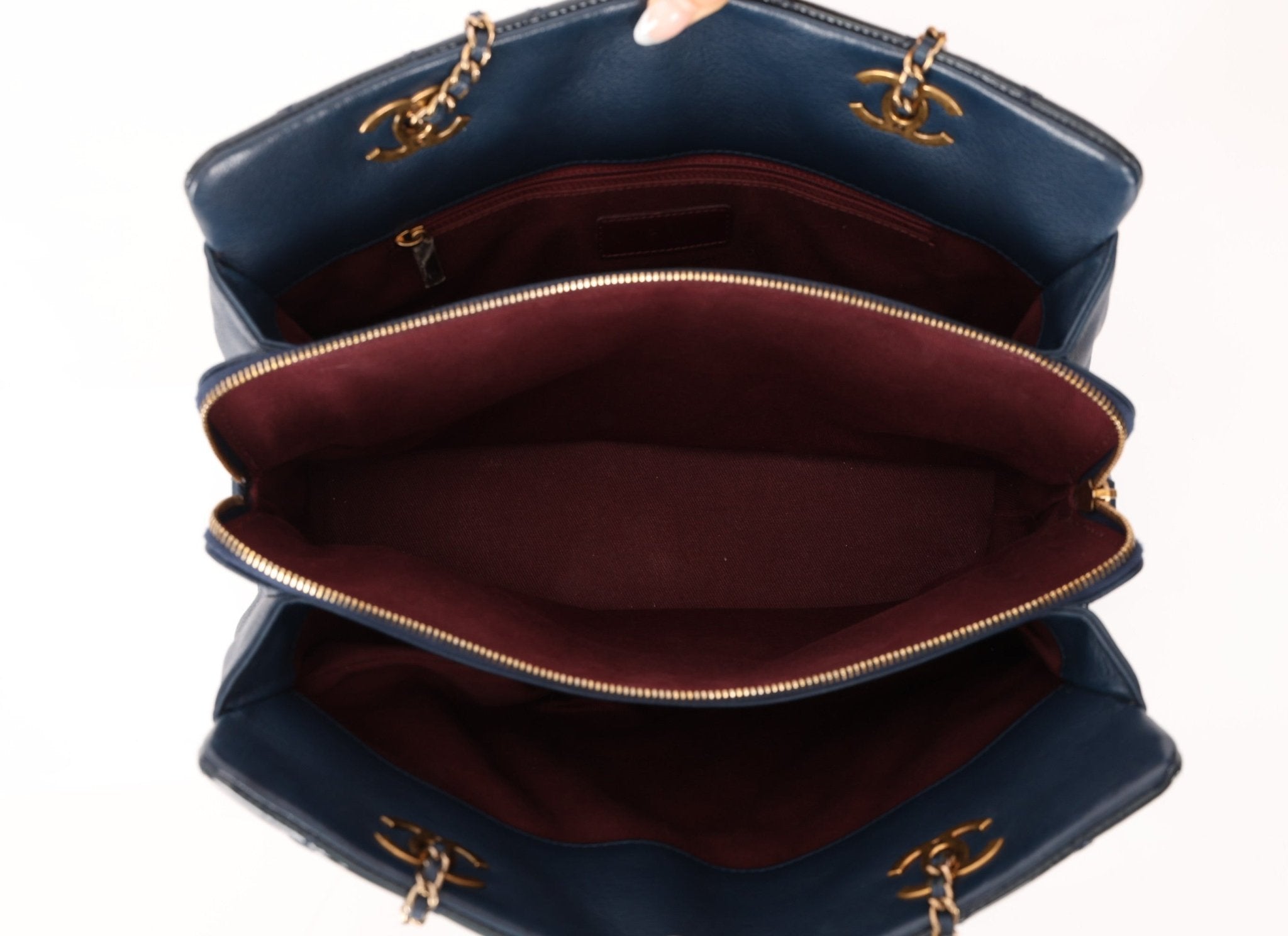 Chanel 2015 Patent Goatskin Medium Navy CC Eyelet Tote