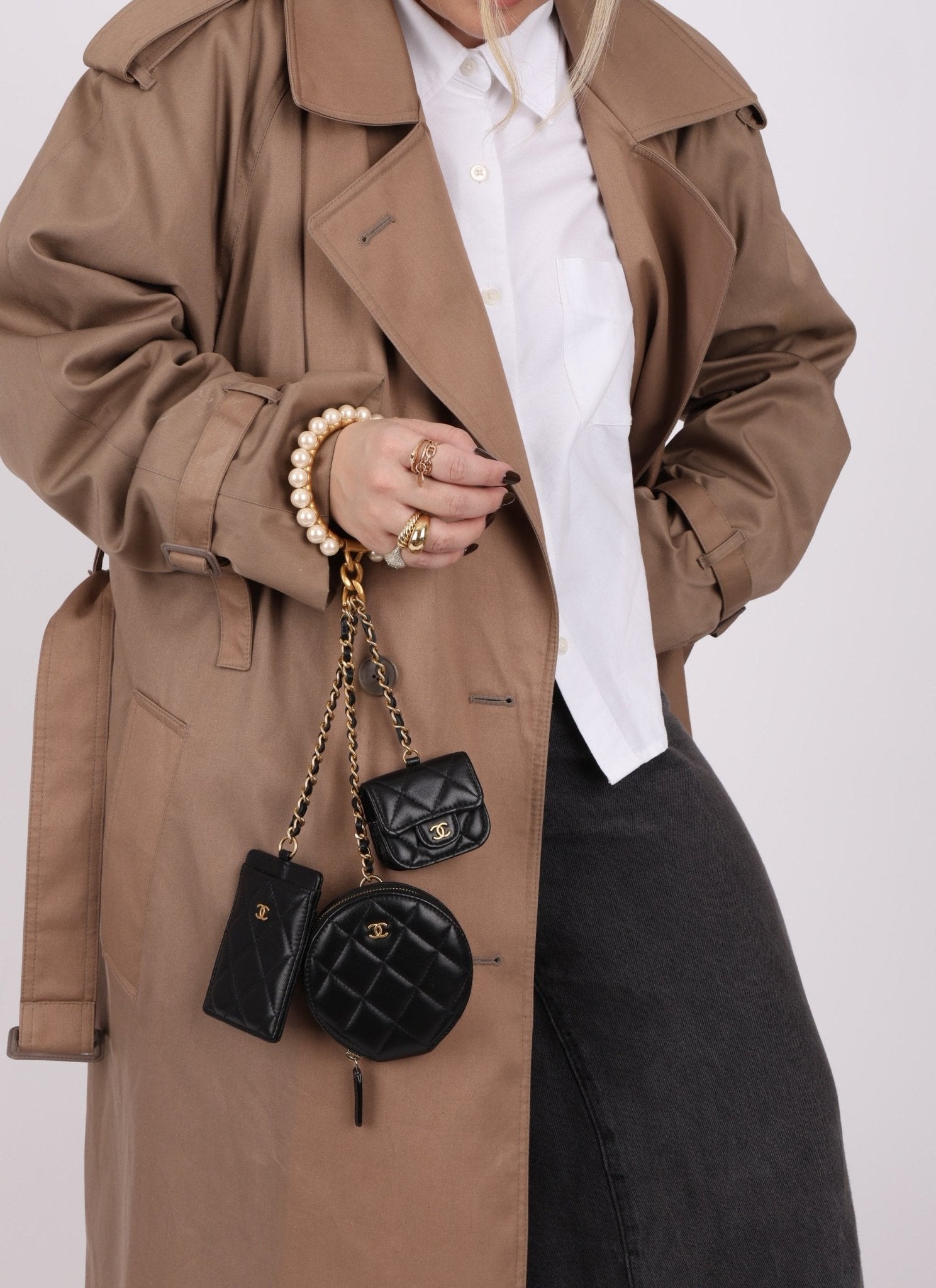This Chanel Trio Wristlet does it all- with a card holder, micro case, and zipper coin pouch all attached to a beautiful pearl bracelet, you can seamlessly hold your essentials en vogue!