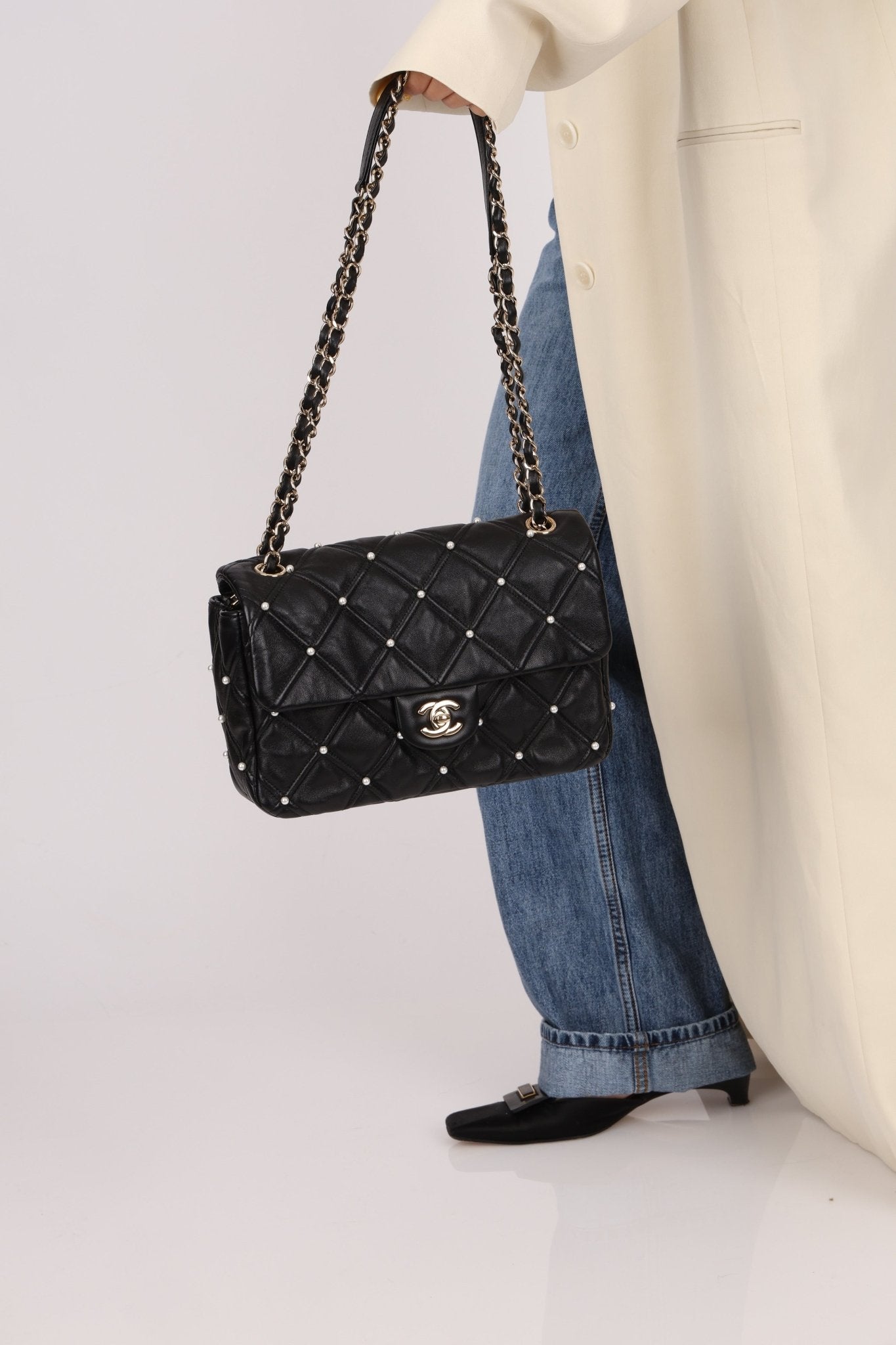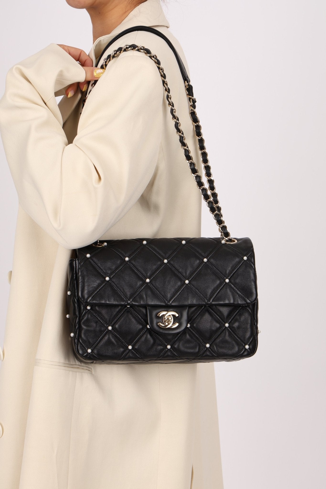 Limited Edition Chanel 2019 Medium Lambskin Pearl Quilted Flap Bag - FashioNica