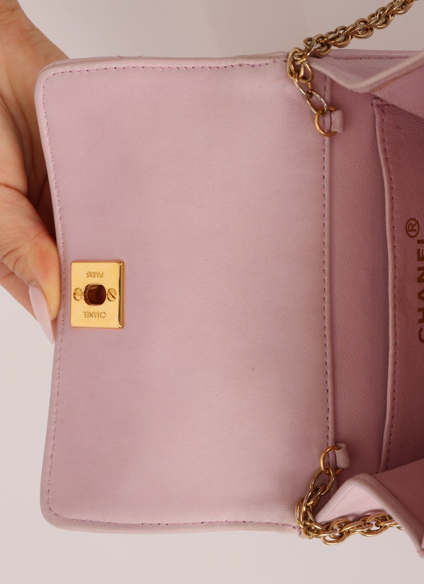 Chanel 1991 Baby Pink Lambskin Mini Square Flap 24K GP - FashioNica