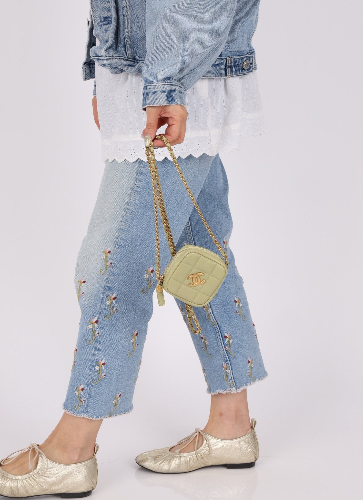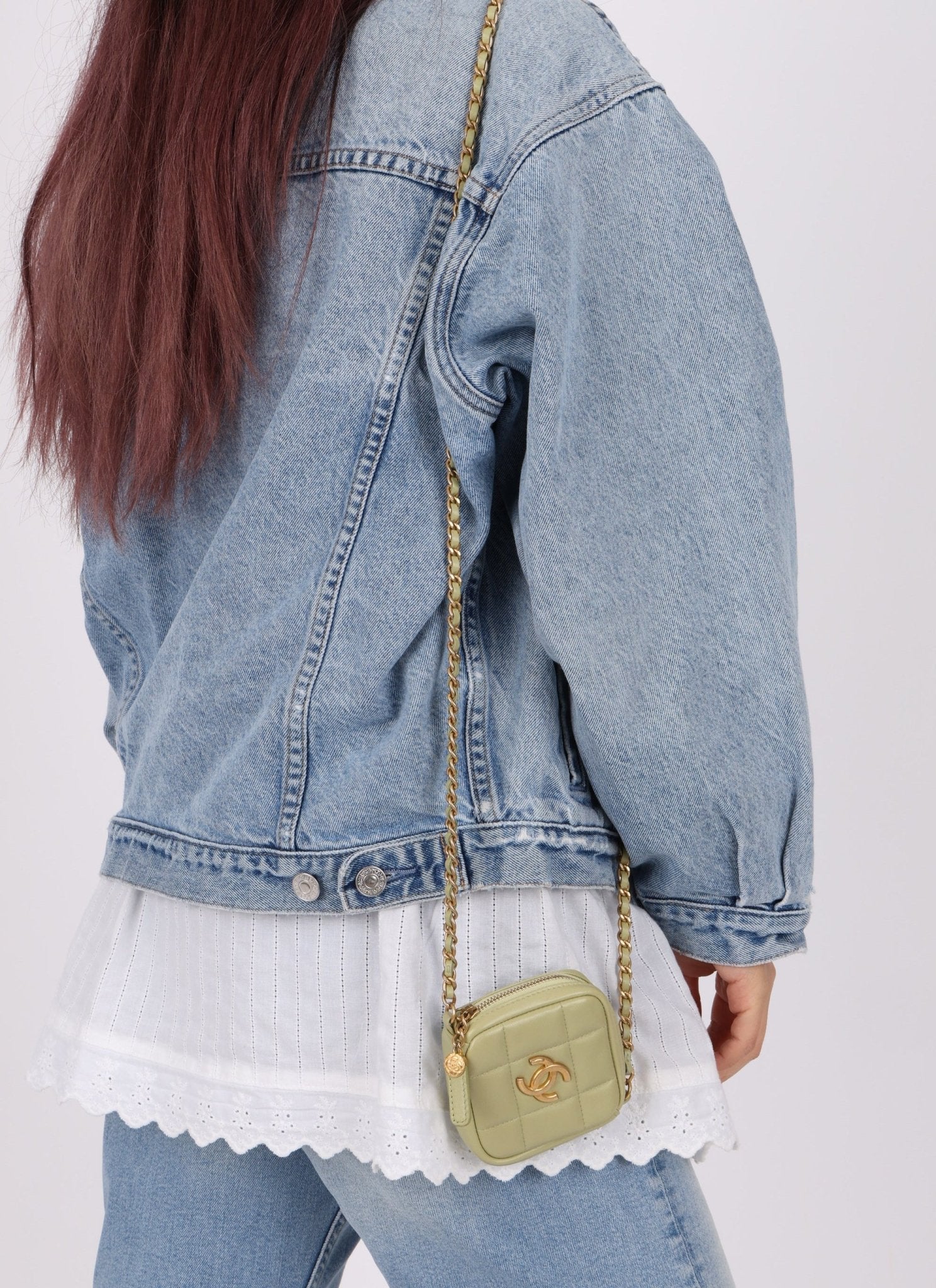 Chanel 2021 Pistachio Lambskin Chocolate Bar Mini Pouch on Chain - FashioNica