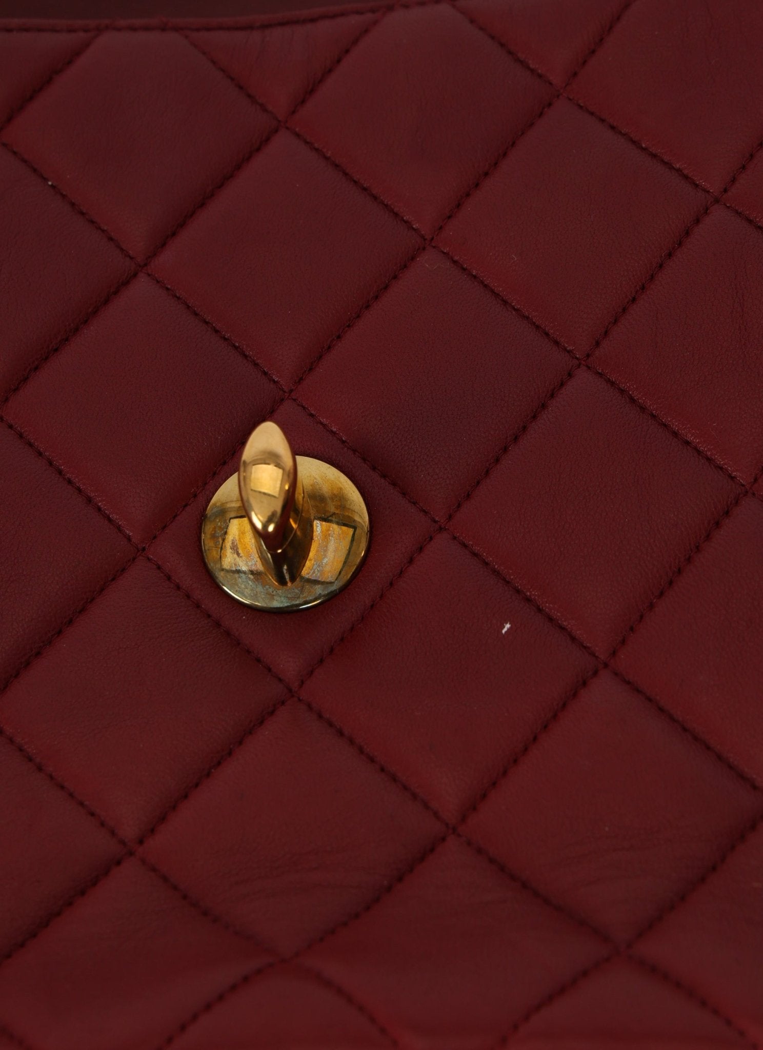 Chanel 1991 Bordeaux Lambskin XL Logo Turnlock Square Flap - FashioNica