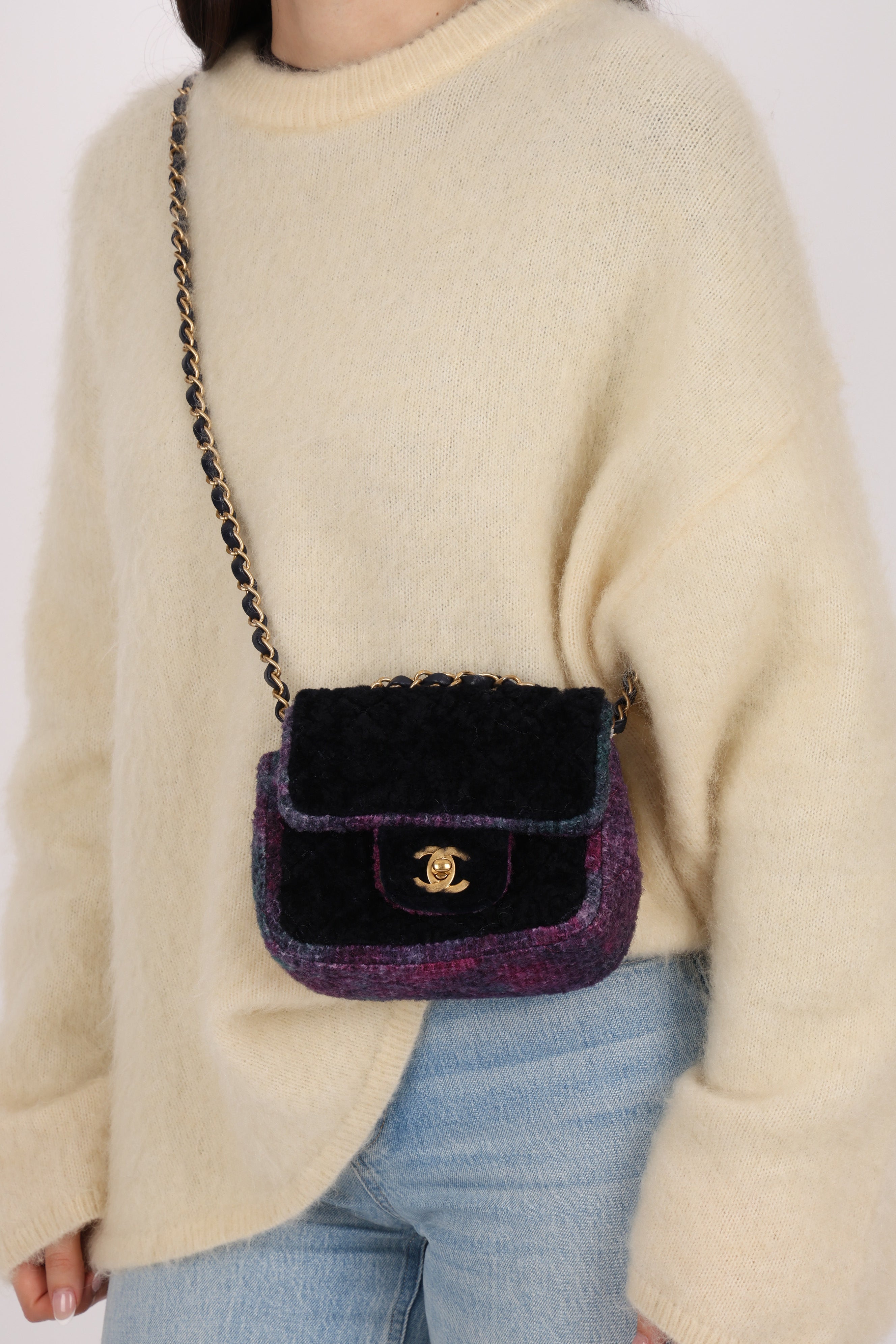 Chanel 2021 Tweed Turnlock Mini Square Flap Bag