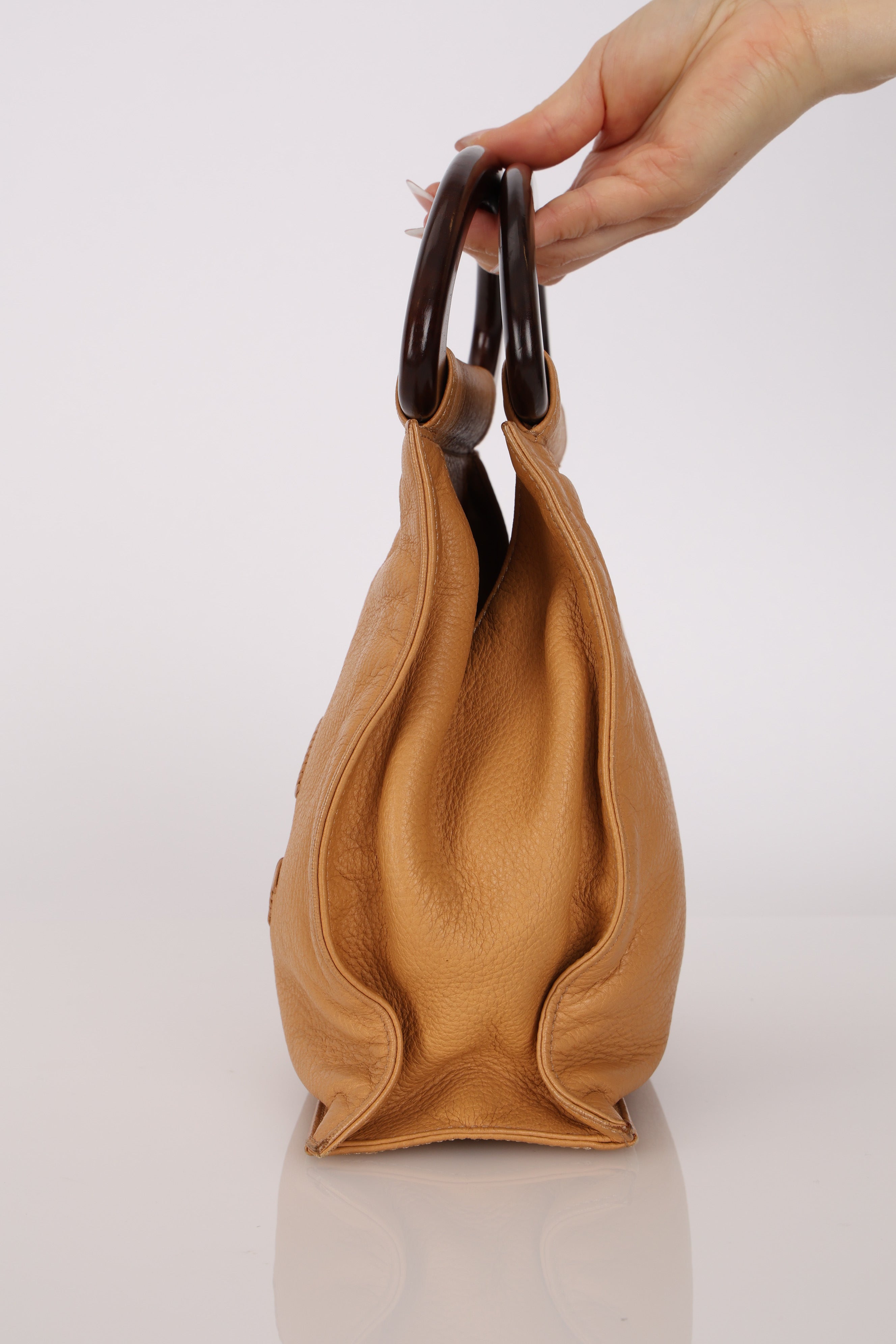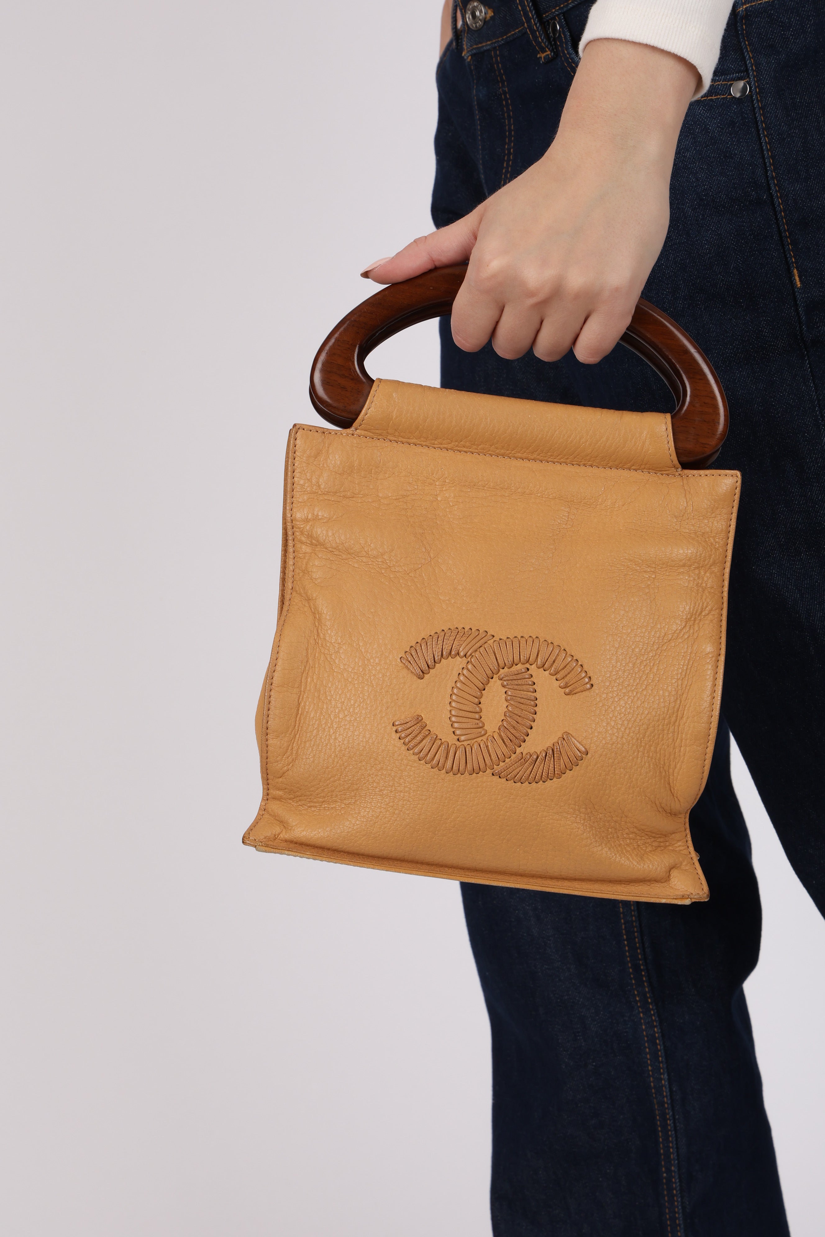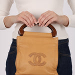 Chanel 2003 Beige Calfskin Wood Top Handle Bag