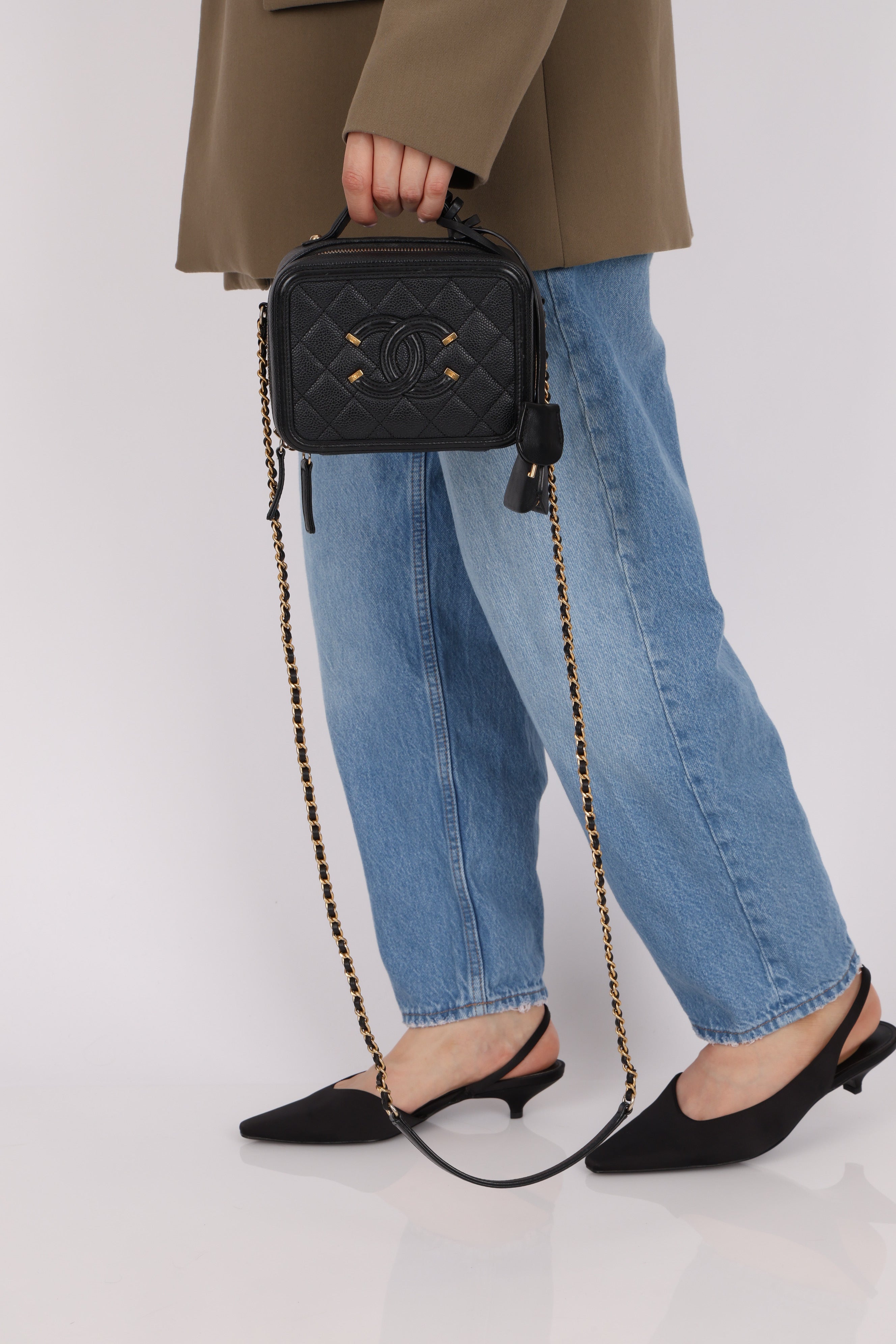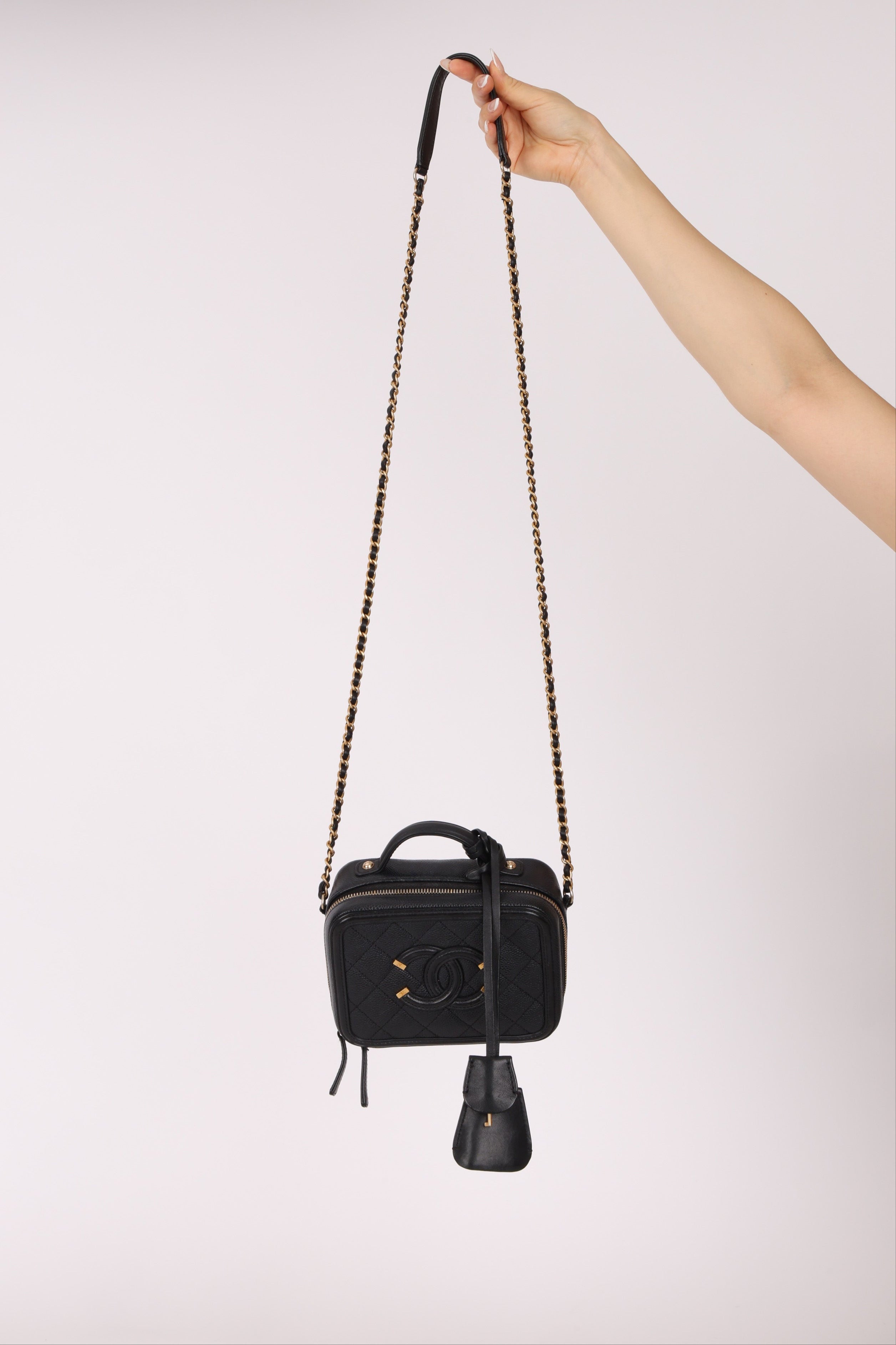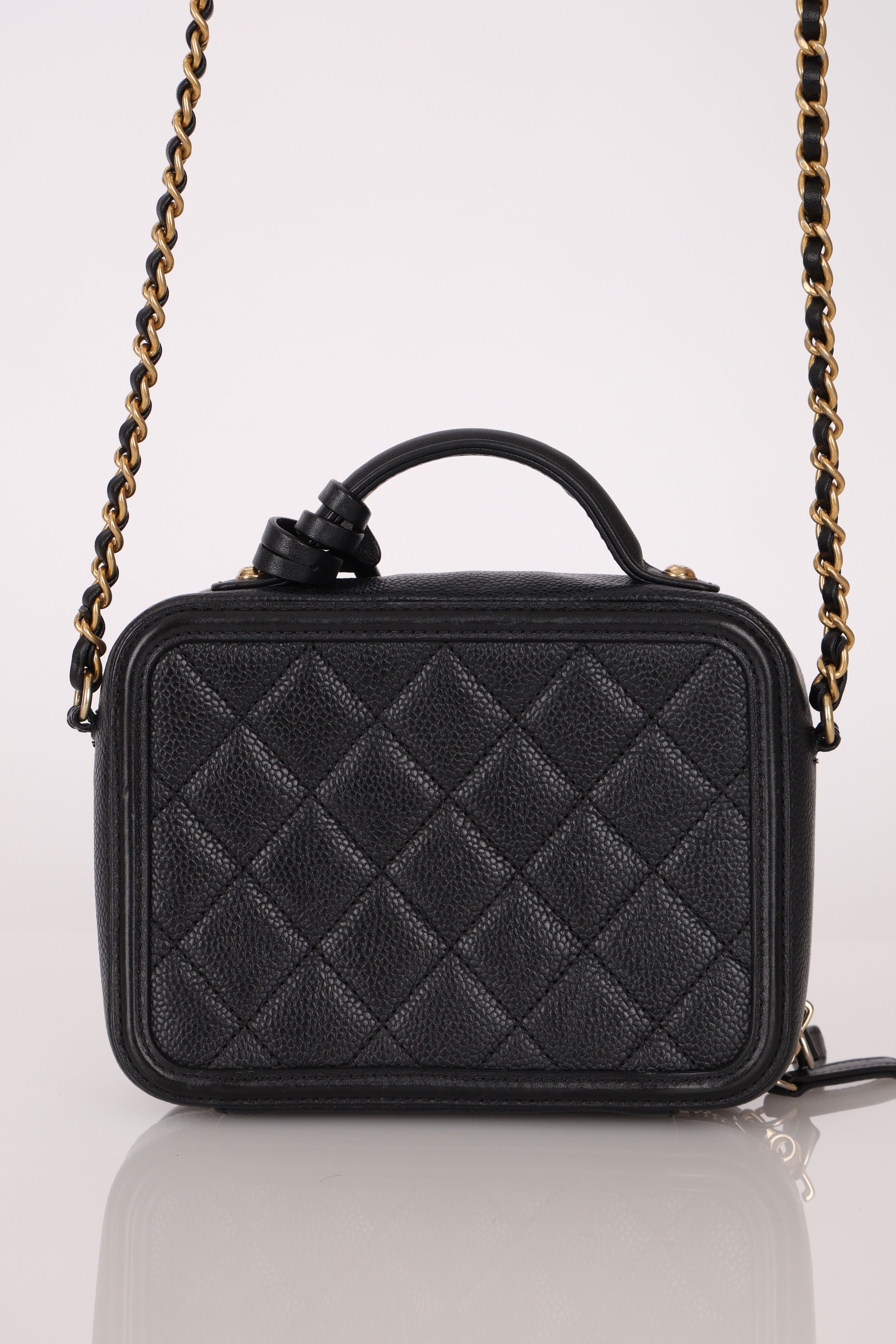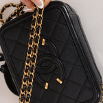 Chanel 2018 Caviar Filigree Small Vanity Case GHW