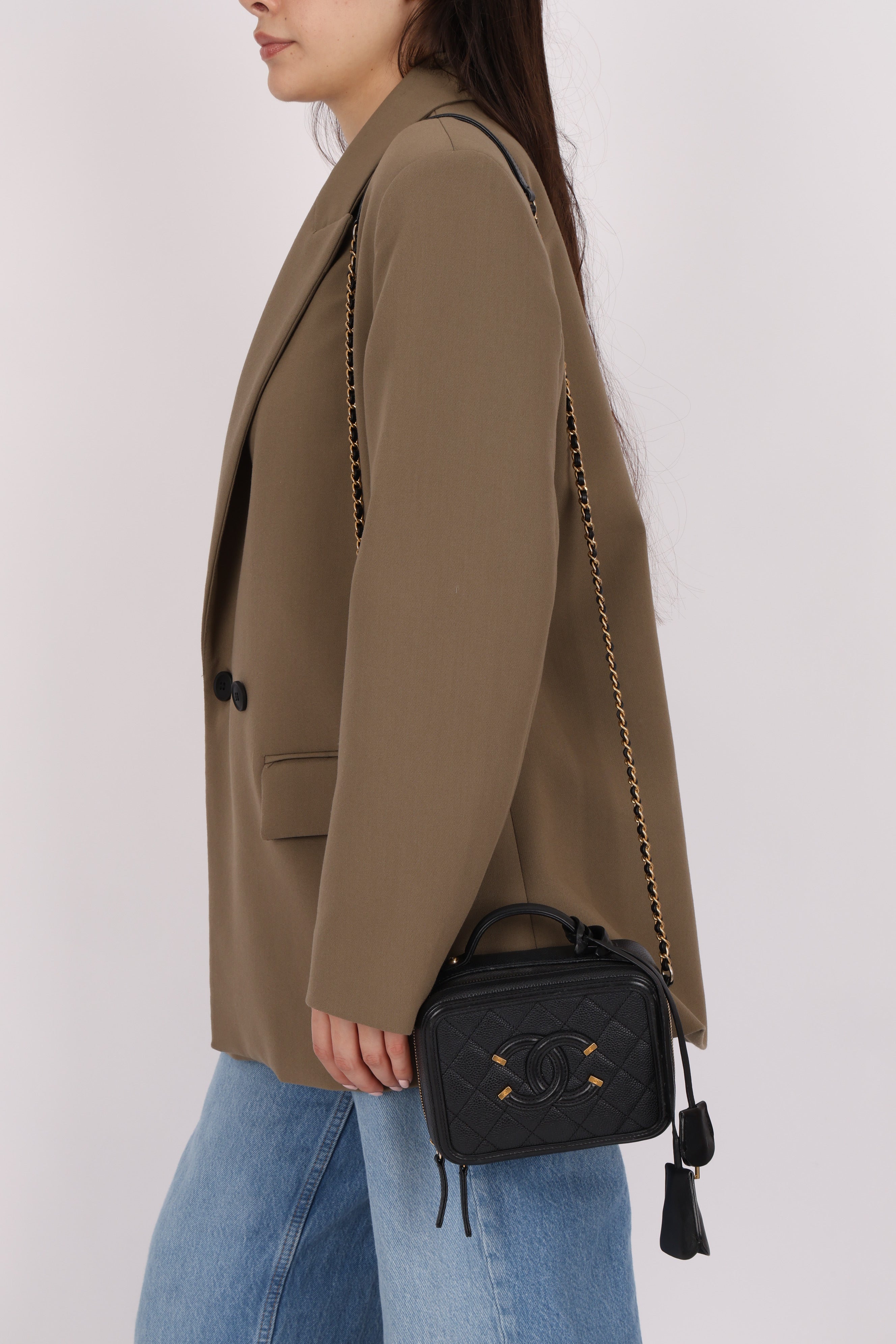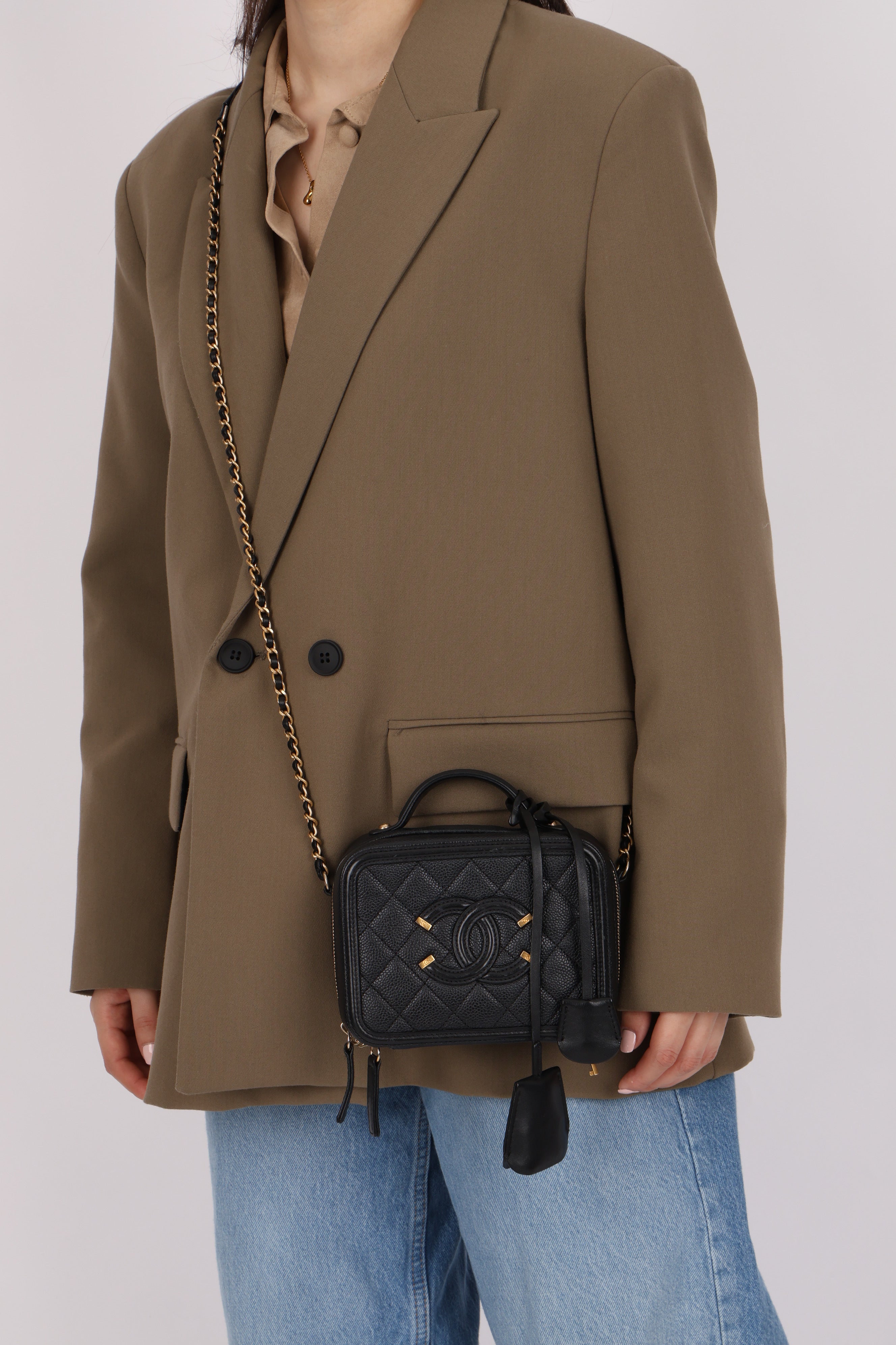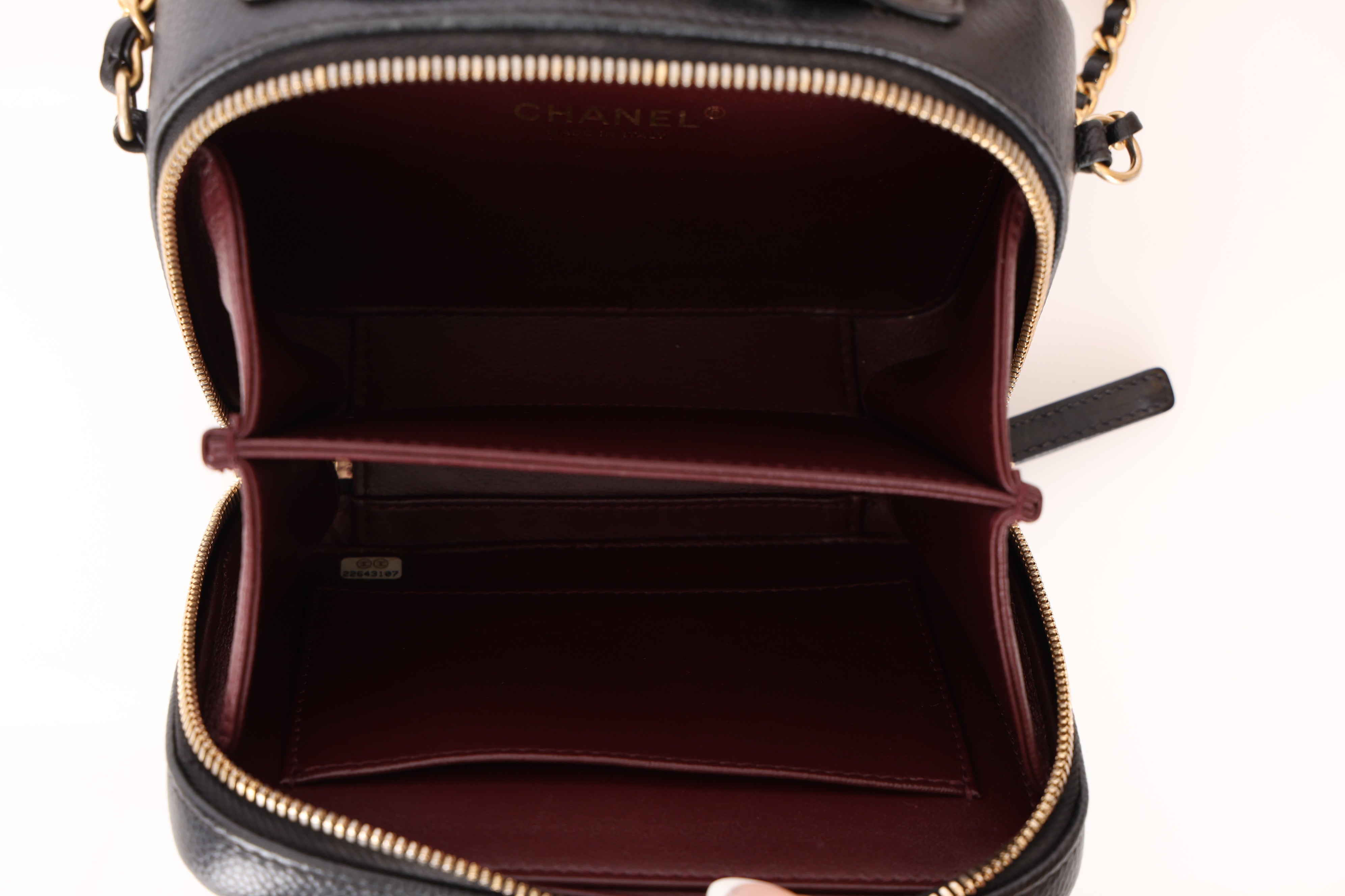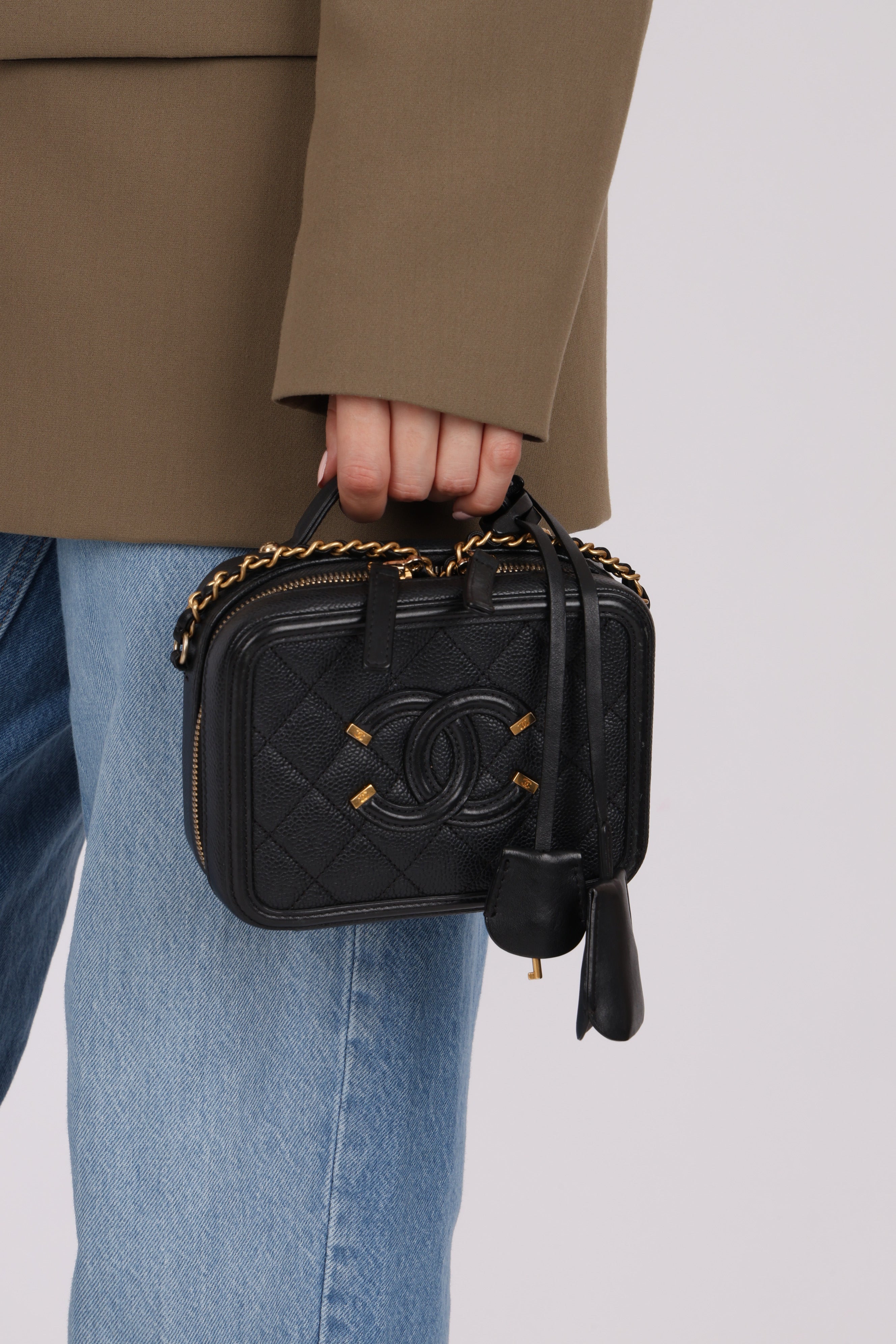Chanel 2018 Caviar Filigree Small Vanity Case GHW
